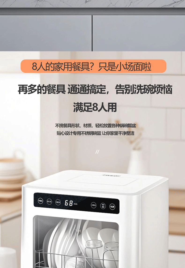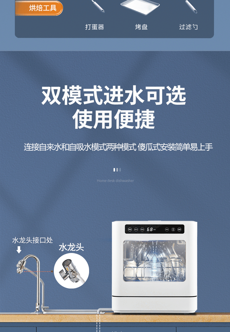 | Color Classification | 8-Person Single Inlet Standard Model[Water Faucet + 8 Bowls and 8 Dishes + Residual Heat Drying],Upgraded 8-Person Single Inlet Model[Faucet + 8 Bowls and 8 Dishes + 75℃Hot Air Drying + Ultraviolet Sterilization],8-Person, Dual Inlet Standard Model[Water Connection Faucet & Self-Priming + 8 Bowls and 8 Dishes + Residual Heat Drying],Upgraded 8-Person Dual Inlet Model[Water Connection Faucet & Self-Priming + 8 Bowls and 8 Dishes + 75℃Hot Air Drying + Ultraviolet Sterilization] |
