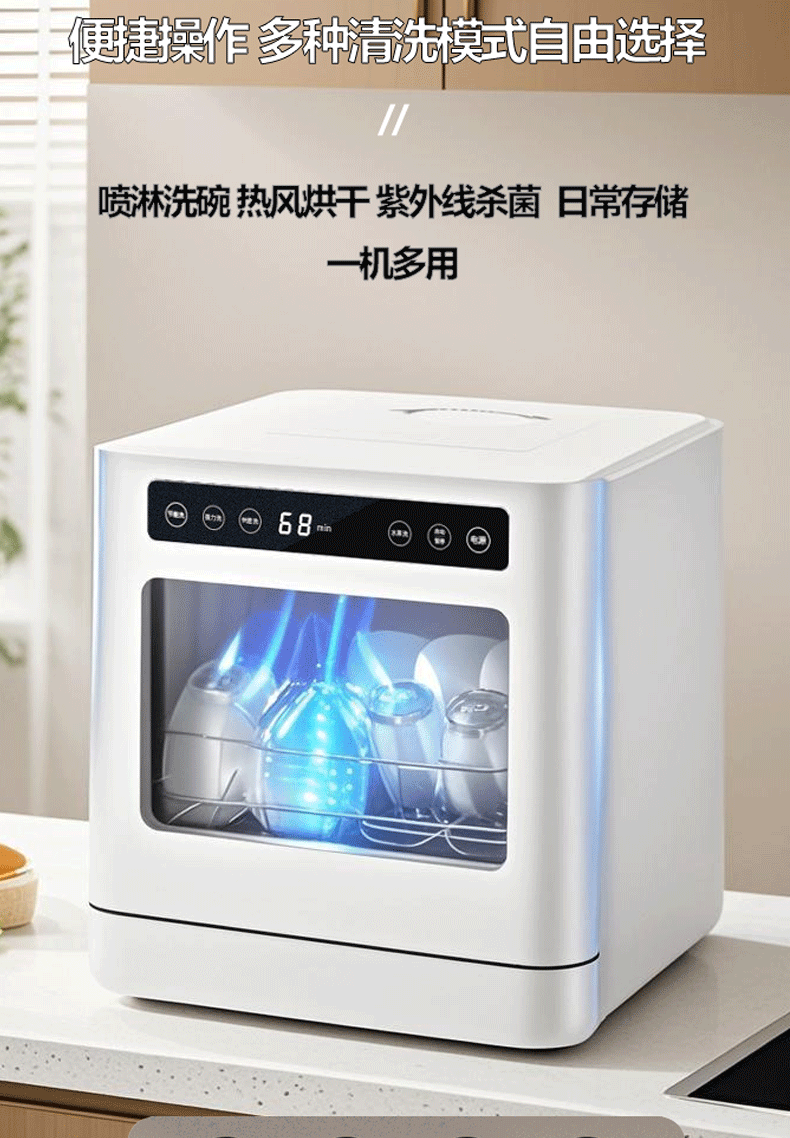 Countertop Dishwasher, No Installation Required, Fully Automatic Household Dishwashing and Drying Cabinet, Tabletop Model for Home Use