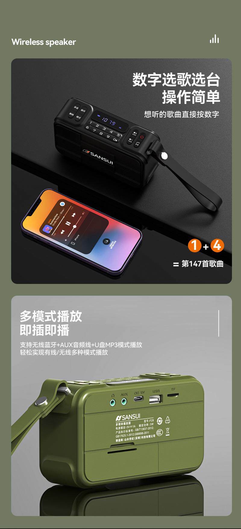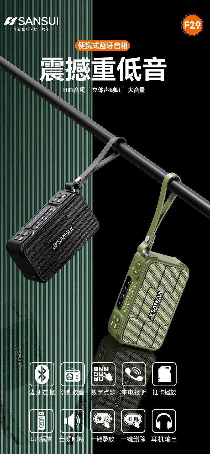 Shanshui F29 Recorder Radio Fm Subwoofer Bluetooth Speaker Playback Digital Station Selection Hands-Free Calls