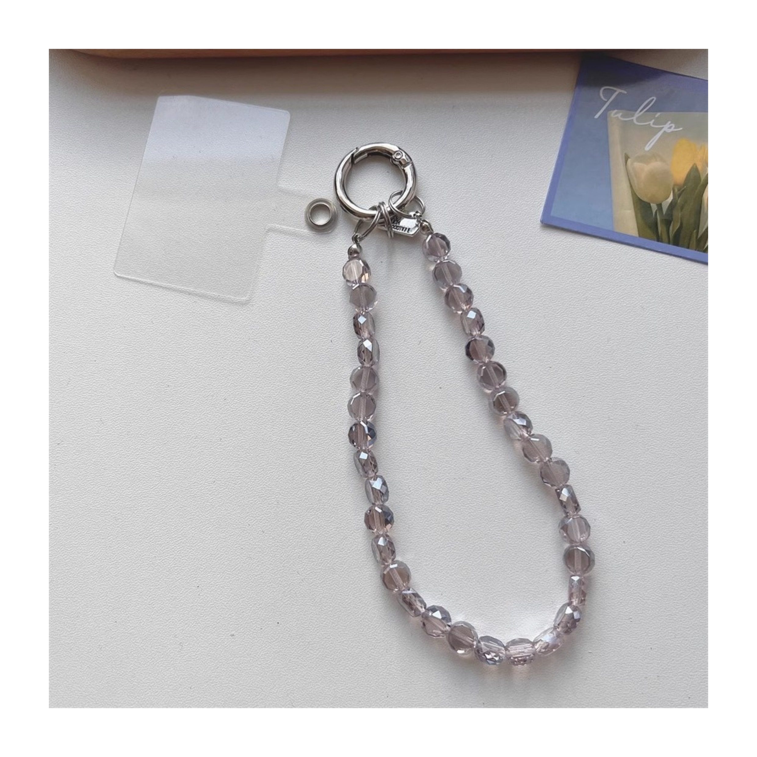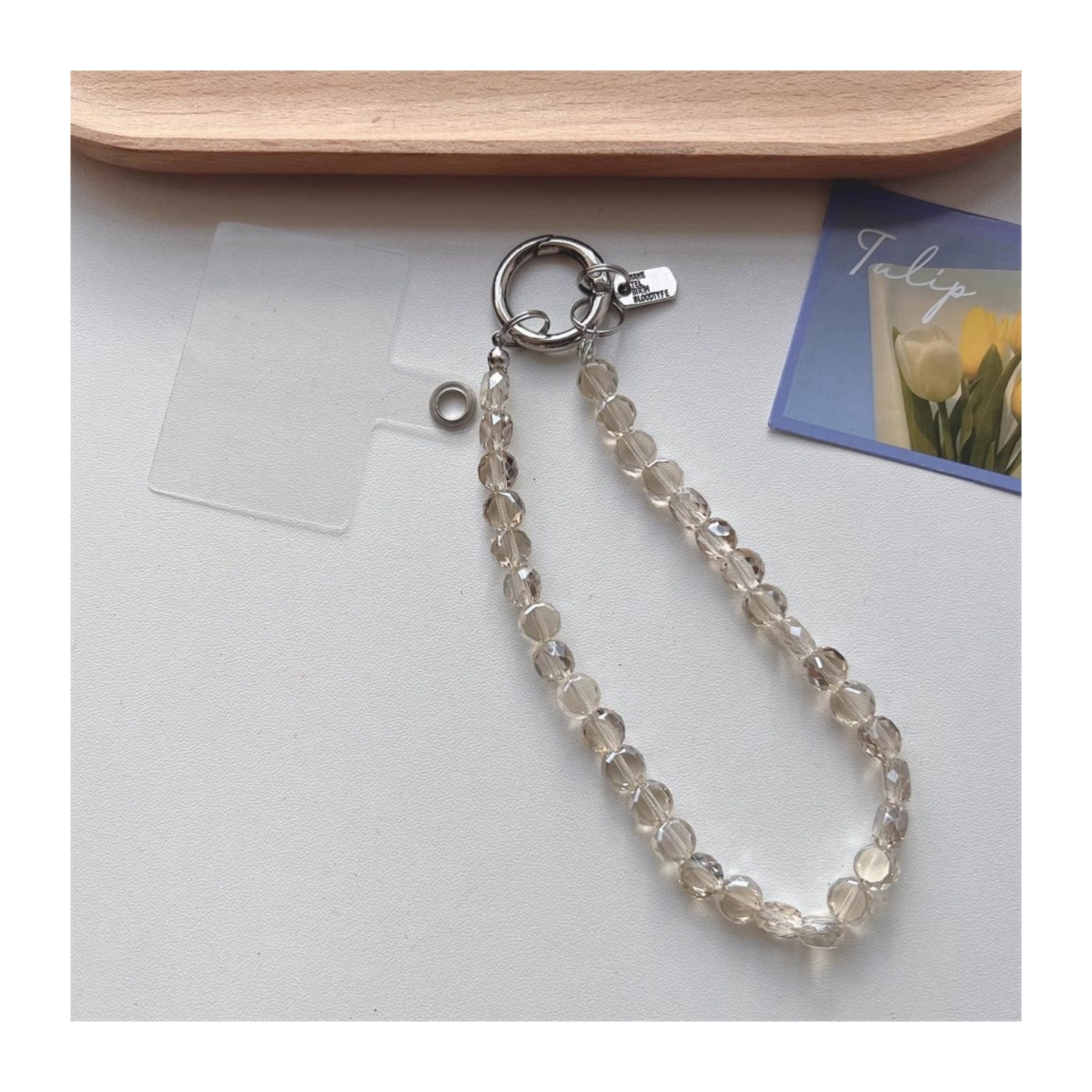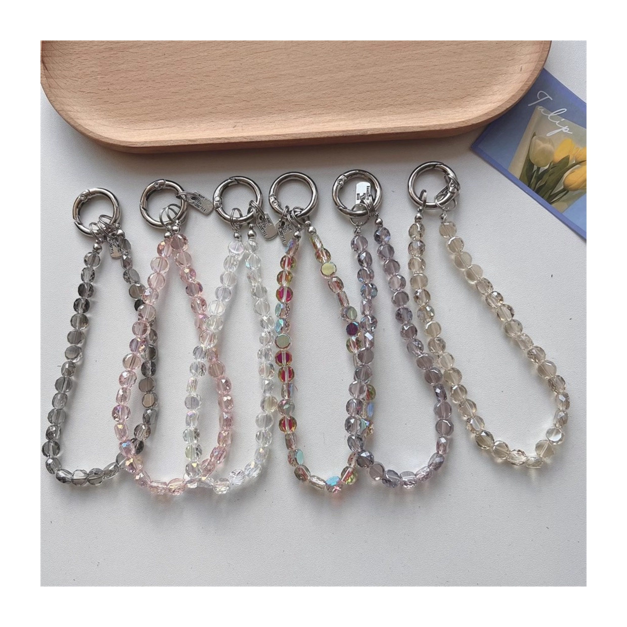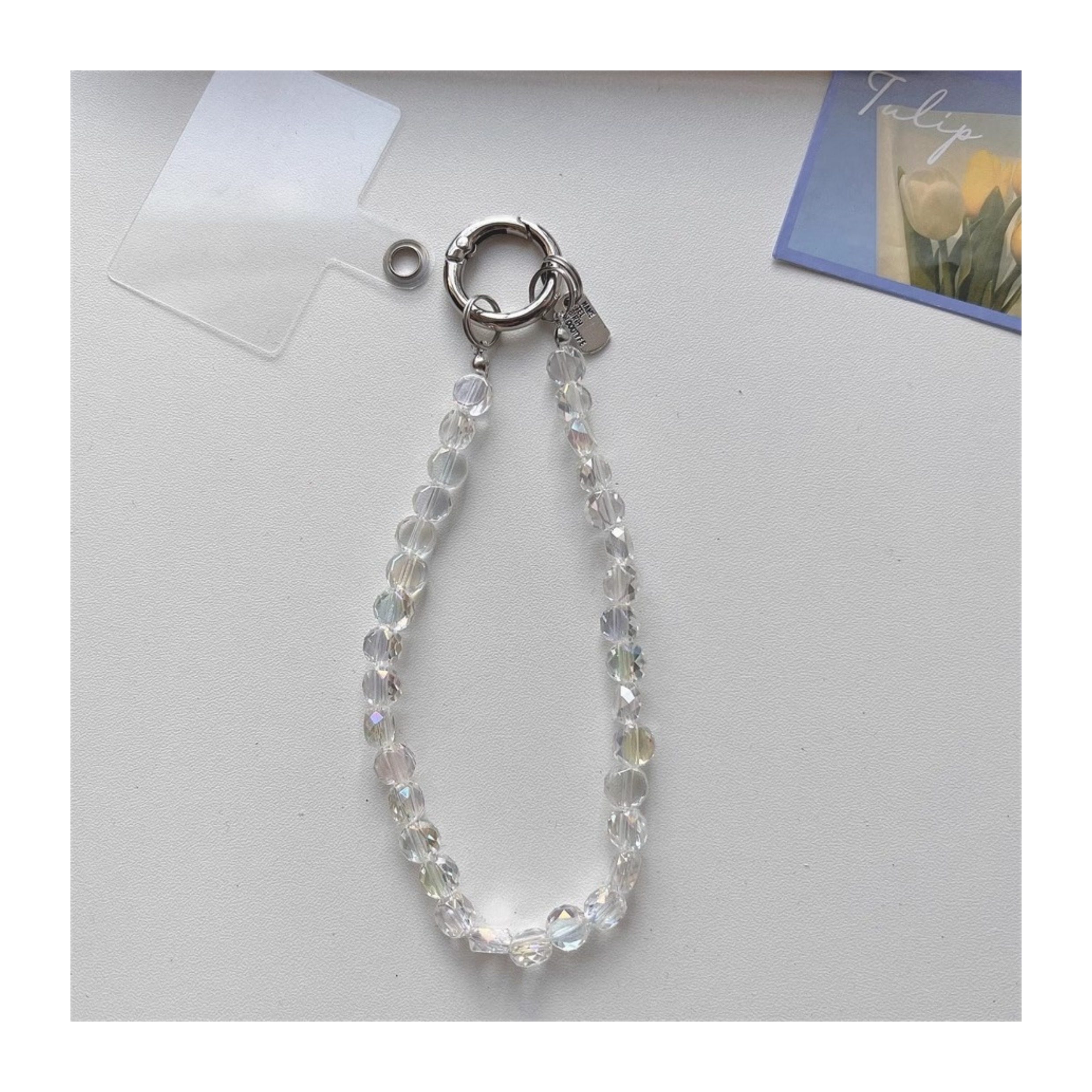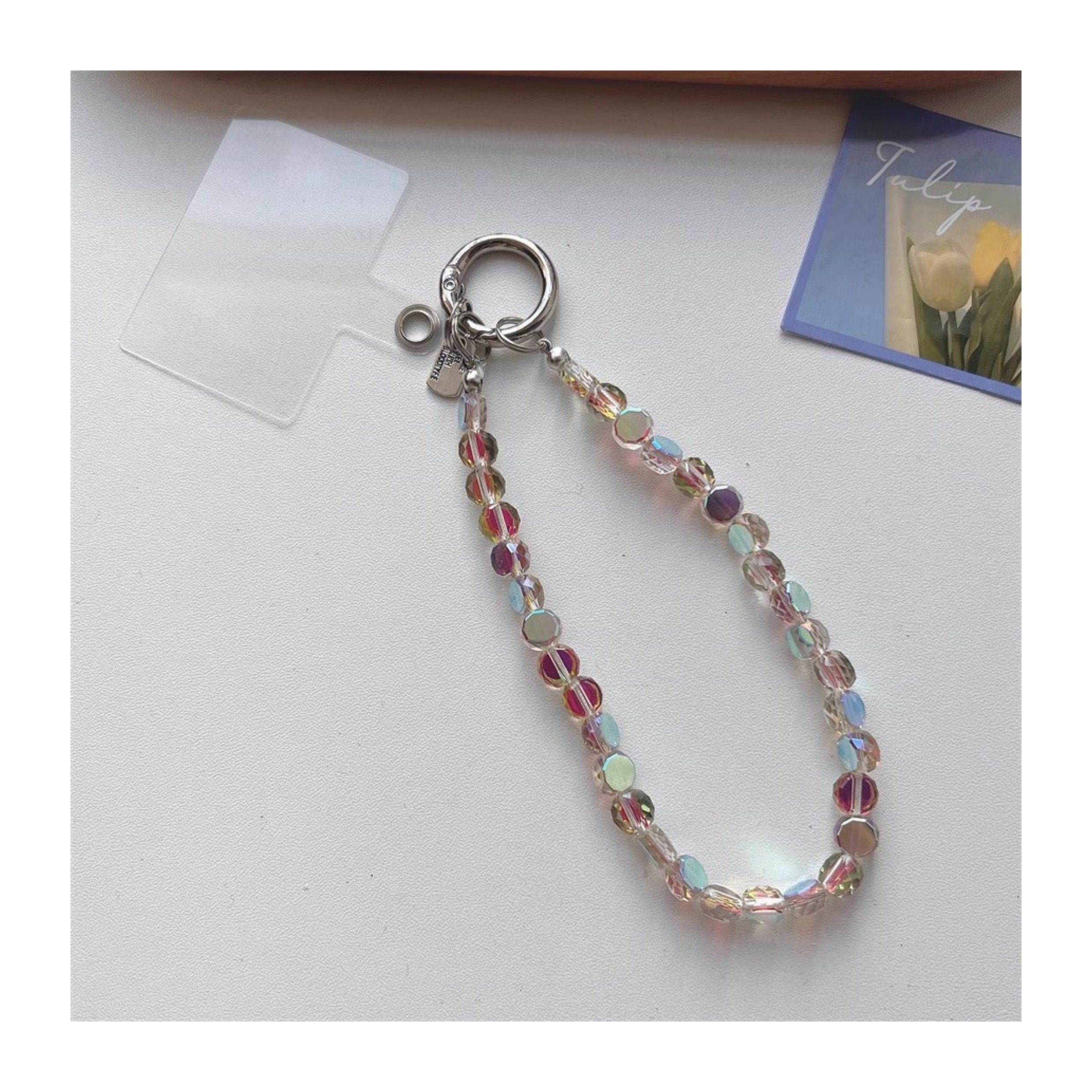Ice-Clear Pink Crystal DIY Beaded Phone Chain Accessories Ccd Camera Chain High-Value Hand Strap Anti-Lost Universal
