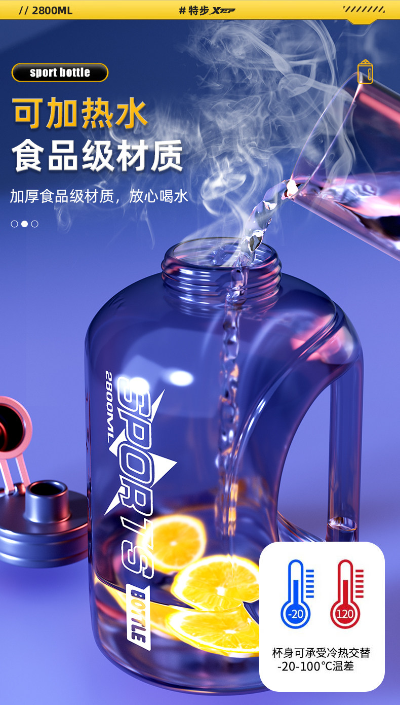 | Color Classification | Vibrant Black⭐Food Grade Material⭐2800ml [High Temperature Resistance + No Odor/Comes with Straw/Hand Strap] [Recommended for Sports],Vibrant Black⭐Food Grade Material⭐1800ml [High Temperature Resistance + No Odor/Comes with Straw/Hand Rope],Refreshing Black Tritan Material 2500ml (Double Drink + Can Hold Boiling Water + Large Capacity) [Recommended for Sports],Frosted Gradient Black 2500Ml/Thickened Anti-Scalding (Can Hold Boiling Water + Comes with Straw + Cup Brush) [Recommended for Sports],Frosted Gradient Black 1600Ml/Thickened Anti-Scalding (Can Hold Boiling Water + Comes with Straw + Cup Brush) [Recommended for Sports],Matte Black 1000ml [Food Grade Material + Anti-Slip Cup Body + Free Hand Strap],Frosted White 1000ml [Food Grade Material + Anti-Slip Cup Body + Free Hand Strap],Authentic Xtep, Food-Grade Material, Vibrant Black,10% Off for Fake 2800ml Large Capacity Vibrant Black,Worry-Free Shopping, High Temperature Resistance, No Odor, Vibrant Black,Worry-Free After-Sales Service, Free Straw and Hand Strap, Vibrant Black |