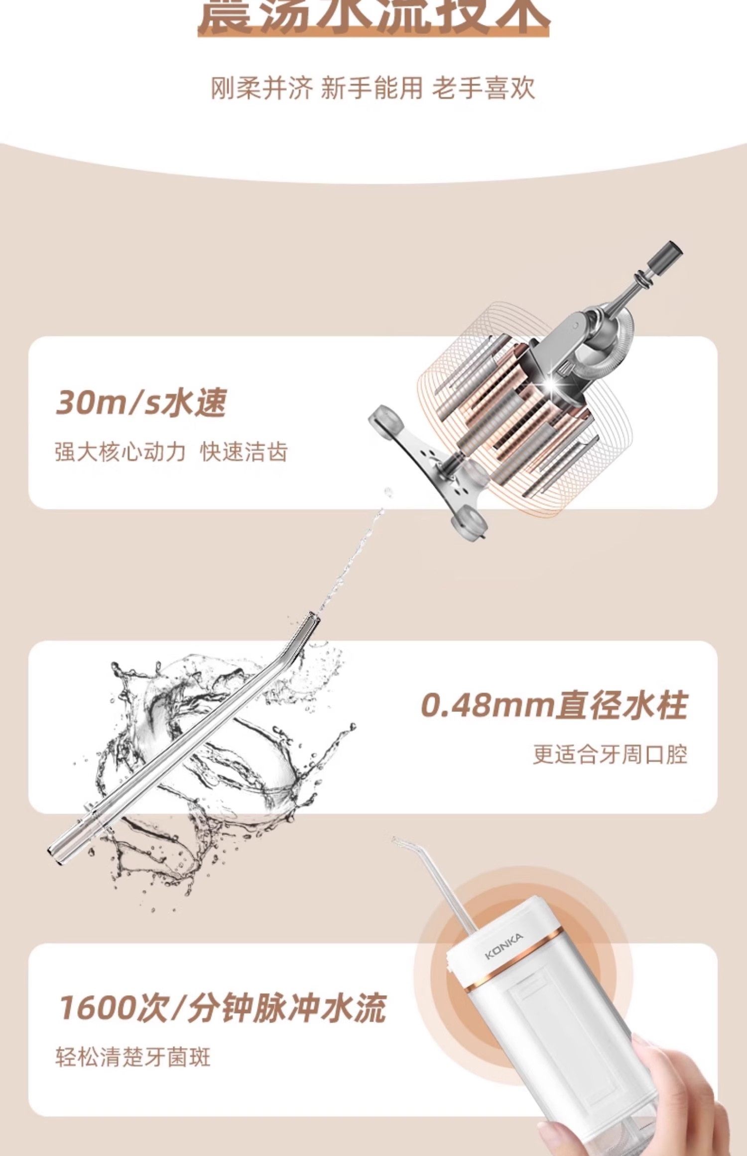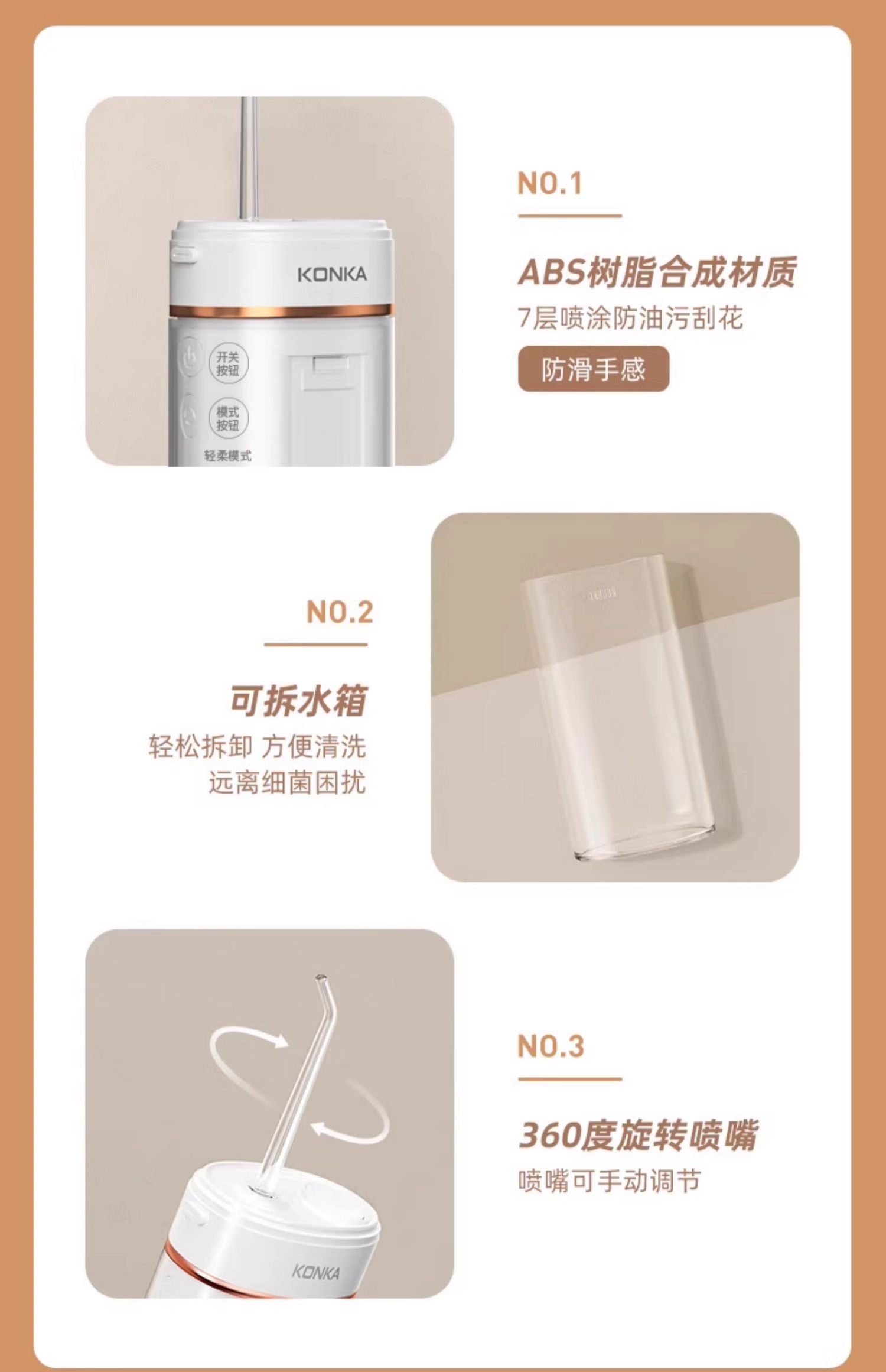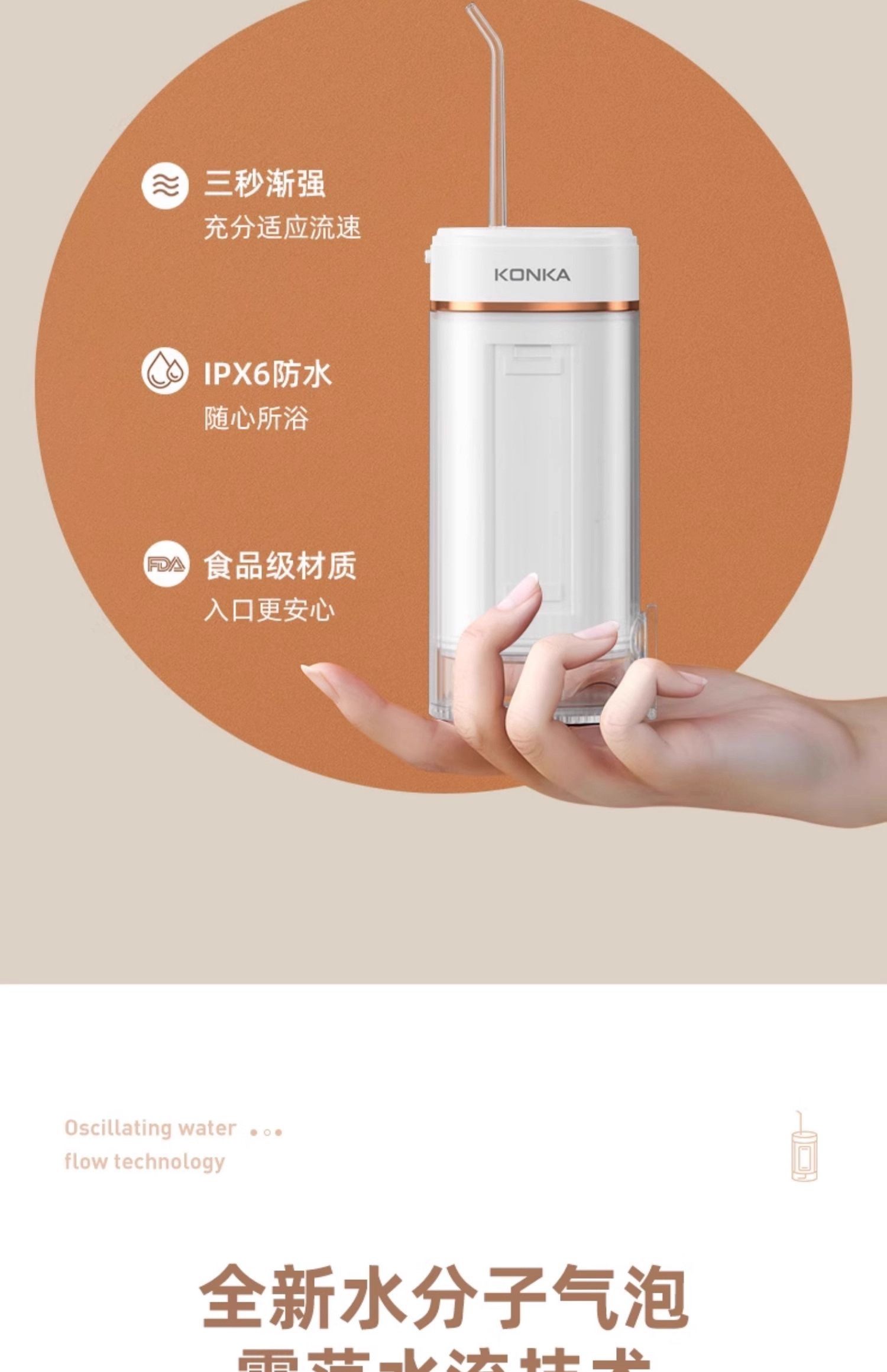 Konka Oral Irrigator, Portable Home Water Flosser, Orthodontic-Specific, Electric Tooth Cleaner for Cleaning between Teeth, Sonic