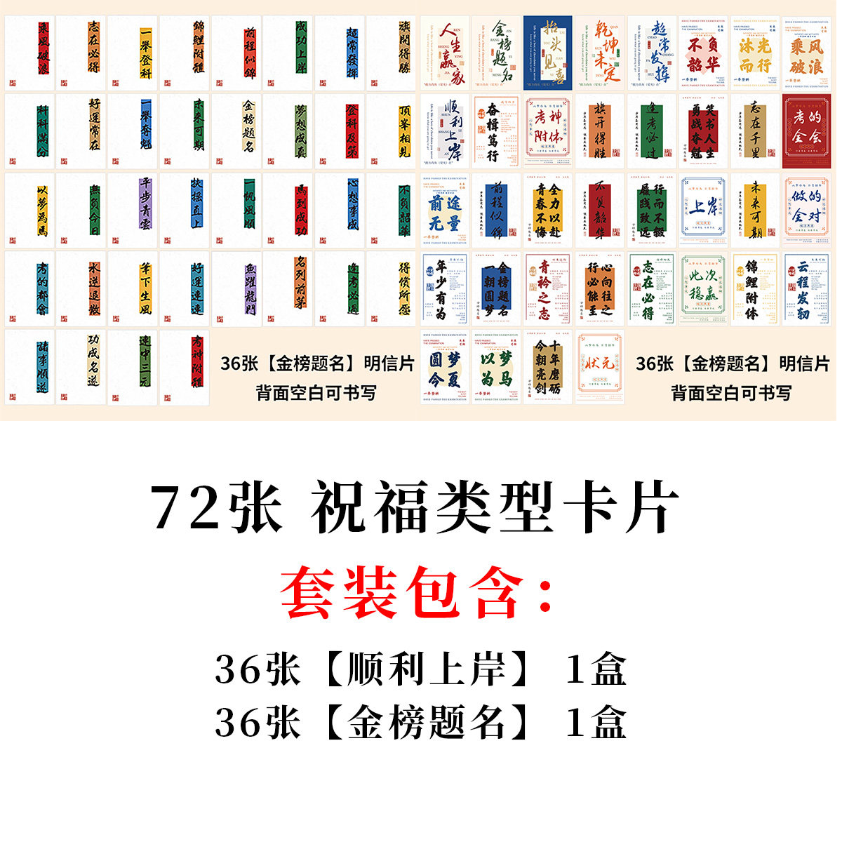 | Color Classification | 108 Pieces [Chinese Books + Selected + World Books] Double Holes + Mixed Ribbons + Mixed Tassels + [108 Mixed Color Wooden Clips 30m Red Ribbons 30 Sticky Hooks],108 Pieces [Chinese Books + Selected + World Books] Double Holes + Red Ribbon + Red Tassels + [108 Mixed Color Wooden Clips 30m Red Ribbon 30 Sticky Hooks],108 Photos [Chinese Books + Selected + World Books] Non-Duplicate Universities + [108 Mixed-Color Wooden Clips 30m Red Ribbon 30 Sticky Hooks],108 Photos [Chinese Books + Selected + World Books] Non-Duplicate University Postcards + [108 Macaron Dot Wall Stickers],108 Unique Postcards [Chinese Classics + Selected Works + World Classics] - No Duplicates,72 Pieces [Chinese + Selected] Double Holes + Mixed Color Ribbons + Mixed Color Tassels + [72 Mixed Color Wooden Clips 20m Red Ribbons 20 Sticky Hooks],72 Pieces [Chinese + Selected] Double Holes + Red Ribbon + Red Tassels + [72 Mixed Color Wooden Clips 20m Red Ribbon 20 Sticky Hooks],72 [Chinese + Selected] No Duplicate University Postcards + [72 Mixed Color Wooden Clips 20m Red Ribbon 20 Sticky Hooks],72 [Chinese Books + Selected] No Duplicates University Postcards + [72 Macaron Dot Wall Stickers],72 [Chinese Books + Selected] No Duplicate University Postcards,72 Pieces [Chinese + Western] Double Holes + Mixed Color Ribbons + Mixed Color Tassels + [72 Mixed Color Wooden Clips 20m Red Ribbons 20 Sticky Hooks],72 Pieces [Chinese + World] Double Holes + Red Ribbon + Red Tassel + [72 Mixed Color Wooden Clips 20m Red Ribbon 20 Sticky Hooks],72 Photos [Chinese + World] Non-Duplicate University Postcards + [72 Mixed-Color Wooden Clips 20m Red Ribbon 20 Sticky Hooks],72 Photos [Chinese + World] Non-Duplicate University Postcards + [72 Macaron Dot Wall Stickers],72 [Chinese Edition + World Edition] Unique University Postcards,72 Pieces [Selected + World-Famous] Double Holes + Mixed Color Ribbons + Mixed Color Tassels + [72 Mixed Color Wooden Clips 20m Red Ribbons 20 Sticky Hooks],72 Pieces [Selected + World-Famous] Double Holes + Red Ribbon + Red Tassel + [72 Mixed-Color Wooden Clips 20m Red Ribbon 20 Sticky Hooks],72 [Selected + World-Famous] Non-Duplicate University Postcards + [72 Mixed-Color Wooden Clips 20m Red Ribbon 20 Sticky Hooks],72 [Selected + World-Famous] Non-Repeating University Postcards + [72 Macaron Dot Wall Stickers],72 [Selected + Famous] No Duplicates University Postcards,36 Sheets [985 Famous Chinese Universities] Double Holes + Mixed Color Ribbons + Mixed Tassels + [36 Mixed Color Wooden Clips 10m Red Silk 10 Sticky Hooks],36 Pieces [985211 University Selection] Double Holes + Mixed Color Ribbons + Mixed Tassels + [36 Mixed Color Wooden Clips, 10m Red Silk, 10 Sticky Hooks],36 Sheets [World Famous Universities] Double Holes + Mixed Color Ribbons + Mixed Tassels + [36 Mixed Color Wooden Clips, 10m Red Silk, 10 Sticky Hooks],36 Pieces [985 Famous Chinese Universities] Double Holes + Red Ribbon + Red Tassel + [36 Mixed Color Wooden Clips 10m Red Ribbon 10 Sticky Hooks],36 Pieces [985211 University Selection] Double Holes + Red Ribbon + Red Tassel + [36 Mixed Color Wooden Clips 10m Red Ribbon 10 Sticky Hooks],36 Pieces [World Famous Universities] Double Holes + Red Ribbon + Red Tassel + [36 Mixed Color Wooden Clips 10m Red Ribbon 10 Sticky Hooks],36 Postcards [Featuring 985 Renowned Chinese Universities] + [36 Mixed-Color Wooden Clips 10m & 10 Red Ribbon Adhesive Hooks],36 [985211 University Selection] Postcards + [36 Mixed-Color Wooden Clips 10m 10 Red Ribbon Sticky Hooks],36 Postcards [World-Renowned Universities] + [36 Mixed-Color Wooden Clips 10m Red Ribbon & 10 Adhesive Hooks],36 Pieces of [985 Famous Chinese Universities] Postcards + [36 Macaron Dot Wall Stickers],36 Pieces of [985211 University Selection] Postcards + [36 Macaron Dot Wall Stickers],36 Postcards [World Famous Universities] + [36 Macaron Dot Wall Stickers],36 Postcards [985 Famous Chinese Universities],36 [985211 University Selection] Postcards,36 Postcards [World Famous Universities],72 Sheets [Gold List Title + Smooth Landing] Double Holes + Mixed Ribbons + Mixed Tassels + [72 Mixed Color Wooden Clips 20m Red Ribbons 20 Sticky Hooks],72 Sheets [Gold List Title + Smooth Landing] Double Holes + Red Ribbon + Red Tassel + [72 Mixed Color Wooden Clips 20m Red Ribbon 20 Sticky Hooks],72 Pieces of [Top List Title + Smooth Landing] Postcards + [72 Mixed-Color Wooden Clips 20m Red Ribbon 20 Sticky Hooks],72 Pieces of [Gold List Title + Smooth Landing] Postcards + [72 Macaron Dot Wall Stickers],72 Postcards - "Academic Success & Smooth Sailing" Design,36 Pieces [Gold List Title] Double Holes + Mixed Color Ribbons + Mixed Color Tassels + [36 Mixed Color Wooden Clips 10m Red Ribbons 10 Sticky Hooks],36 Pieces [Smooth Landing] Double Holes + Mixed Color Ribbons + Mixed Color Tassels + [36 Mixed Color Wooden Clips 10m Red Ribbons 10 Sticky Hooks],36 Pieces [Gold List Title] Double Holes + Red Ribbon + Red Tassels + [36 Mixed Color Wooden Clips 10m Red Ribbon 10 Sticky Hooks],36 Pieces [Smooth Landing] Double Holes + Red Ribbon + Red Tassel + [36 Mixed Color Wooden Clips 10m Red Ribbon 10 Sticky Hooks],36 "Academic Success" Postcards + [36 Mixed-Color Wooden Clips 10m & 10 Red Ribbon Adhesive Hooks],36 "Successfully Nailed It" Postcards + 36 Mixed-Color Wooden Clips 10m with 10 Red Ribbon Adhesive Hooks,36 Pieces of [Gold List Titles] Postcards + [36 Macaron Dot Wall Stickers],36 Pieces of [Smooth Landing] Postcards + [36 Macaron Dot Wall Stickers],36 "Top of the Class" Postcards,36 "Successfully Nailed It" Postcards,72 Pieces [Little Fairy + Good Luck] Double Holes + Mixed Ribbons + Mixed Tassels + [72 Mixed Color Wooden Clips 20m Red Ribbons 20 Sticky Hooks],72 Pieces [Little Fairy + Good Luck] Double Holes + Red Ribbon + Red Tassel + [72 Mixed Color Wooden Clips 20m Red Ribbon 20 Sticky Hooks],72 Pieces of [No Worries Little Fairy + Good Luck] Postcards + [72 Mixed Color Wooden Clips 20m Red Ribbon 20 Sticky Hooks],72 Pieces of [Lit