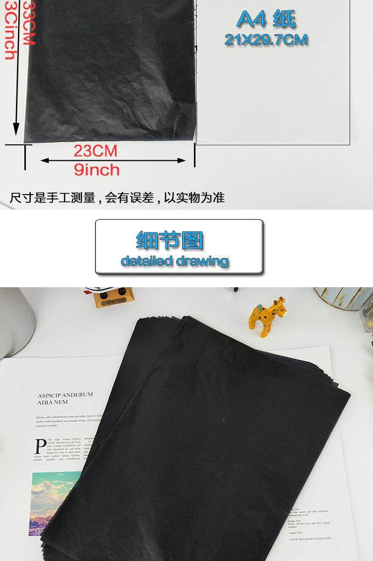 Black Carbon Paper for Graphite, A4 Large Sheet, Single-Sided, 8K, 16K, Non-Sticky Copy Paper for Handwriting, Cross-Stitch, Tracing, and Drawing