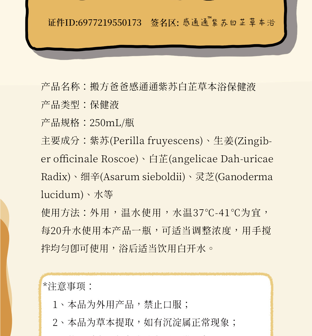 | Color Classification | [Inductive]Perilla Baizhi Herbal Bath*1 Bottle/Trial Pack,[Inductive]Perilla Baizhi Herbal Bath*3 Bottles/Single Course of Treatment,[Inductive]Perilla Baizhi Herbal Bath*9 Bottles/Full Course of Treatment,Herbal Bath Trial Pack Collection*5 Bottles,[Cough and Gentle Formula]50% Perilla; 25% Ginger; 15% Croscopy; 5% Muslin; 5% Ganoderma Lucidum |