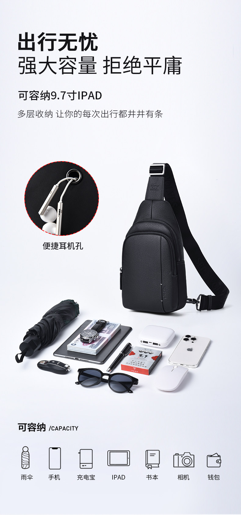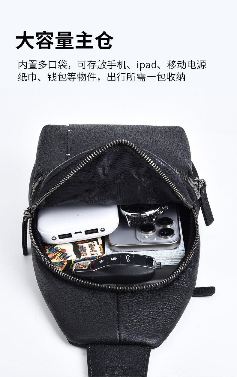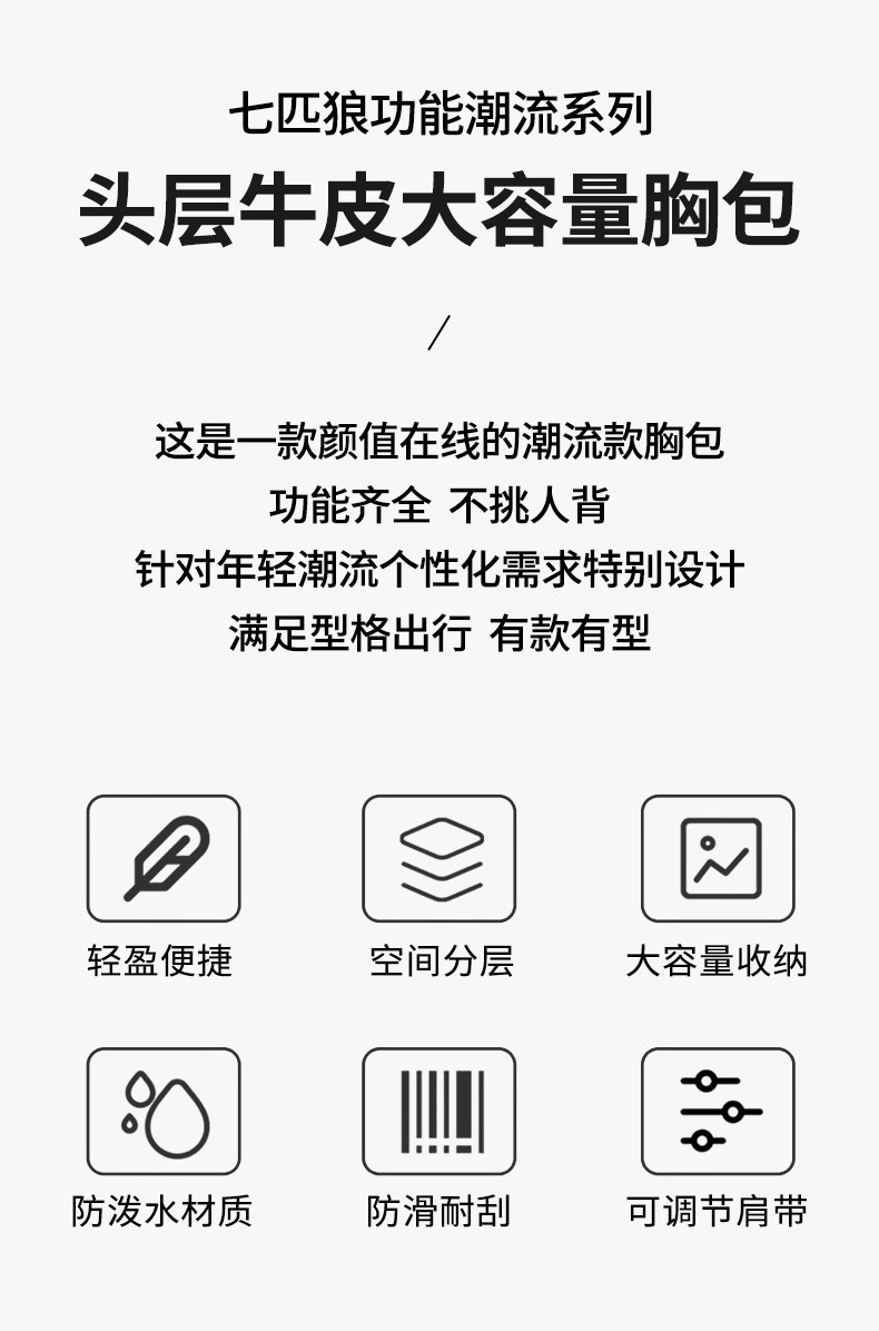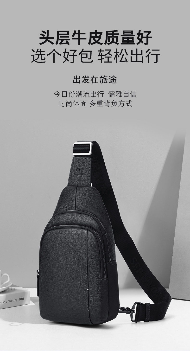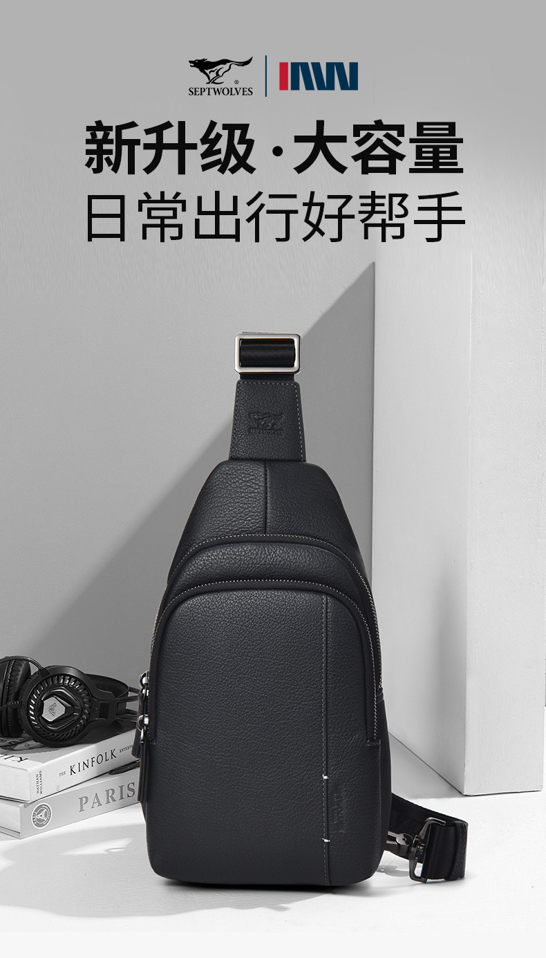 Septwolves Men's Bag Men's Chest Bag Brand Genuine Leather Single Shoulder Crossbody Bag Famous Brand Multifunctional First Layer Cowhide Small Backpack