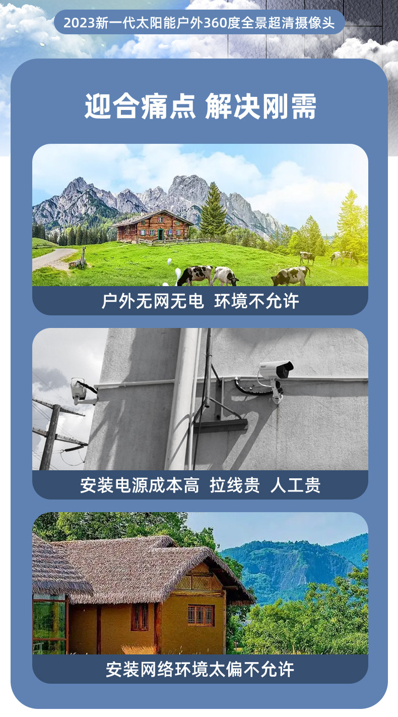 Solar-Powered Camera Wireless Mobile Remote Monitoring for Home Outdoor Use Ultra-Clear 360-Degree No Blind Spots No Need for Power Plug 4g