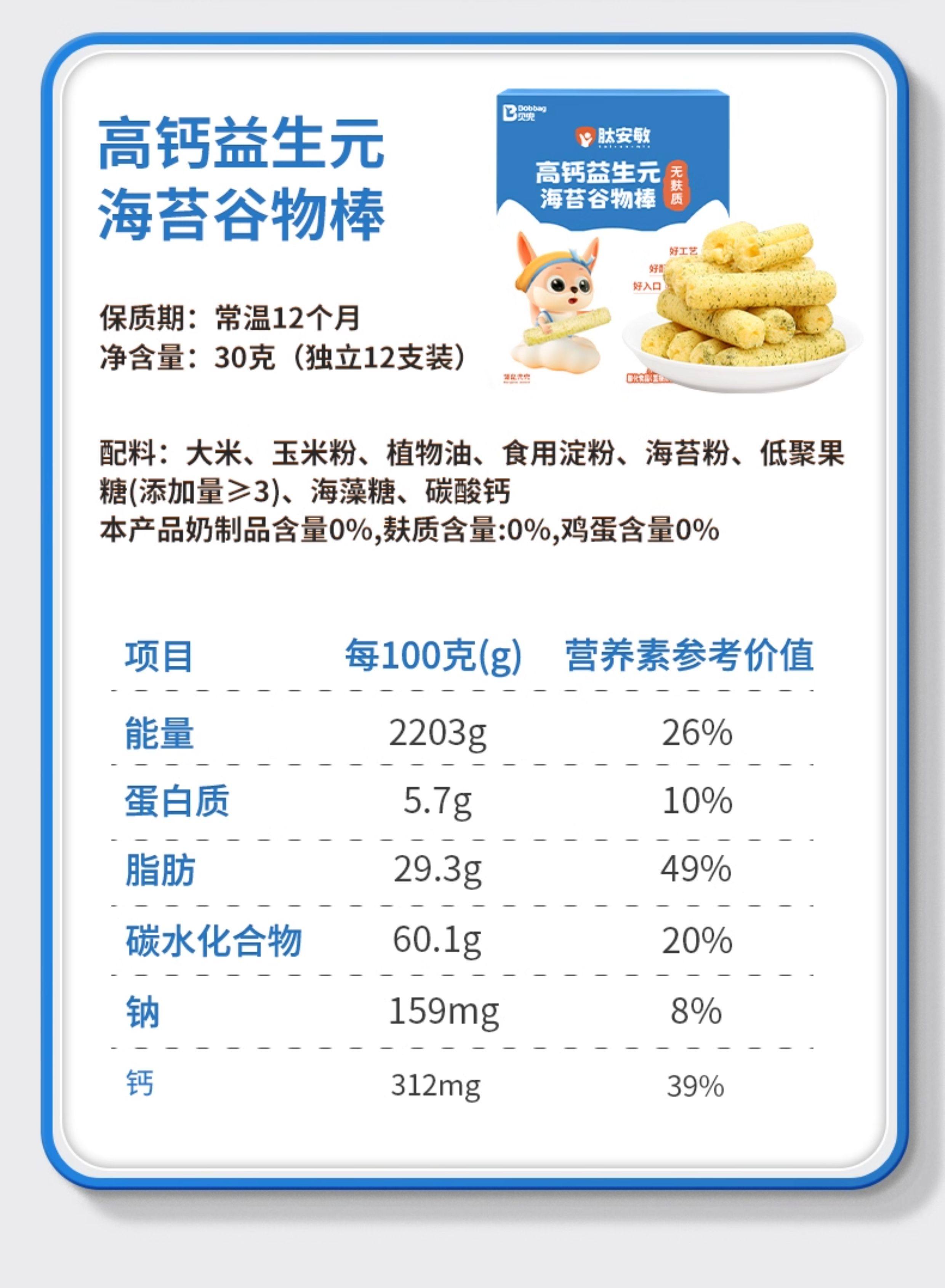 Beidou Cereal Bars, Children's Snacks, High-Calcium Biscuits, No Added Eggs, Gluten-Free, Free Baby Food Supplement Recipe for One-Year-Old Babies
