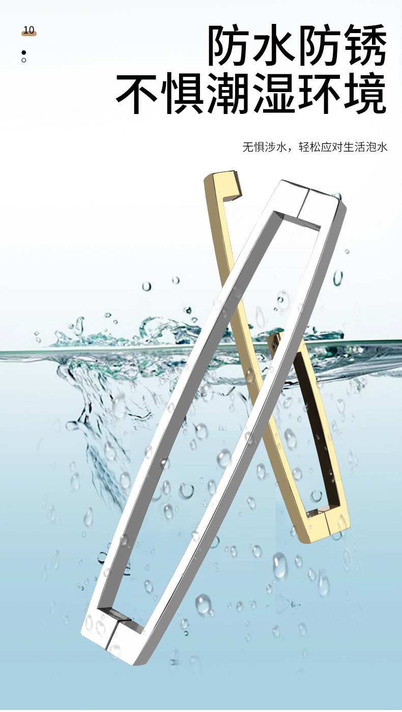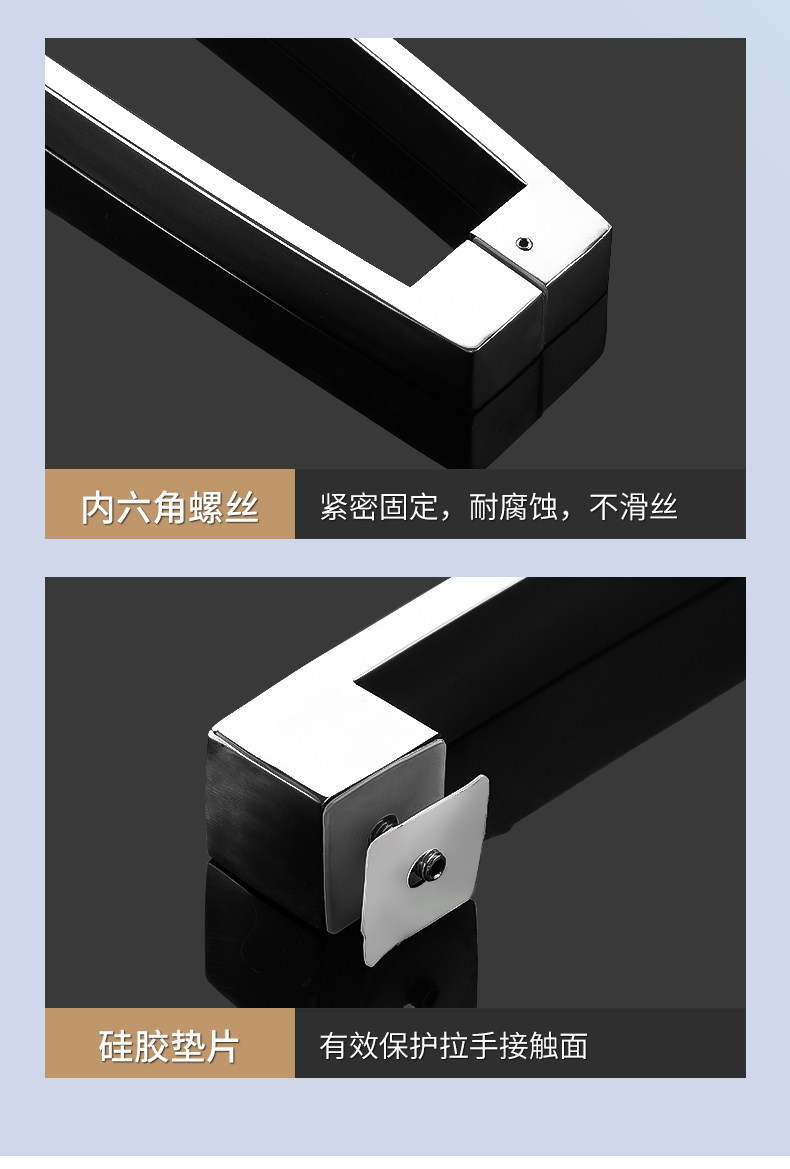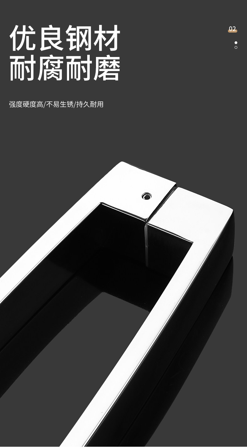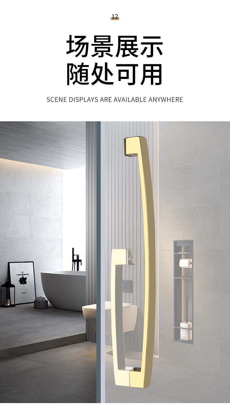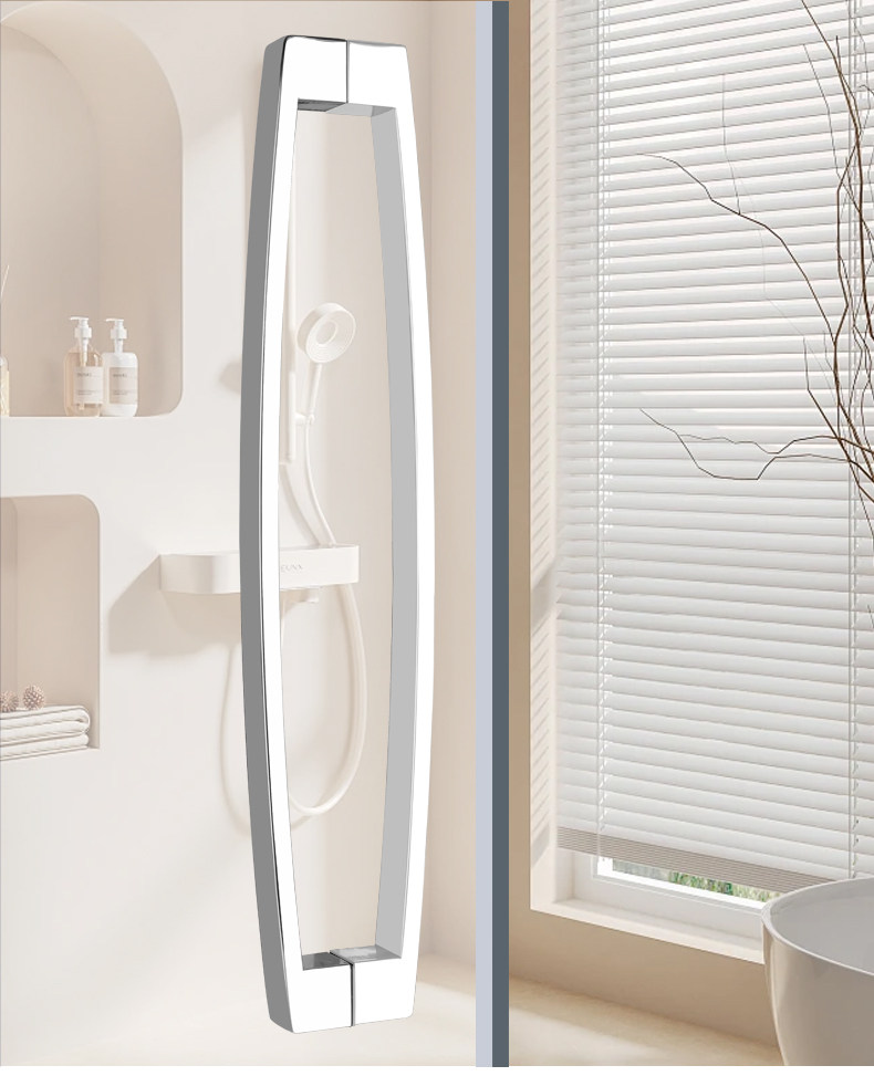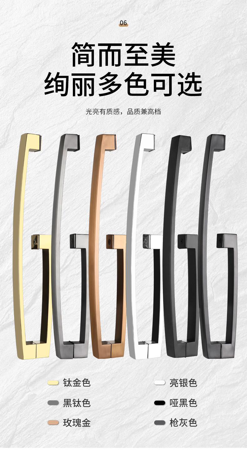 Square Tube Bathroom Glass Door Handle 304 Stainless Steel Curved Matte Black Titanium Rose Gold Shower Room Door Handle
