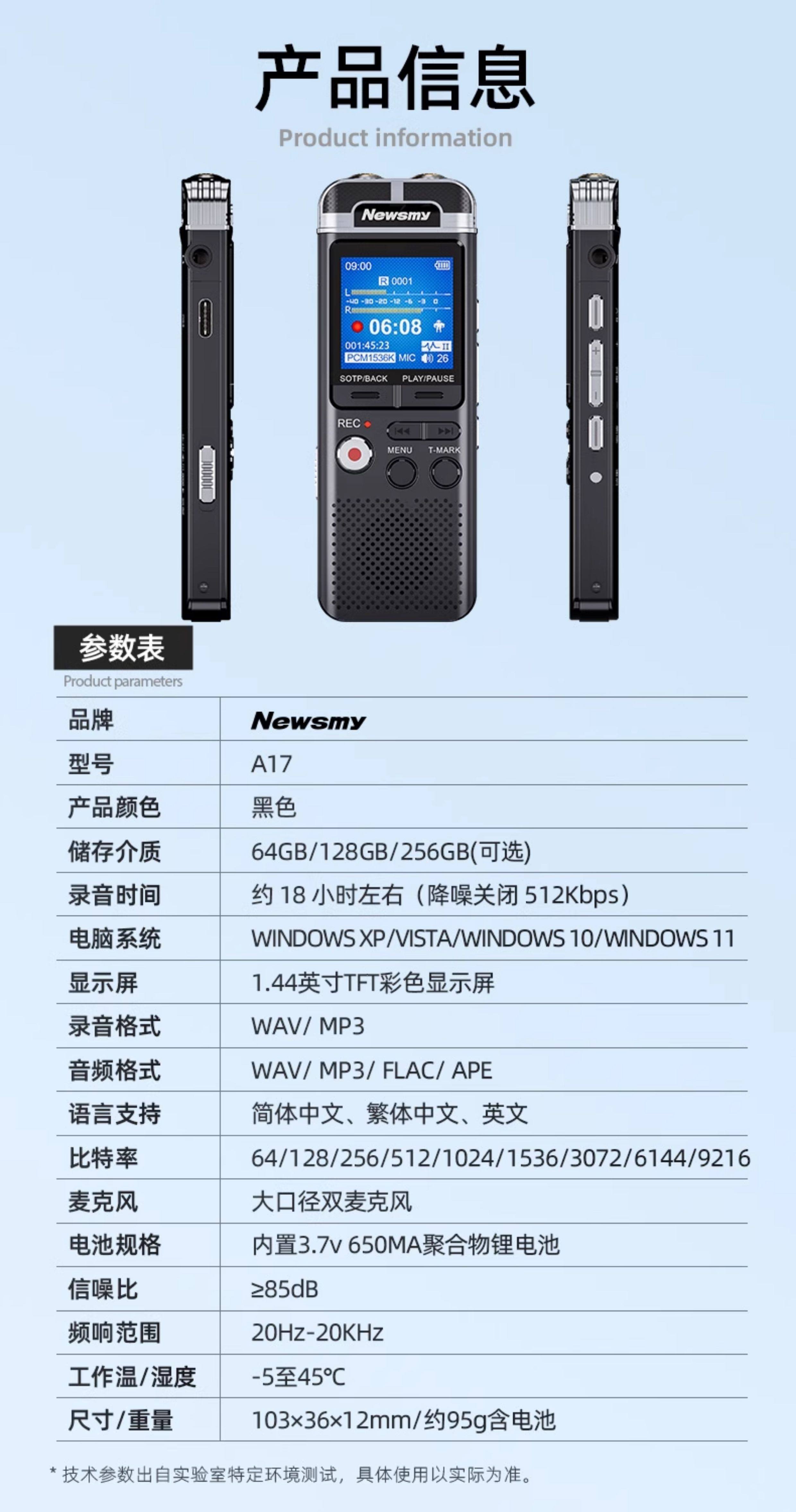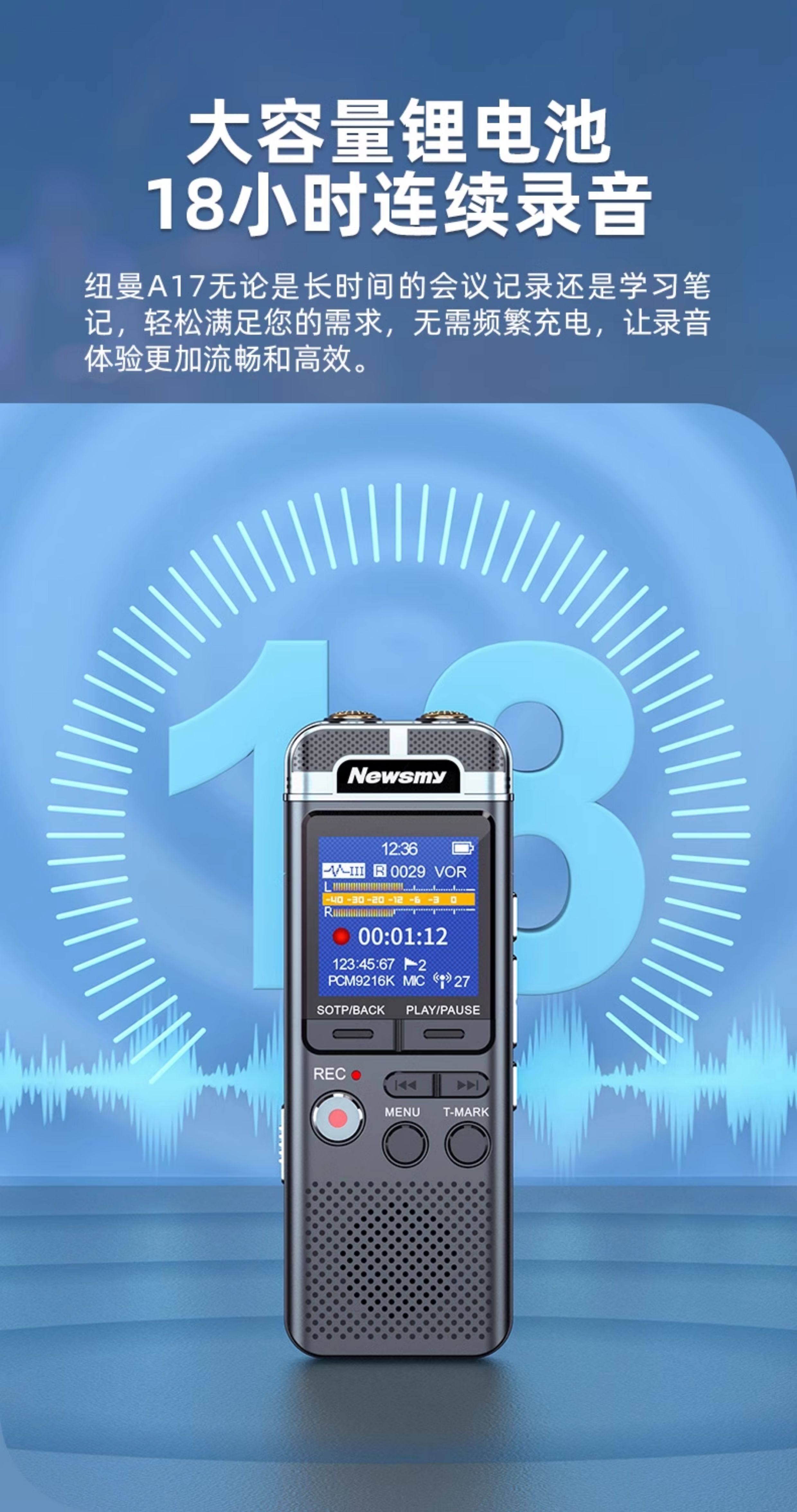 Newman A17 Voice Recorder Is a Professional-Grade High-Definition Noise Reduction Device for Conferences, Business, and Lawyers, with Long Battery Life and Large Internal Storage