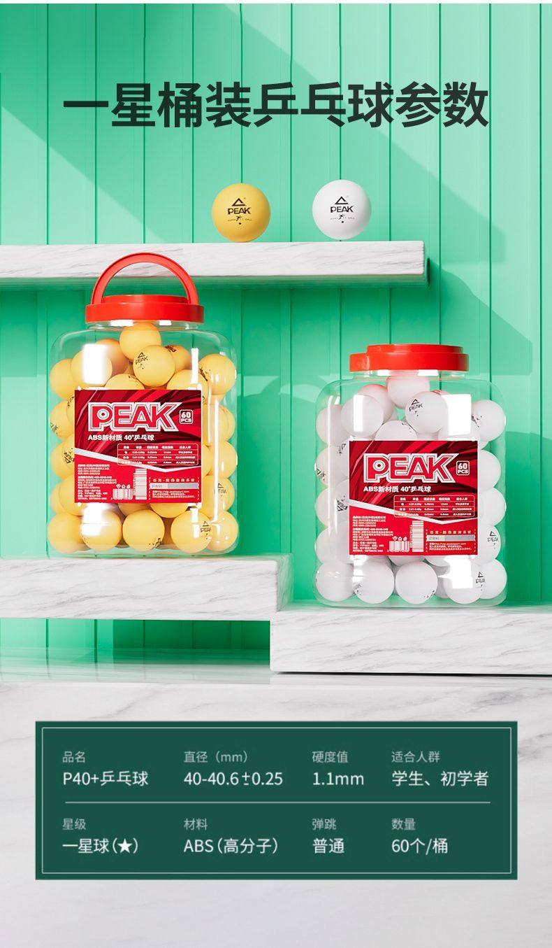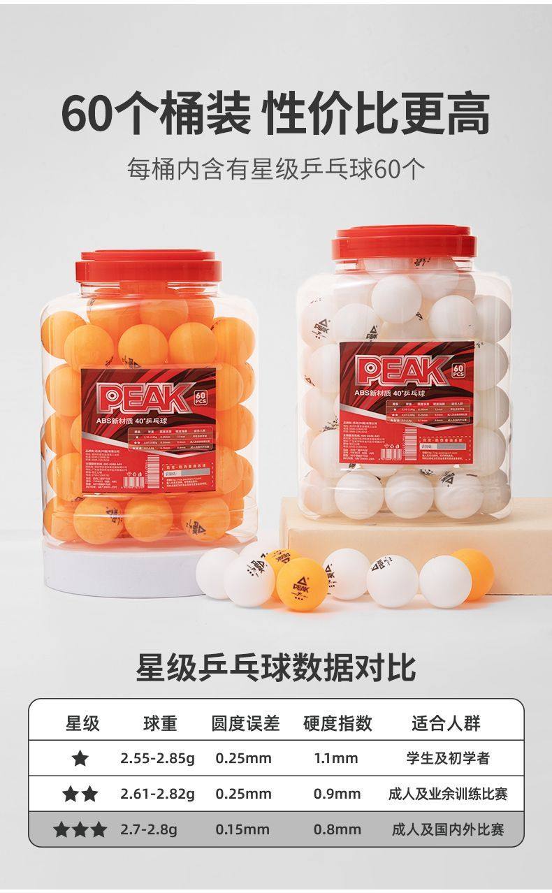 Peak's New Material 40+ Three-Star Seamless Professional Training Ball Competition Table Tennis 60 Large Barrels of High Elastic Balls