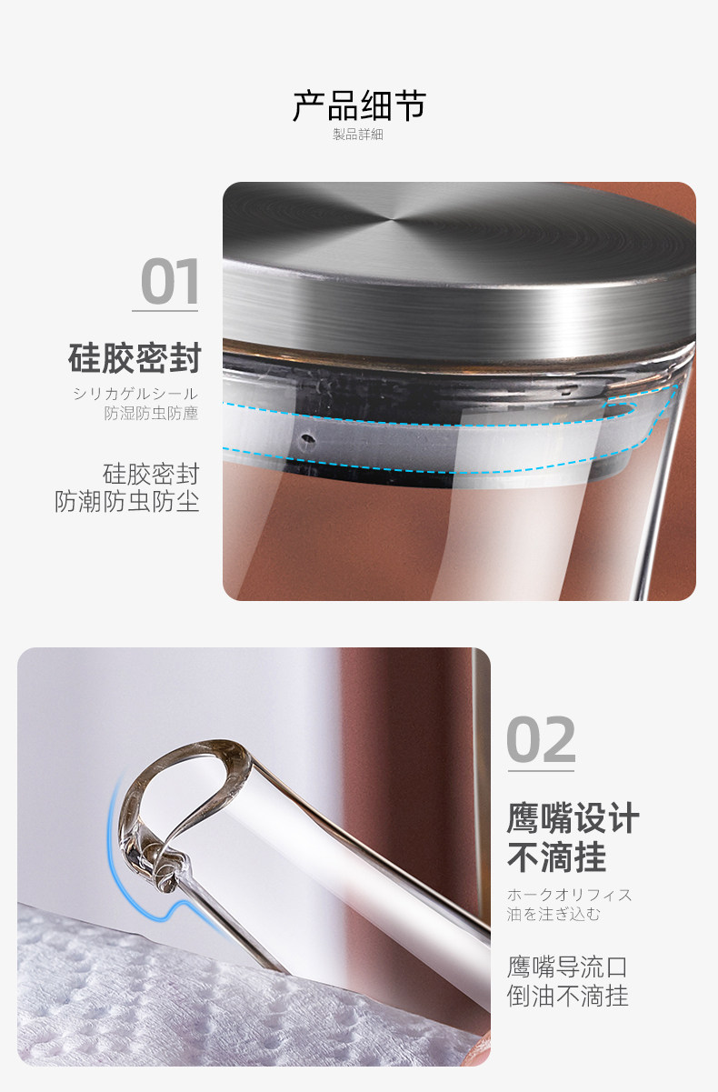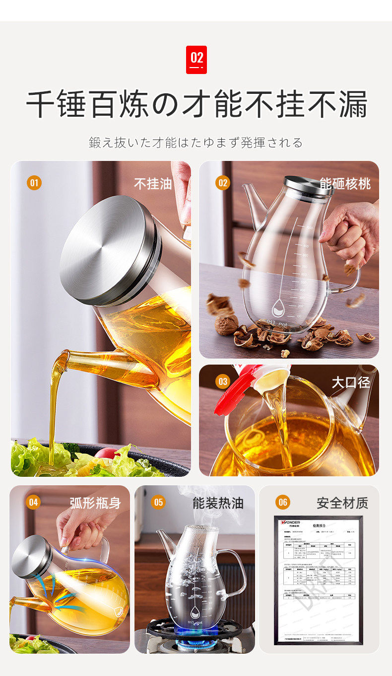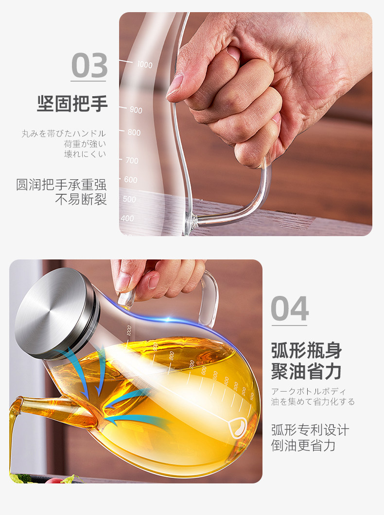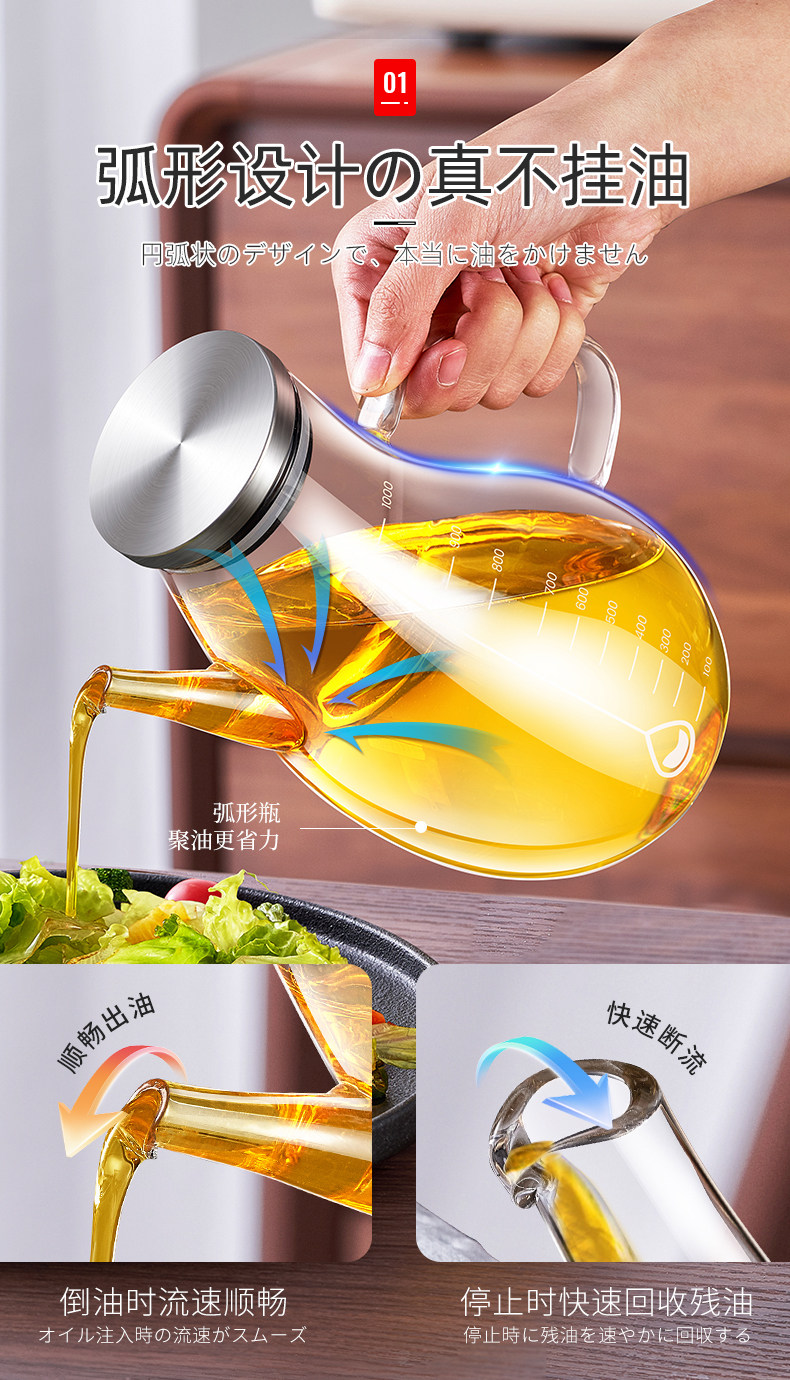 Glass Oil Pot That Doesn'T Retain Oil, Number One for Kitchen Use, Special Oil Bottle for Home Use, Vinegar Bottle for Soy Sauce and Vinegar, Food-Grade Container