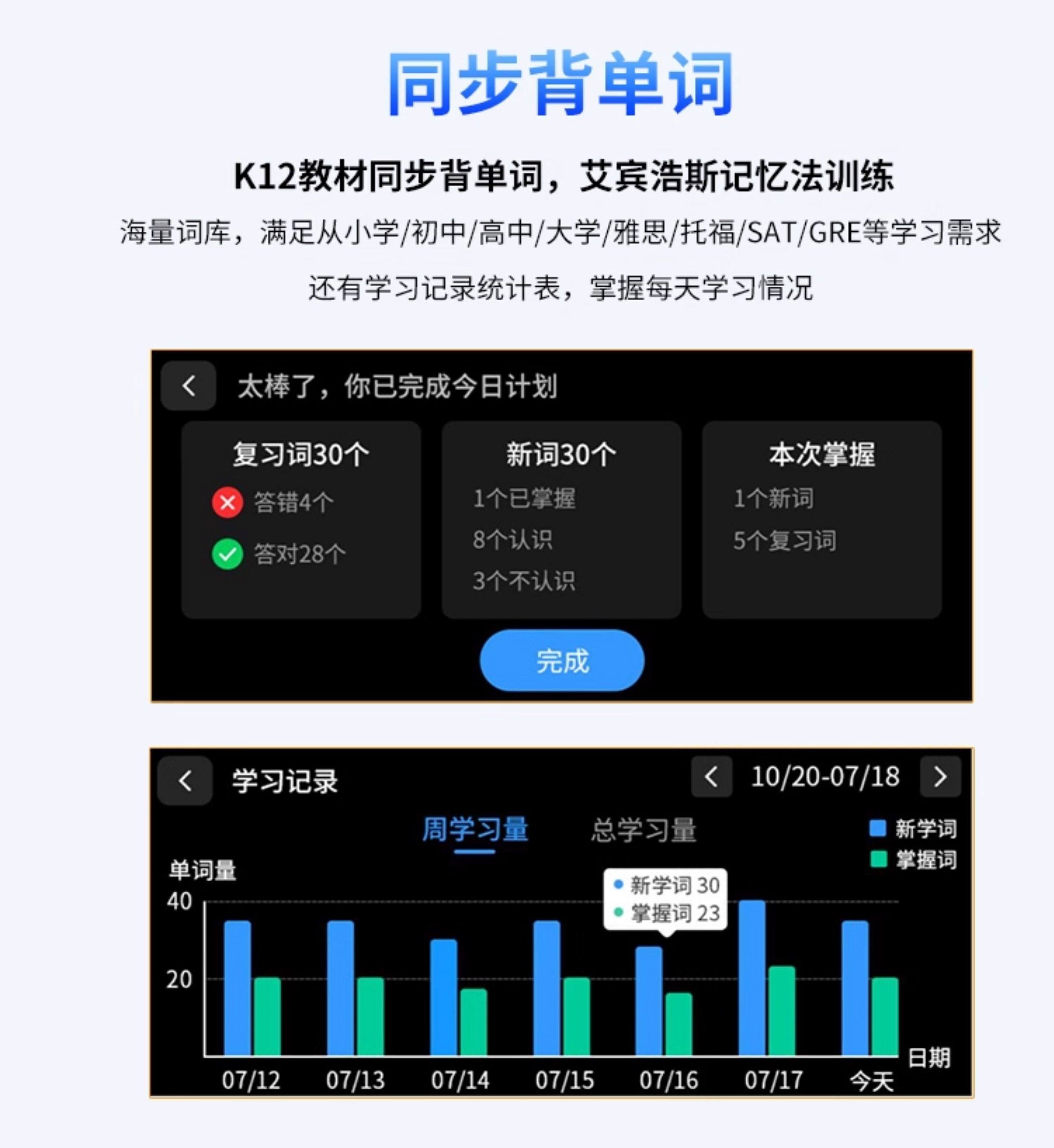 | Point Reading Content Type | High School and College Entrance Exam (Core Vocabulary/Phrases/Listening Comprehension),Course Synchronization,College Entrance Examination (Postgraduate Entrance Exam Vocabulary/Toeic/Toefl/Tem-4/Tem-8 English Core Vocabulary) |