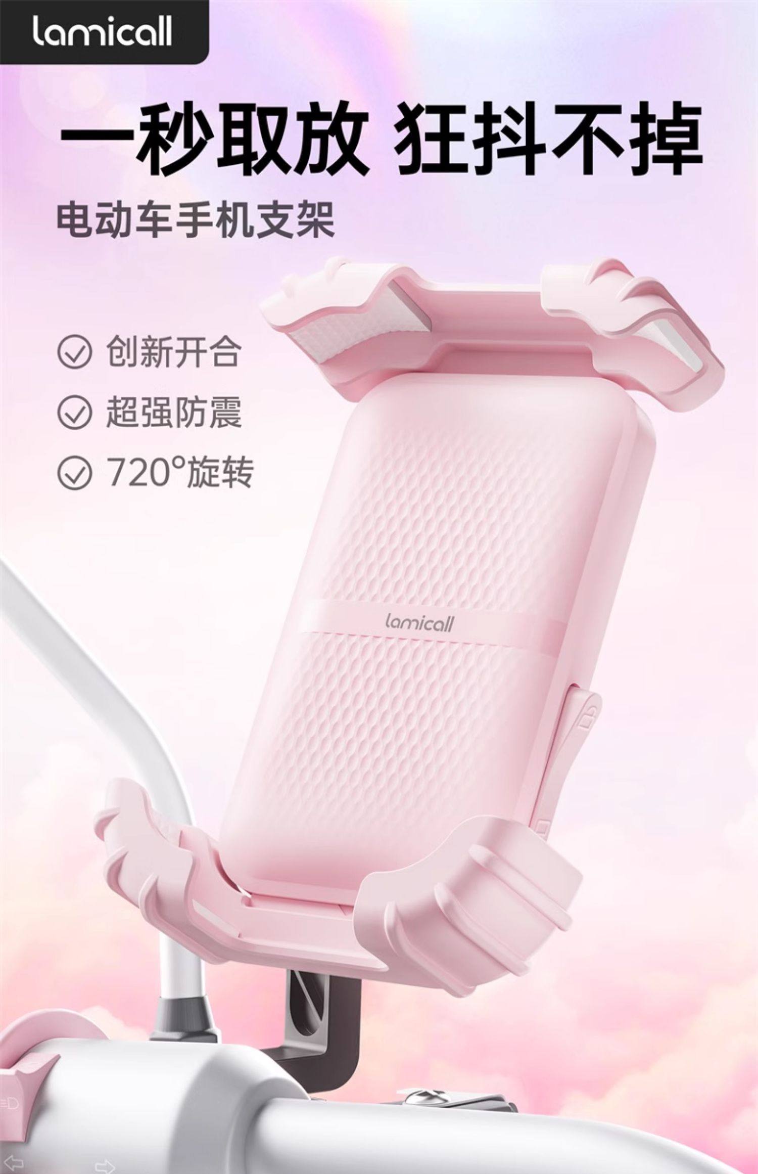 Lamikoo Electric Vehicle Phone Holder, Battery Car/Motorcycle Phone Mount, Shockproof and Anti-Shake, Special Holder for Delivery Riders