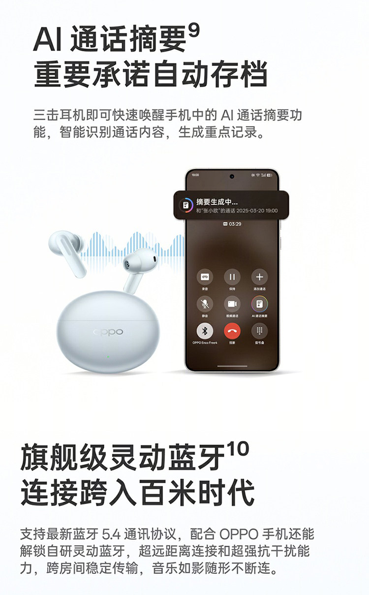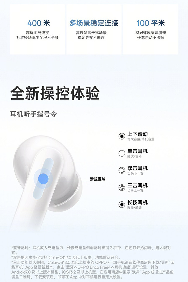 Oppo Enco Free4 Bluetooth Headphones Oppo Headphones Encofree4 True Wireless In-Ear Noise-Canceling Headphones
