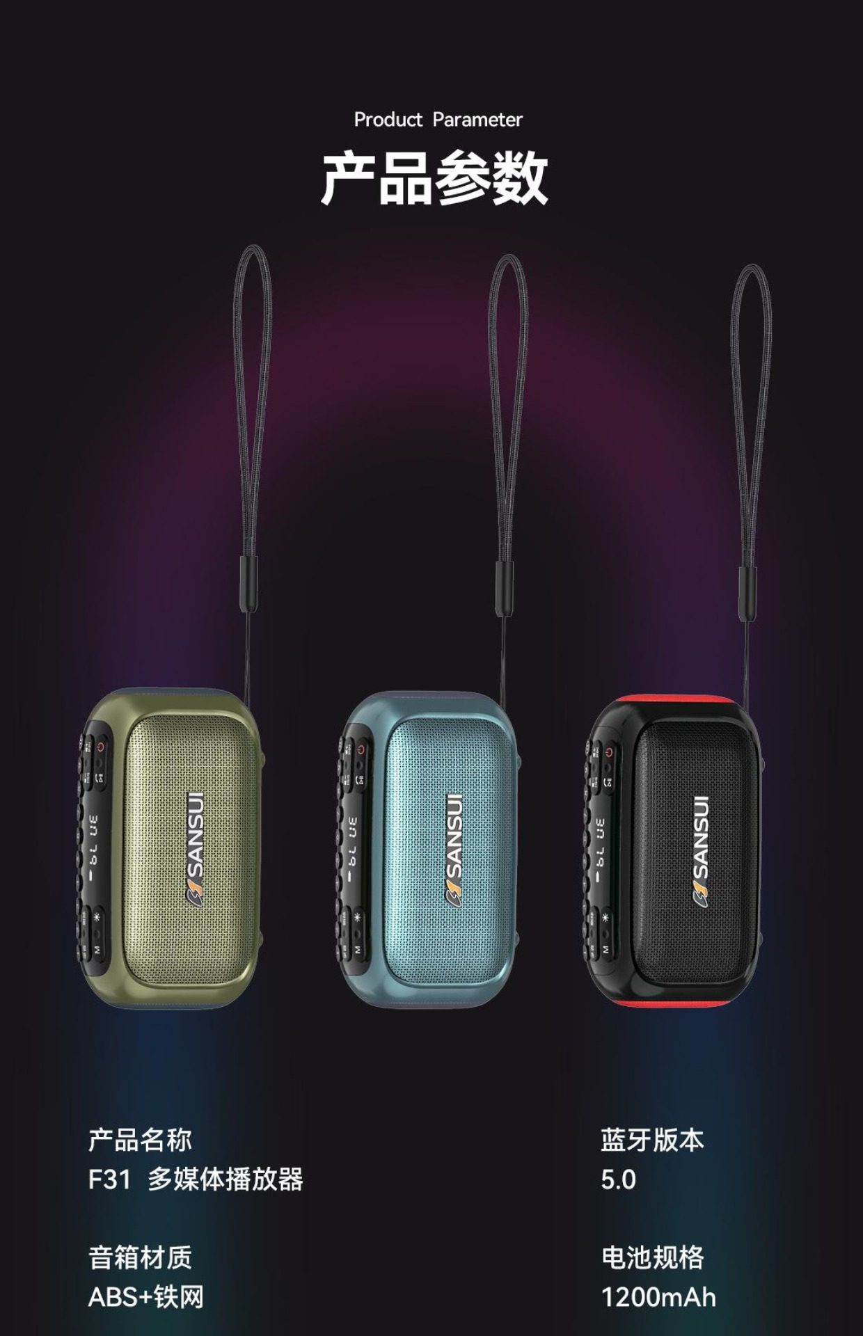 Shanshui F31 Portable Bluetooth Plug-In Card Speaker Radio Tai Chi Audio Bass Dual Speakers Digital Song Collection