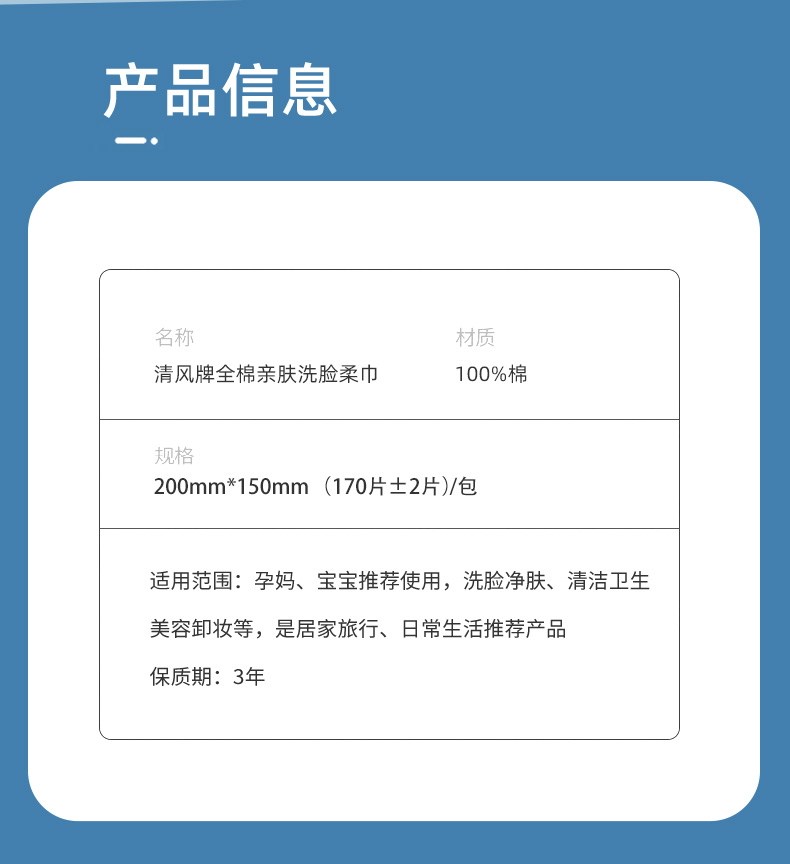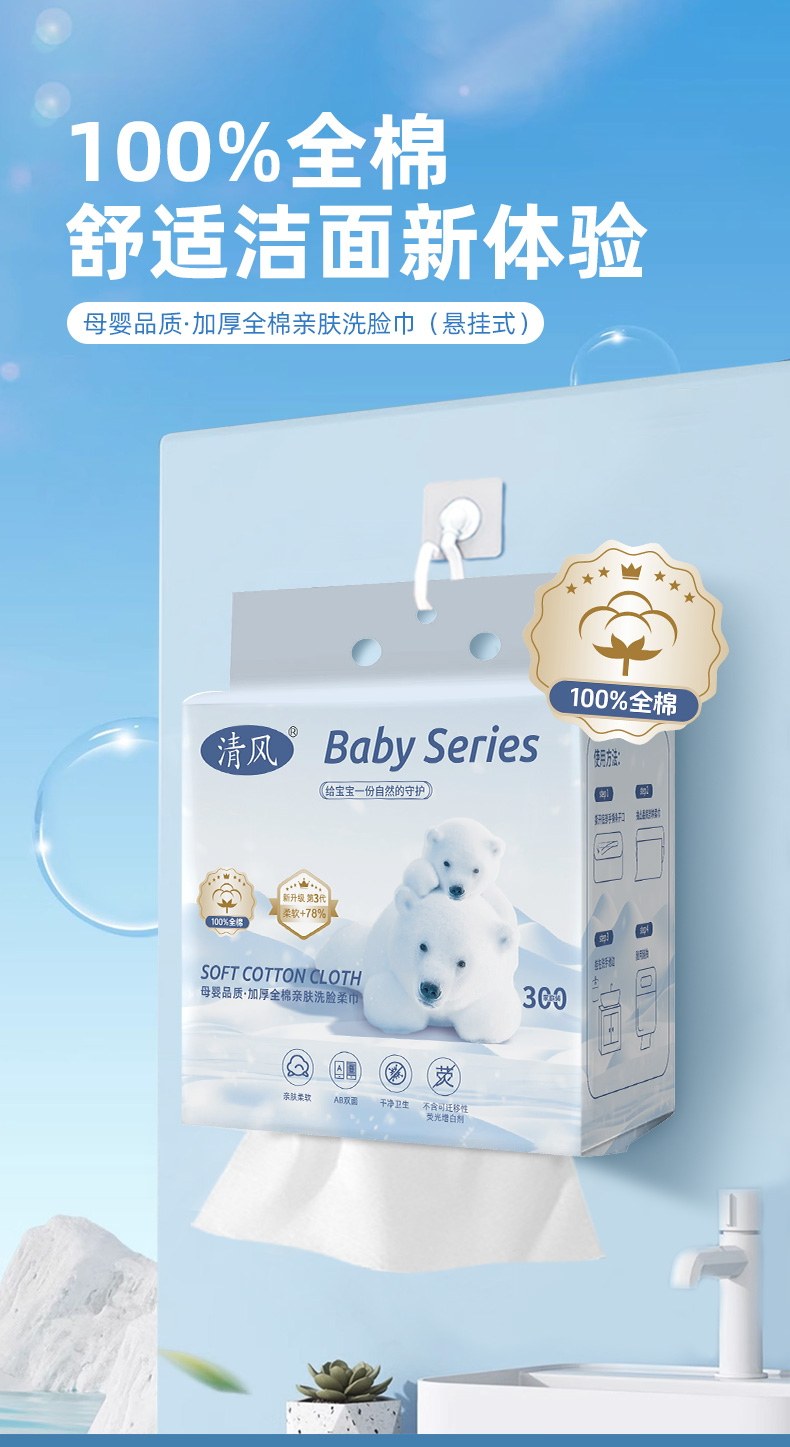 Qingfeng Face Towel, Pure Cotton, Disposable, Wall-Mounted, Cleansing and Wiping Face, 100% Cotton, Soft Towel, Specially Designed for Infants and Children