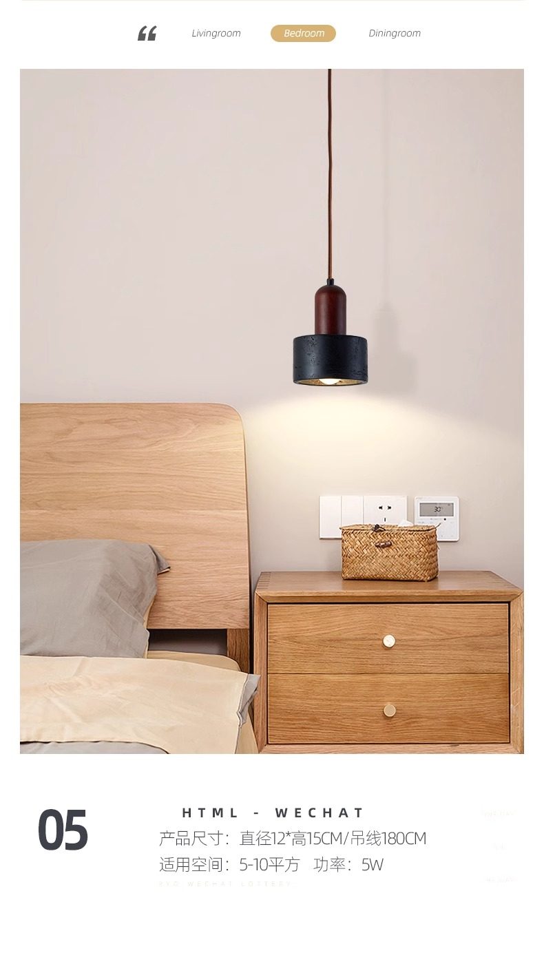Bedroom Bedside Chandelier Black Stone Japanese Retro Wabi-Sabi Style Designer Personality Room Entrance Bar Counter Pendant Light