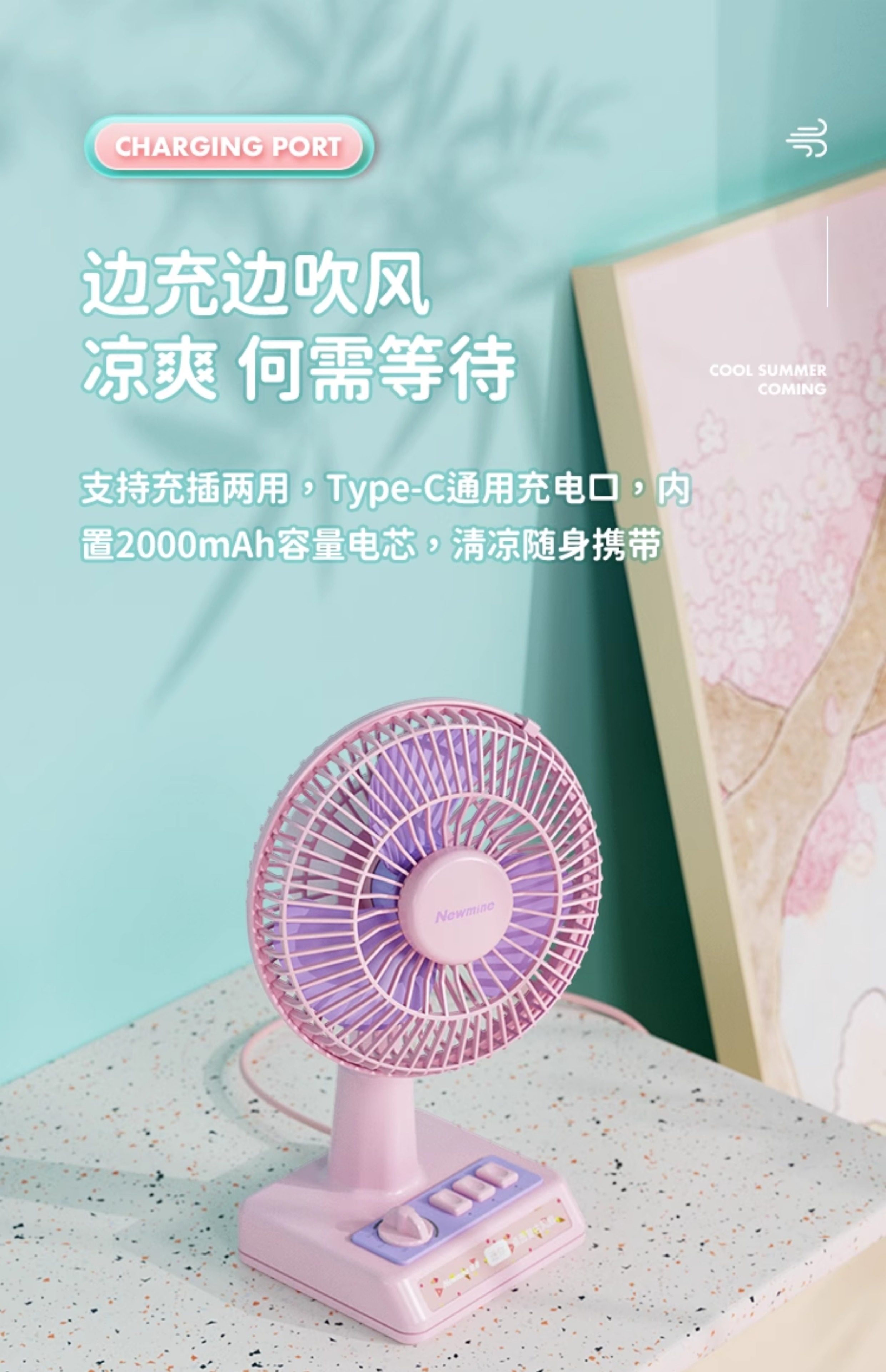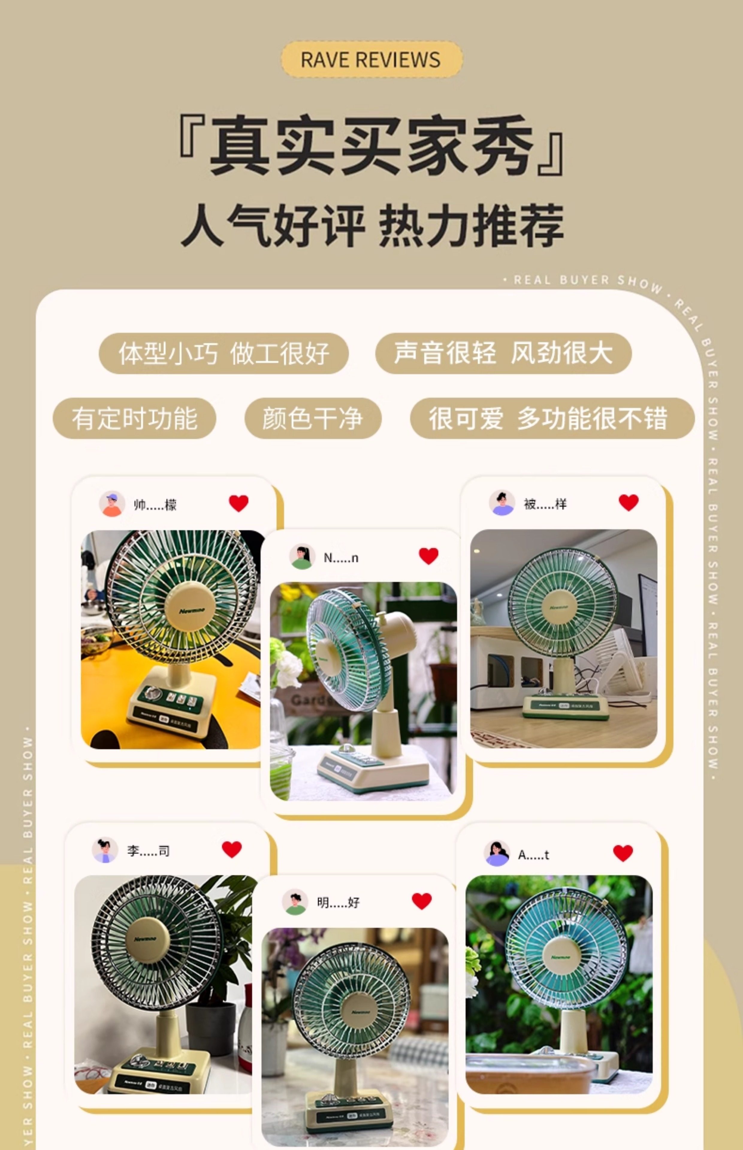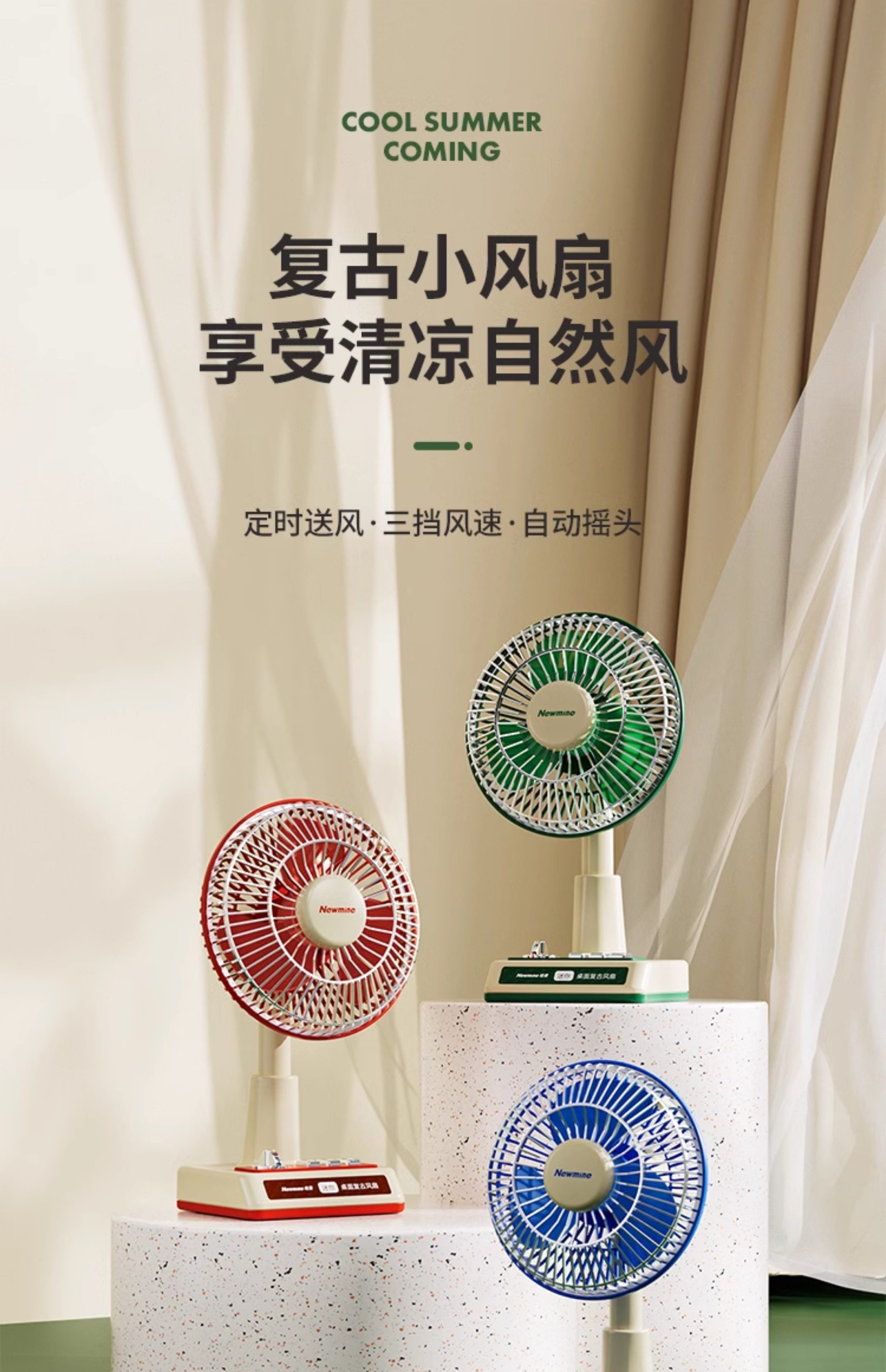 [Desktop Cooling Companion]Newman 2025 New Model Desktop Retro Nostalgic Fan Office Oscillating Mini Timer Small Cute Home Dormitory Silent Student Desktop Electric Fan