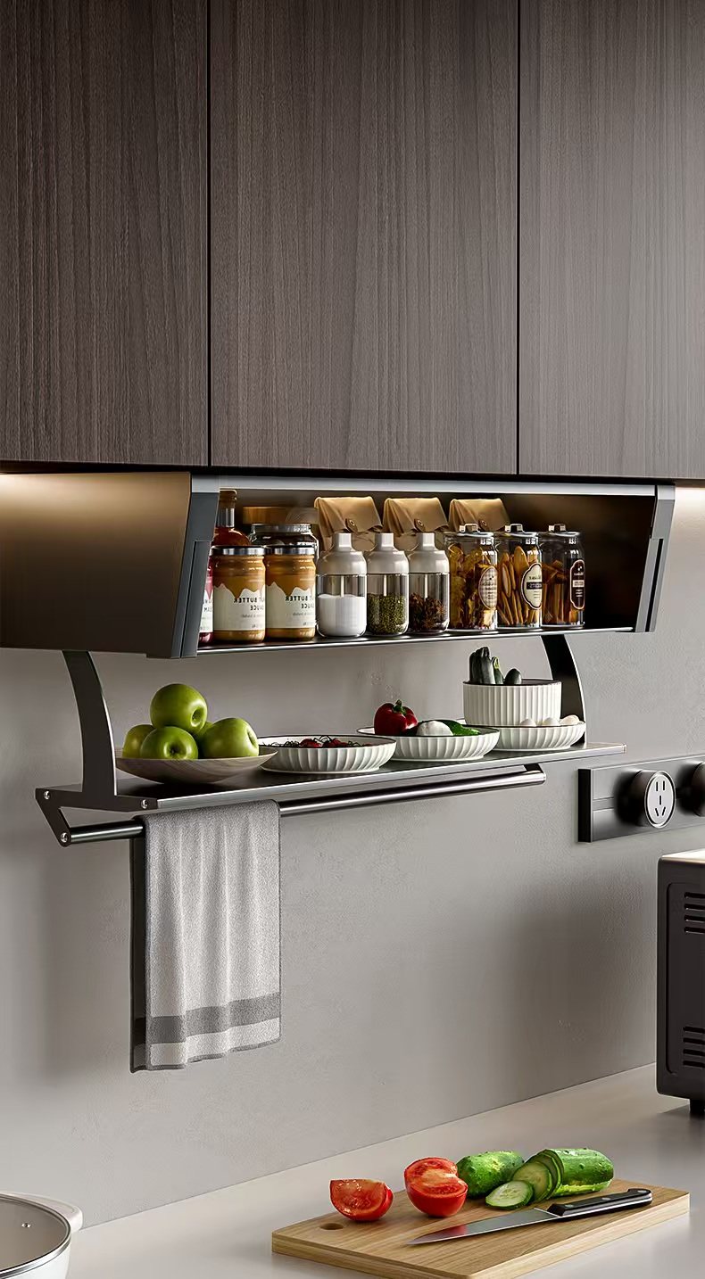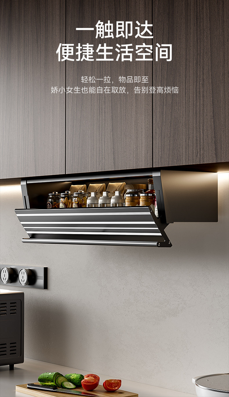 Slotted Wall Cabinet Pull Basket Kitchen Cabinet Aluminum Alloy Space Capsule Storage Box Dish Storage Seasoning Basket Vegetable Preparation Rack