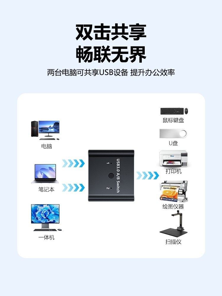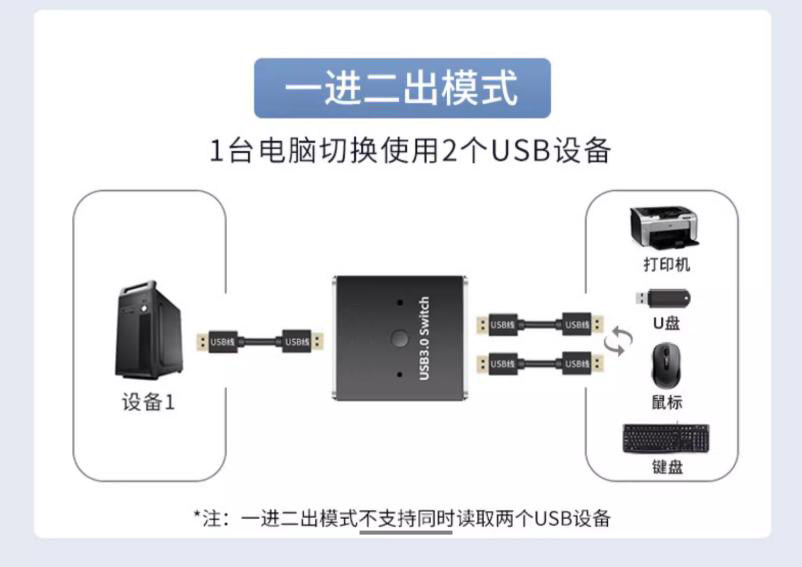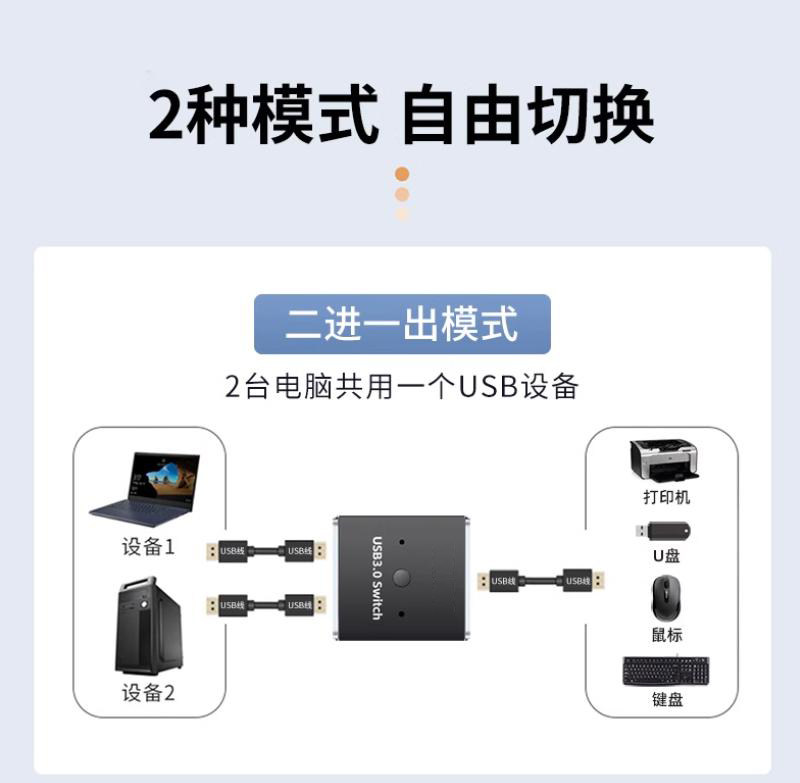 Computer 2-In-1-Out Shared Mouse and Keyboard Usb3.0 Printer Scanner U-Dongle Sharing Switcher No Need to Unplug