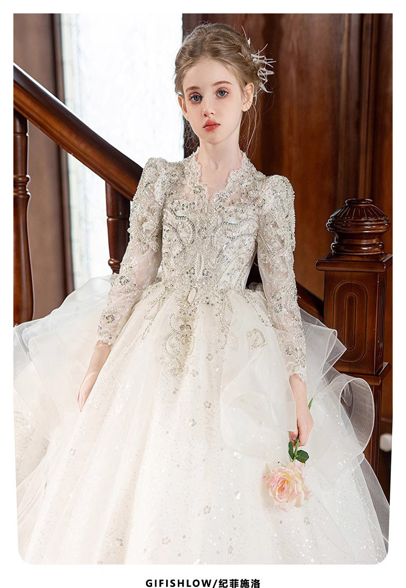 Gifishlow Hong Kong Luxury Children's Clothing High-End Girls' Birthday Party Evening Dress Host Piano Performance Outfit