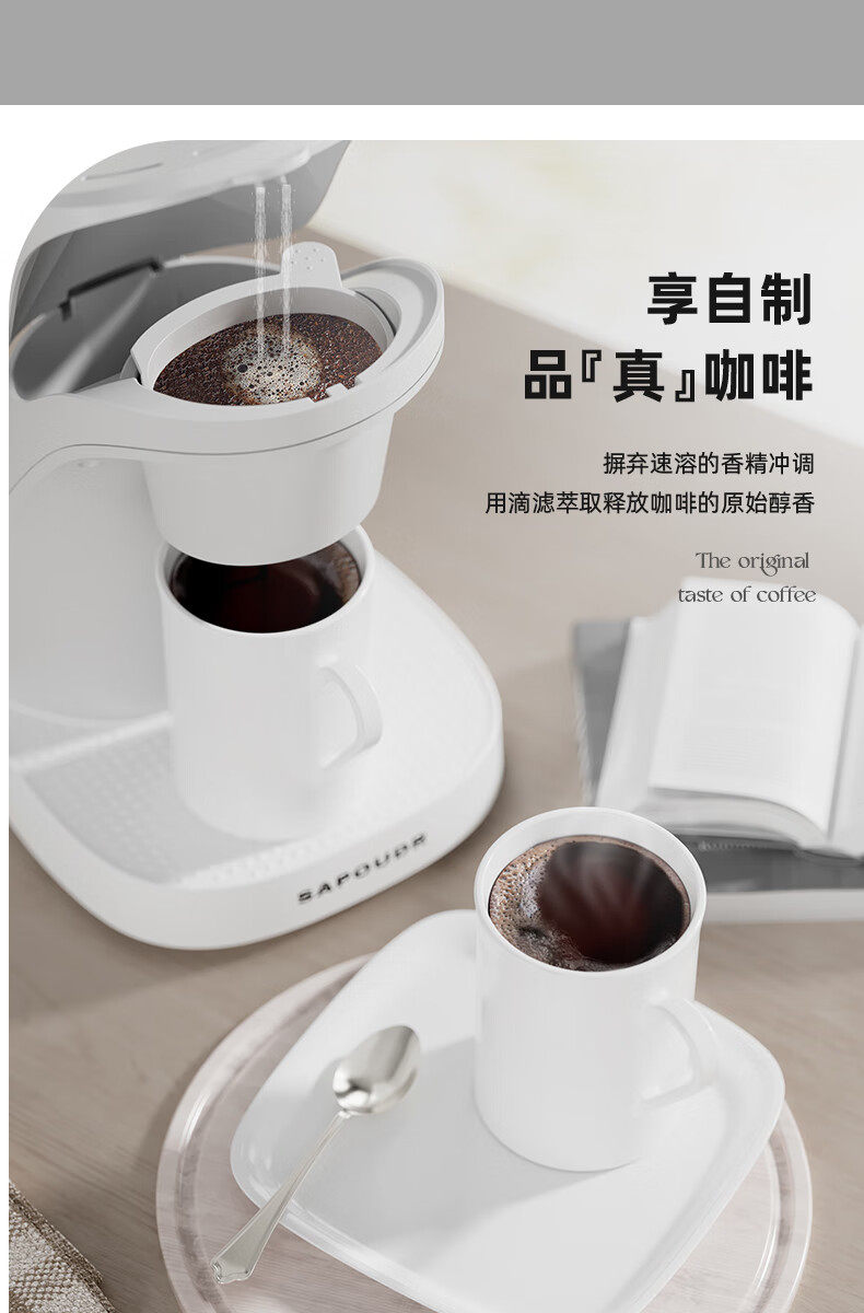 SAPOUDR Cm6620 Coffee Machine Automatic Drip Filter American Style Small Household Office Steaming and Brewing Tea Maker