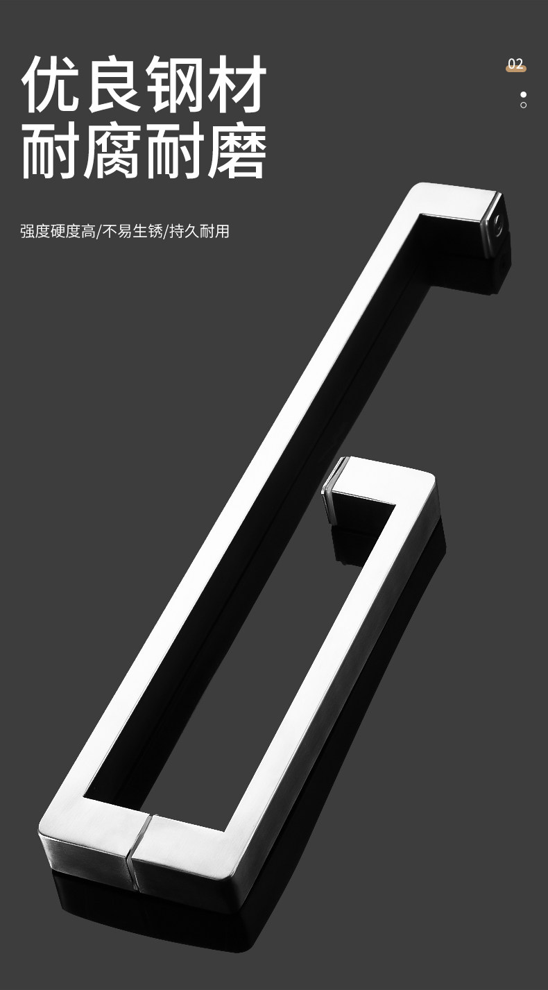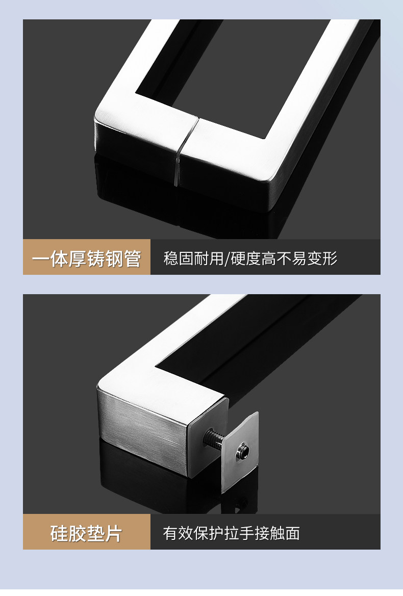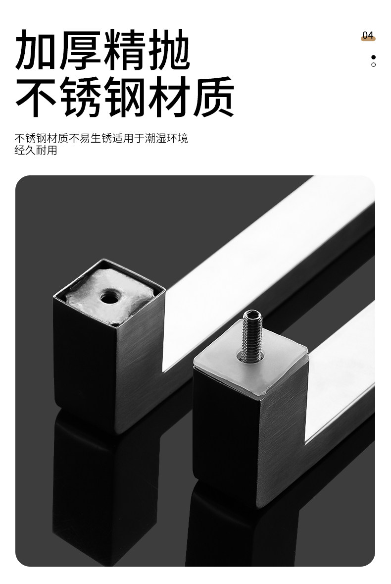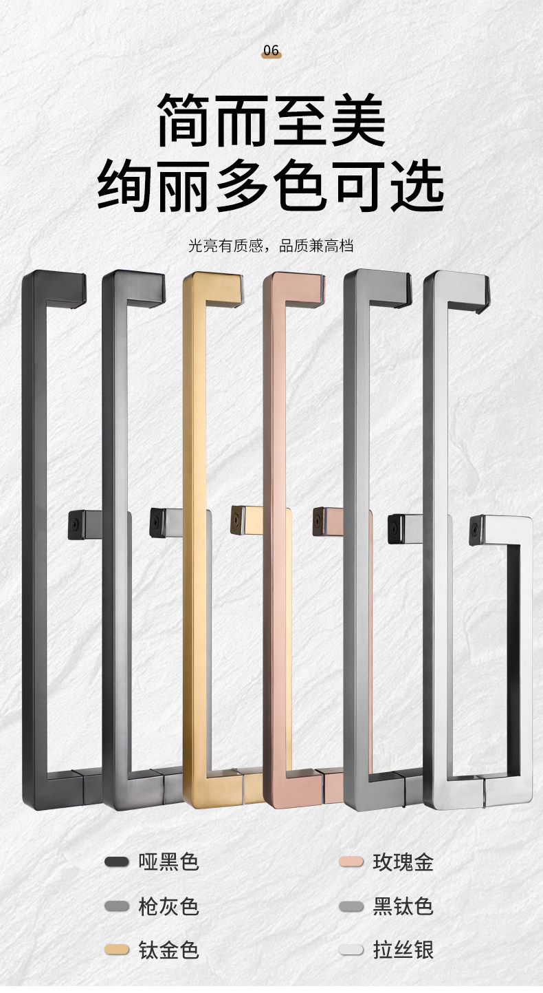 Square Tube Bathroom Glass Door Handle 304 Stainless Steel Thickened Shower Room Door Handle Matte Black Titanium Rose Gold L-Shaped