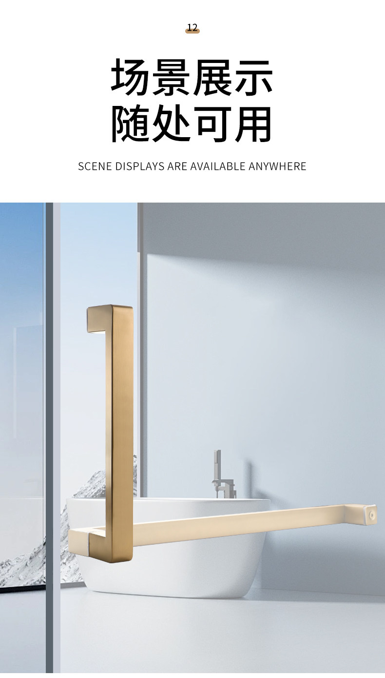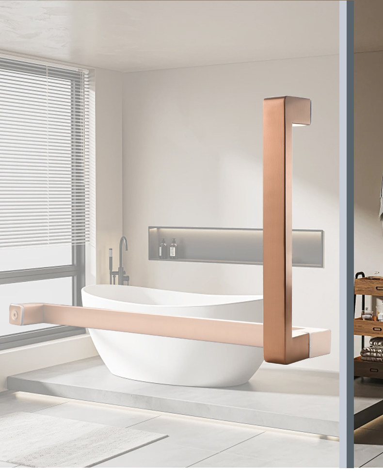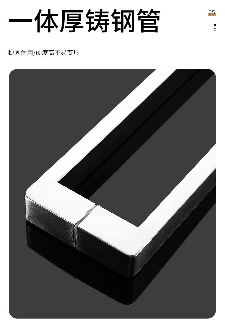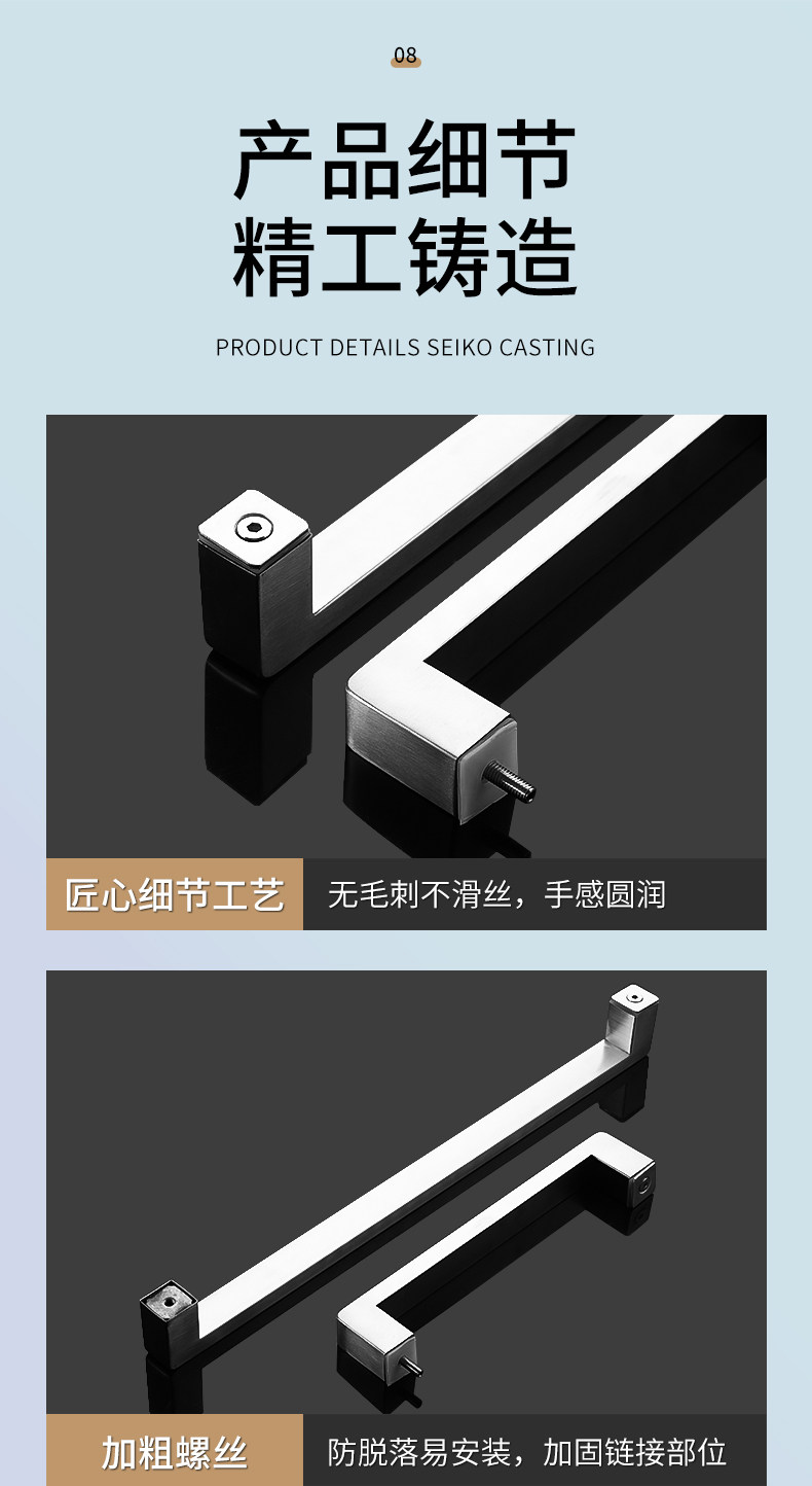 Square Tube Bathroom Glass Door Handle 304 Stainless Steel Thickened Shower Room Door Handle Matte Black Titanium Rose Gold L-Shaped