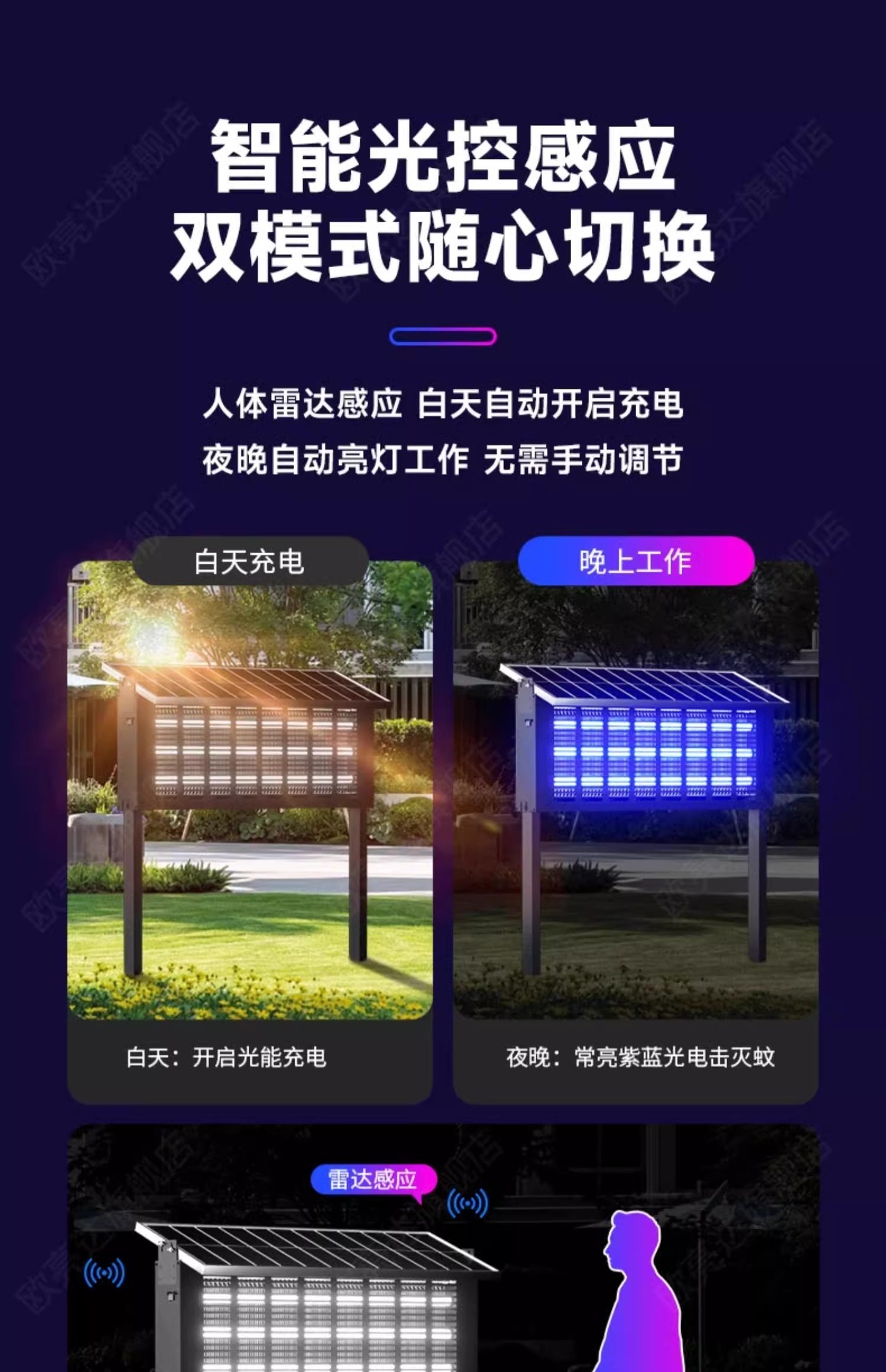 2025 New Solar Mosquito Killer Lamp with Radar Sensor for Outdoor Courtyard and Garden, Special Mosquito Repellent and Fly Killer Device