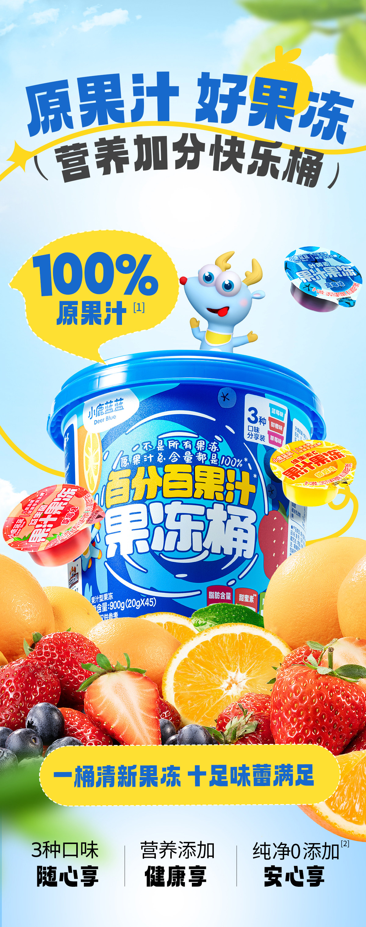 Little Deer Lanlan Nutritional Jelly Bucket 100% Fruit Juice, Safe and Additive-Free, Children's Snack to Appease Babies