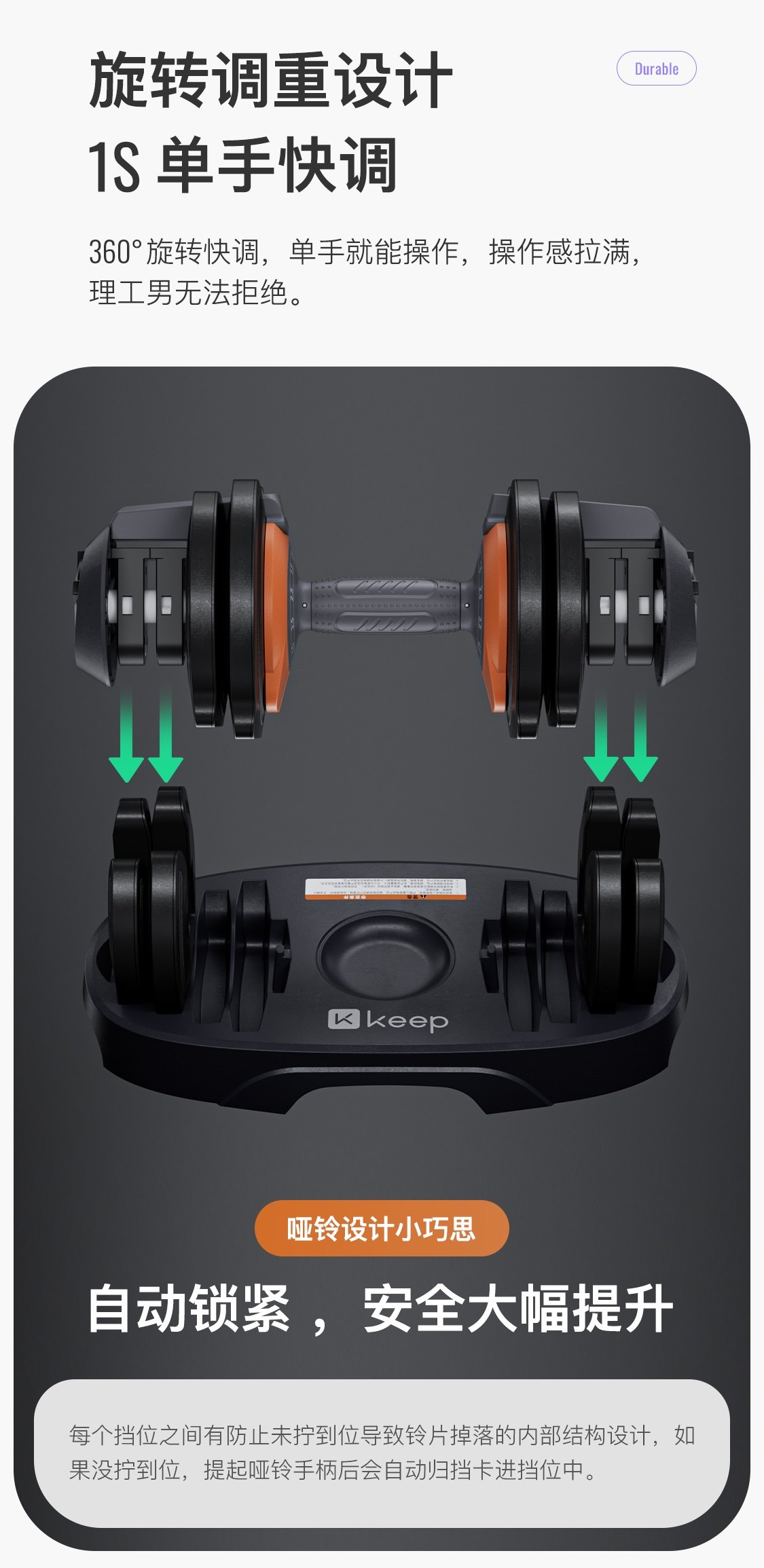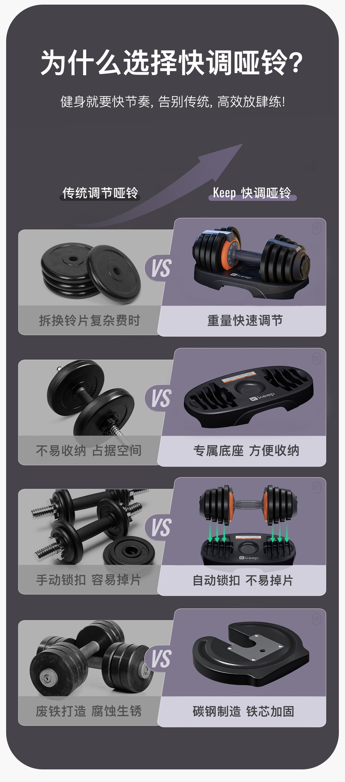 Keep Adjustable Dumbbells for Men's Fitness at Home, Quick-Adjust Solid Steel Plate, Heavy Weight Strength Training Equipment