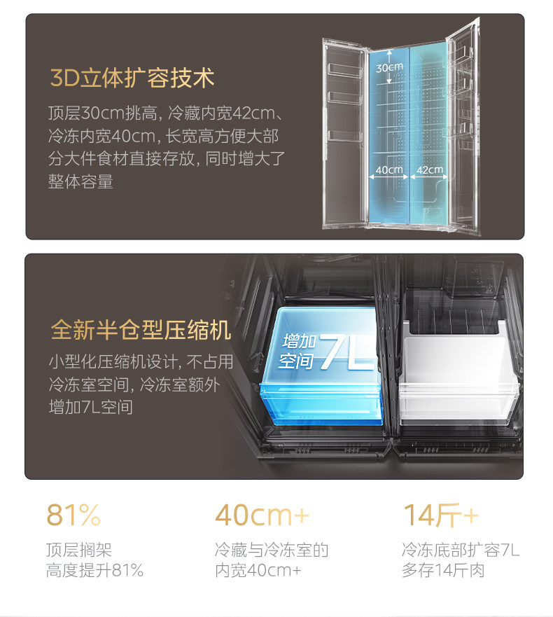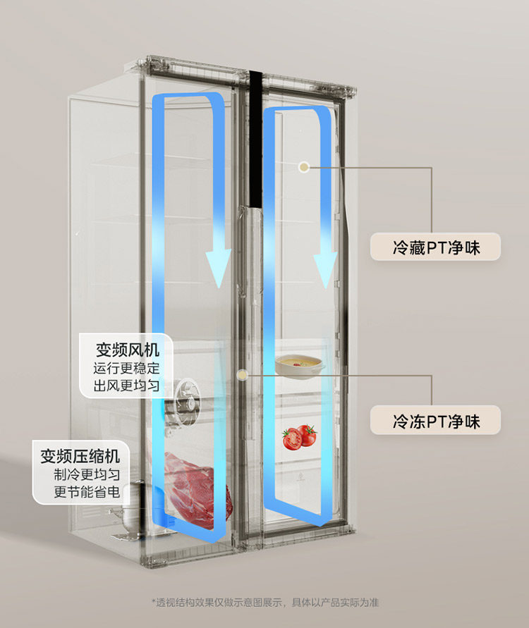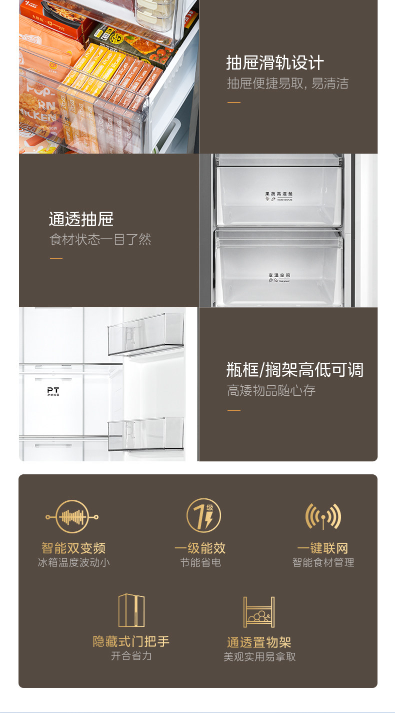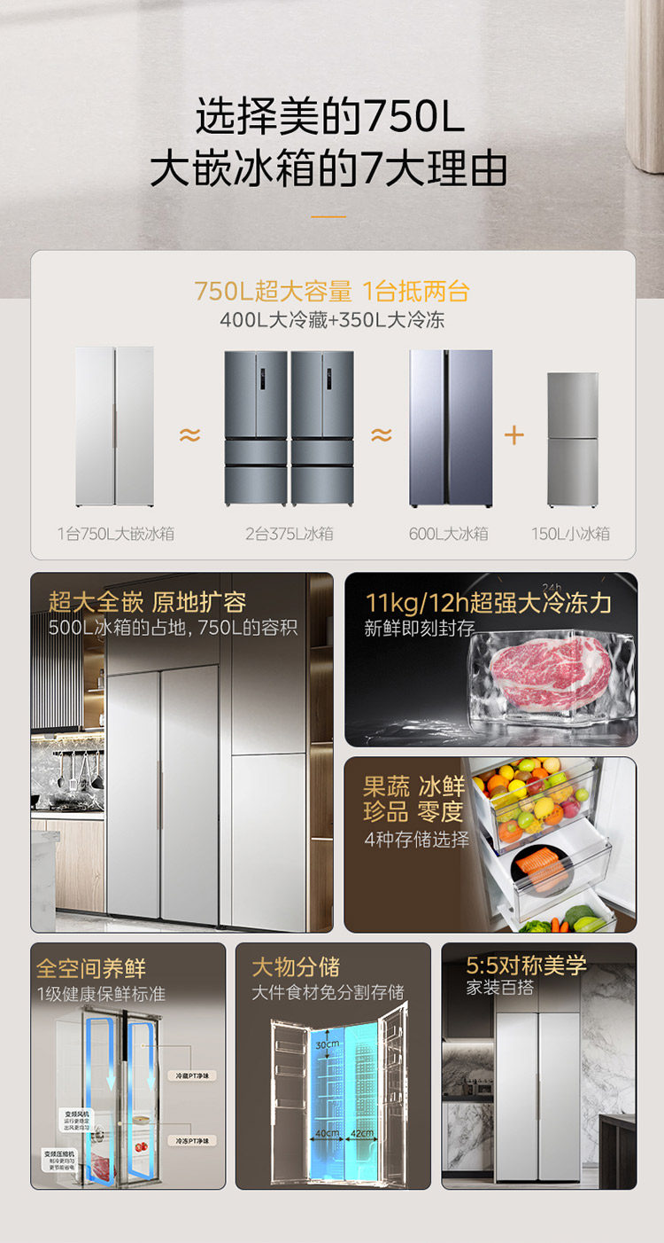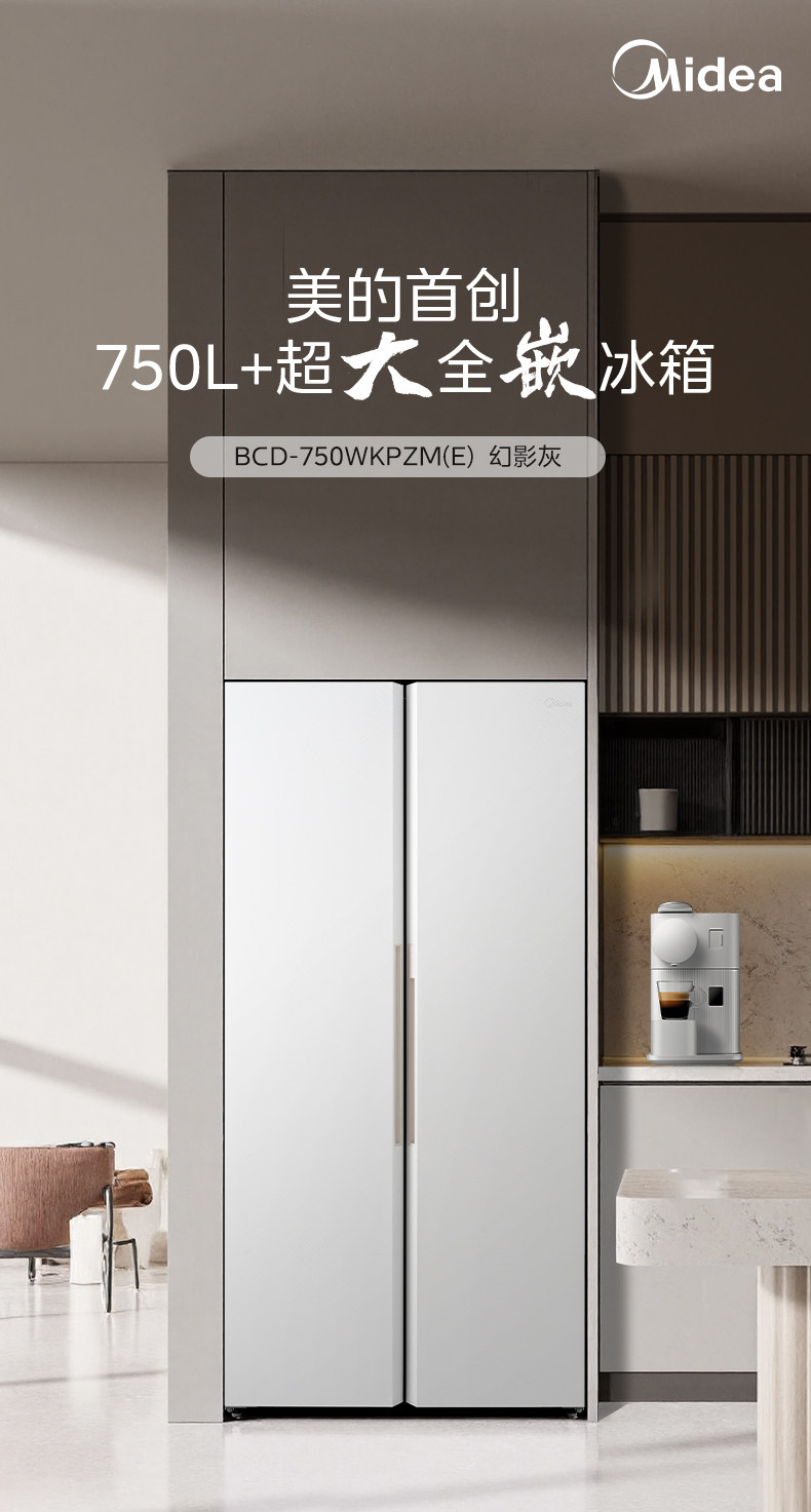[Midea] 750 Double-Door Household Refrigerator with Large Capacity, Ultra-Thin, Fully Embedded, Frost-Free with Air Cooling