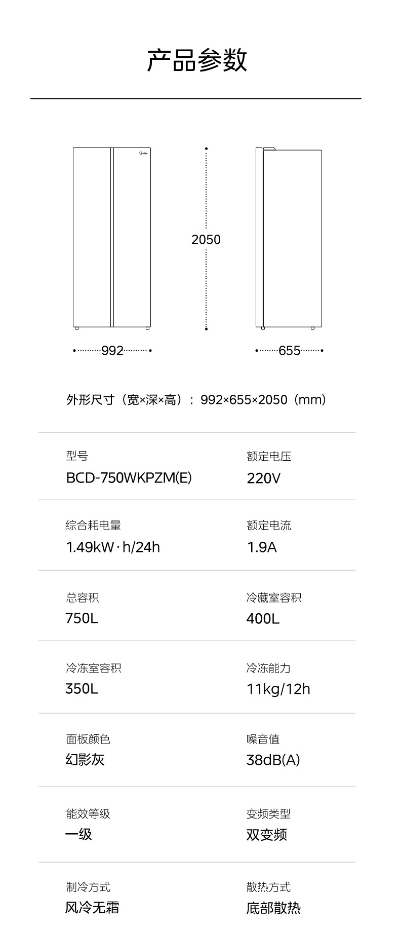 | Midea Refrigerator Model | Bcd-750 Wkpzm(E) |