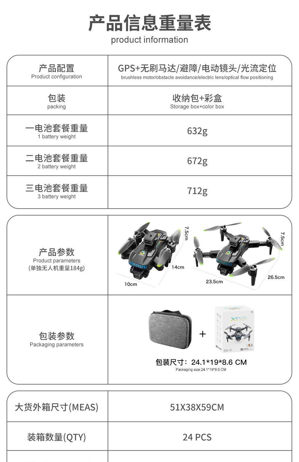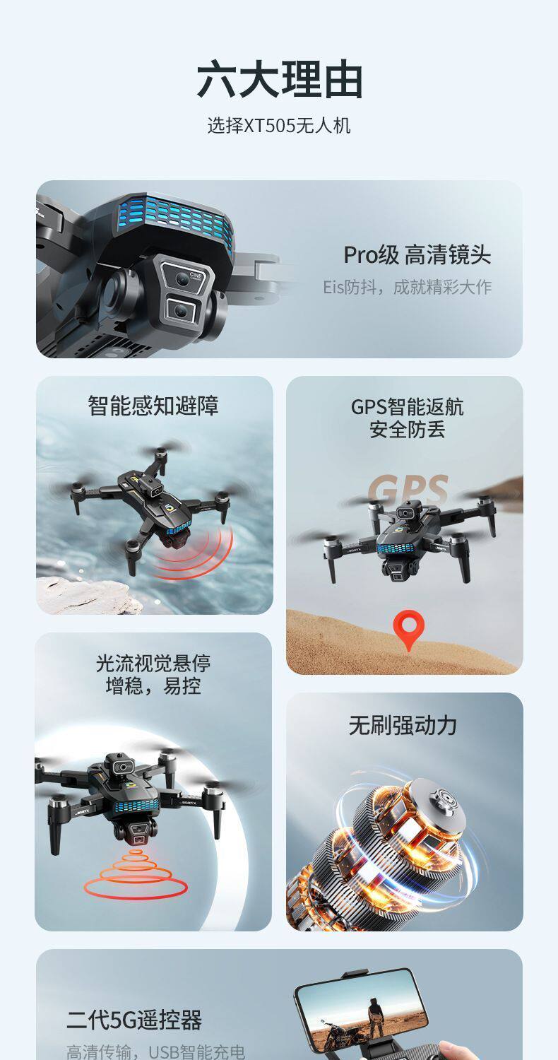 Aerial Photography Drone Xt505 with Gps Positioning, Return-To-Home Function, Four-Axis Aircraft, Brushless Motor, Long Endurance, Remote Control Aircraft, Drone