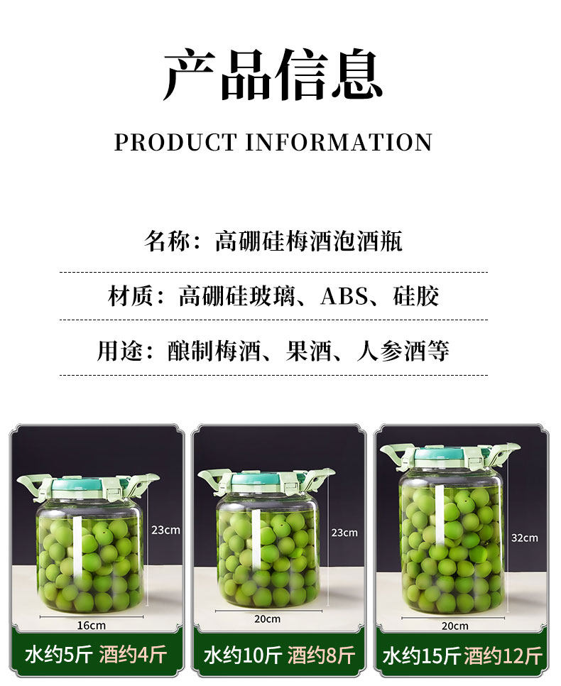 Green Plum Fruit Wine Brewing Container, Glass Bottle for Soaking Wine, Household Wine Jar, Special Wine Bottle for Soaking Wine, High-End Sealed