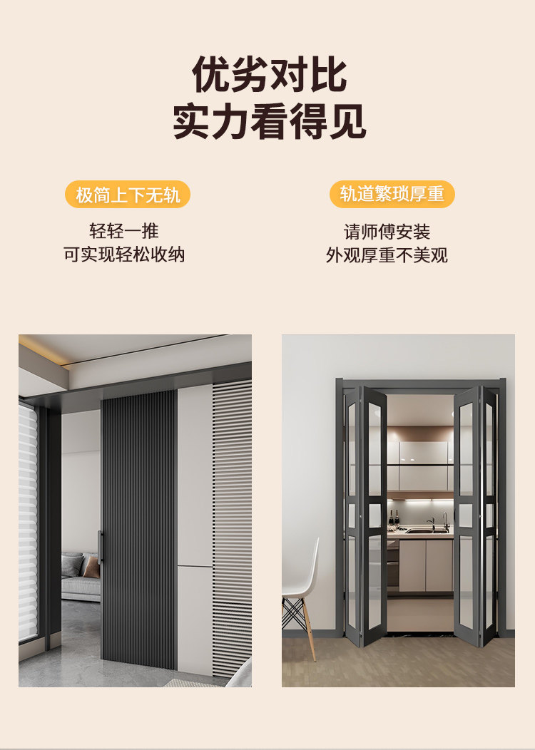 Honeycomb Folding Door, No-Drill Kitchen Invisible Trackless Sliding Partition Door, Bathroom Home Bedroom Gas Door