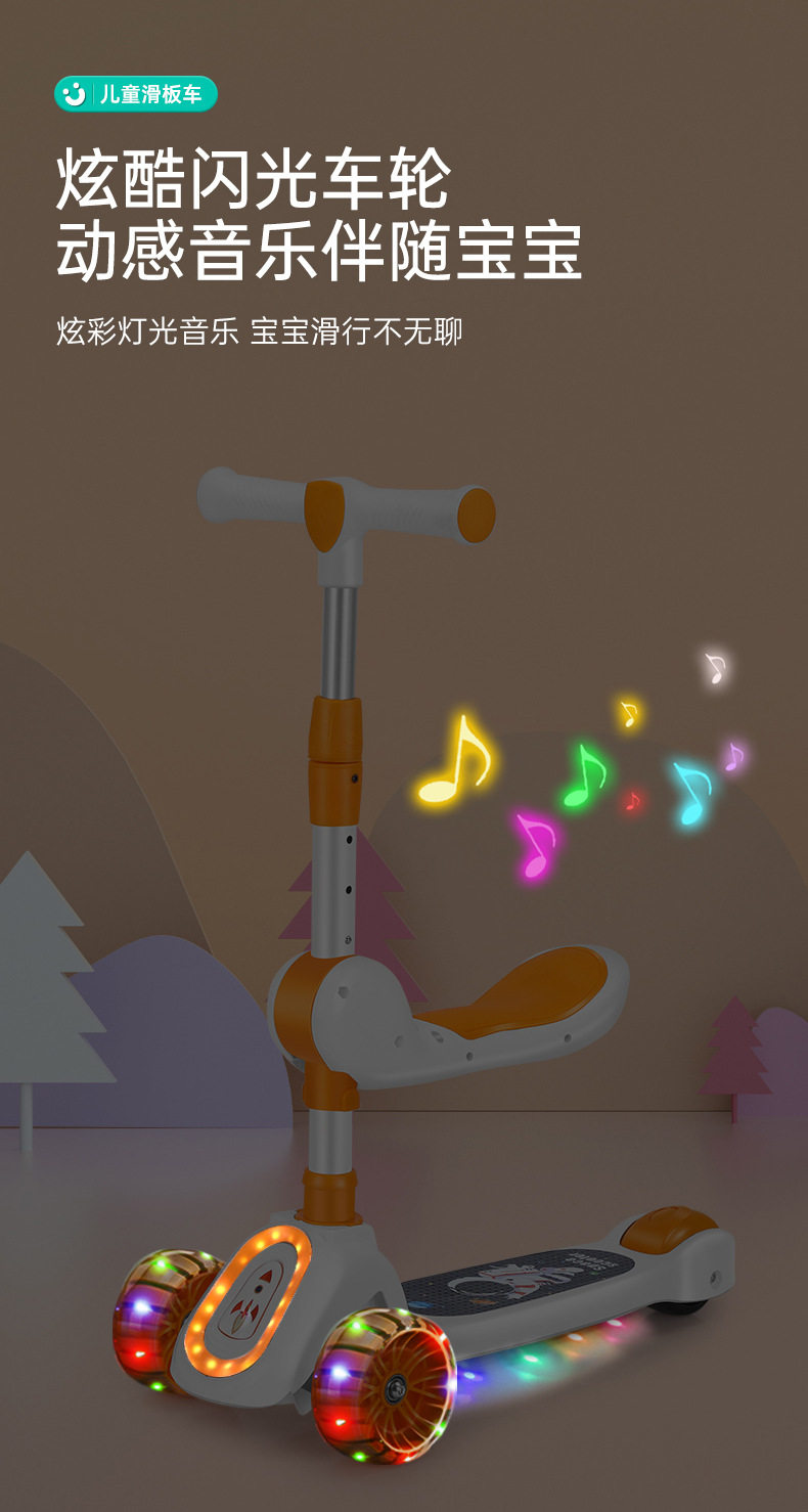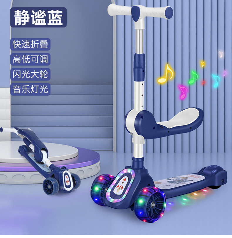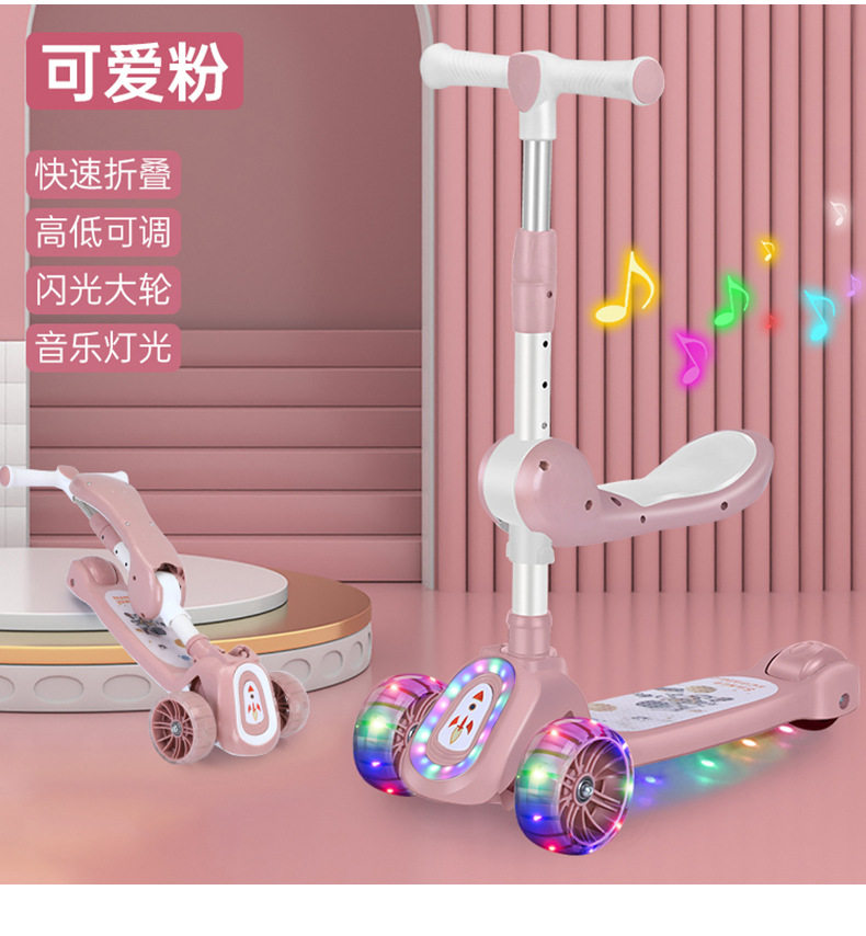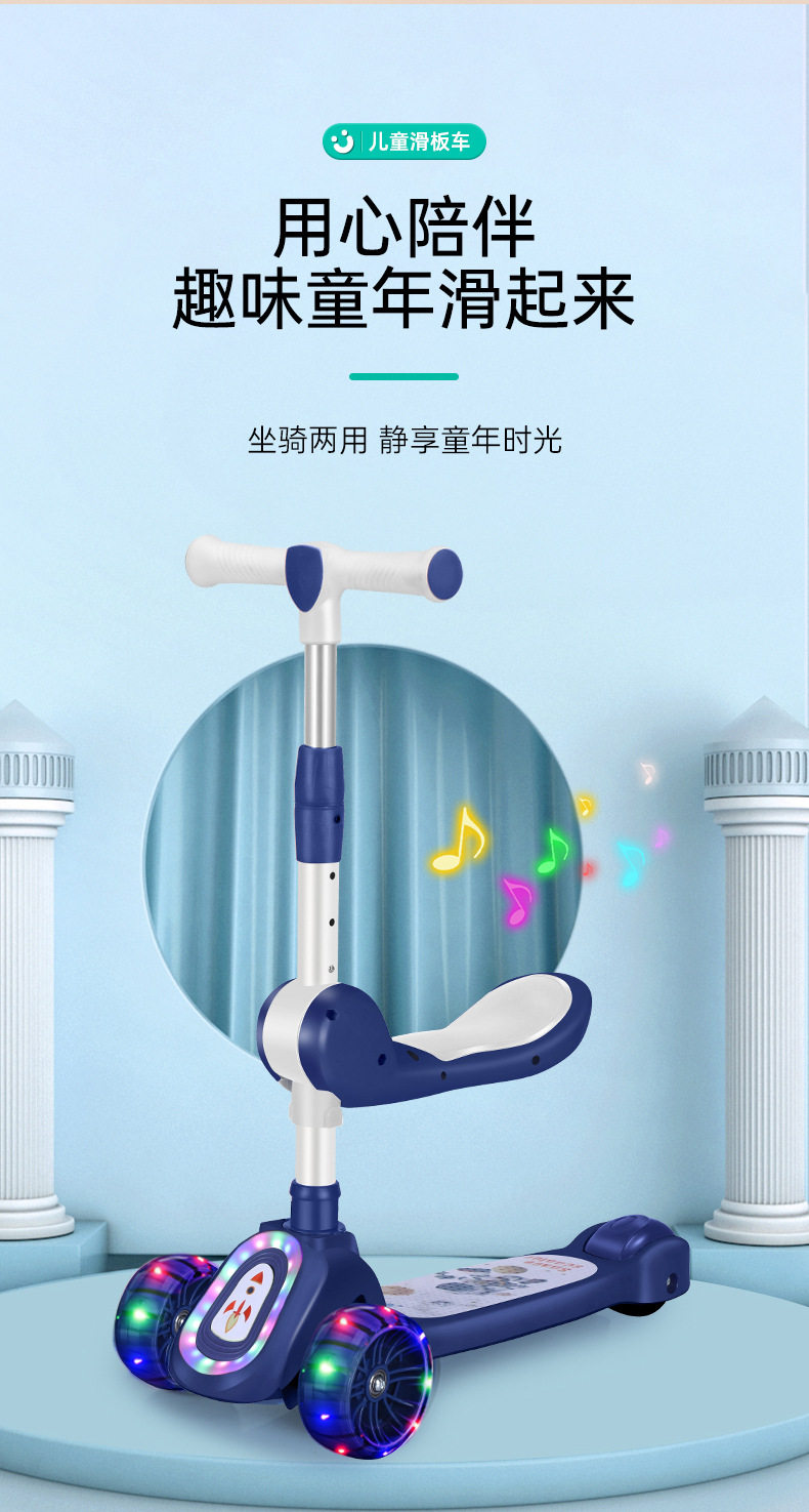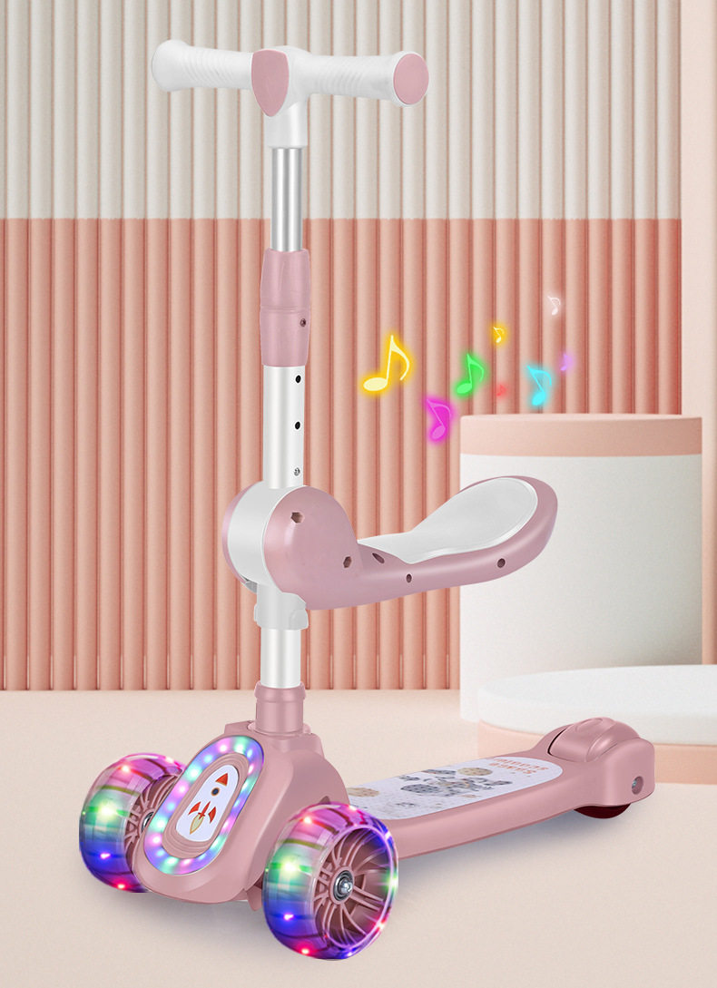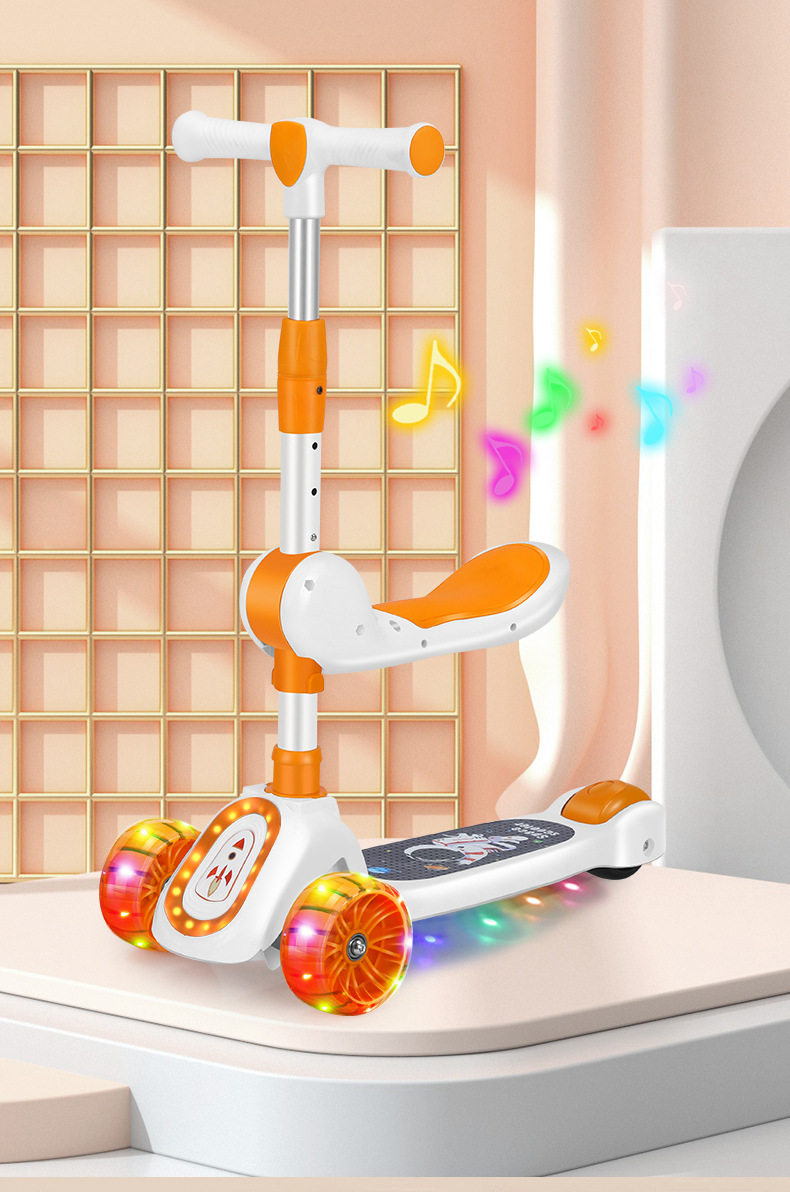 Children's Scooter for Ages 1-12, Baby Scooter with Music and Lights, Can Sit and Ride