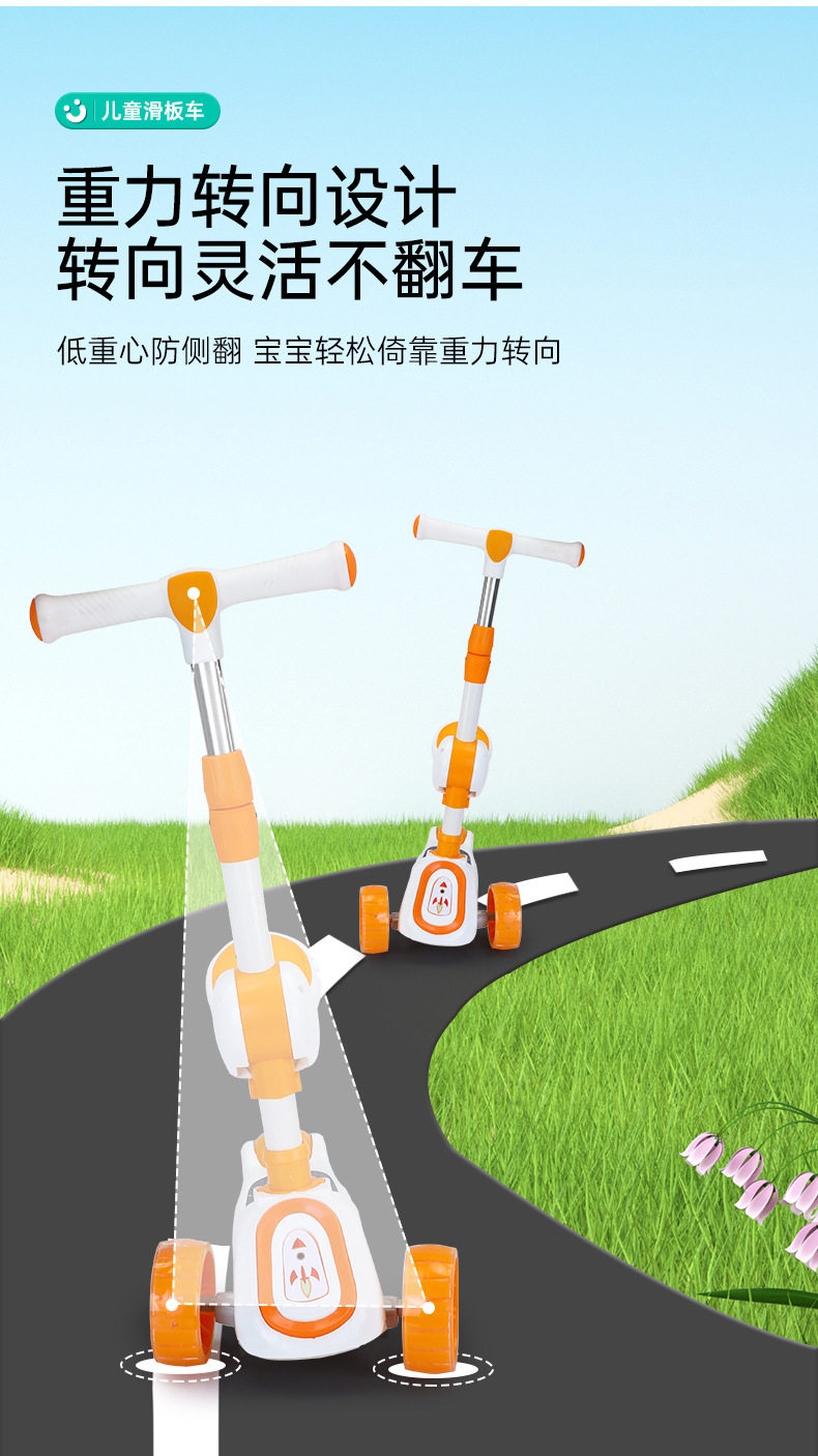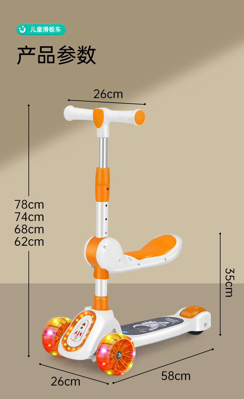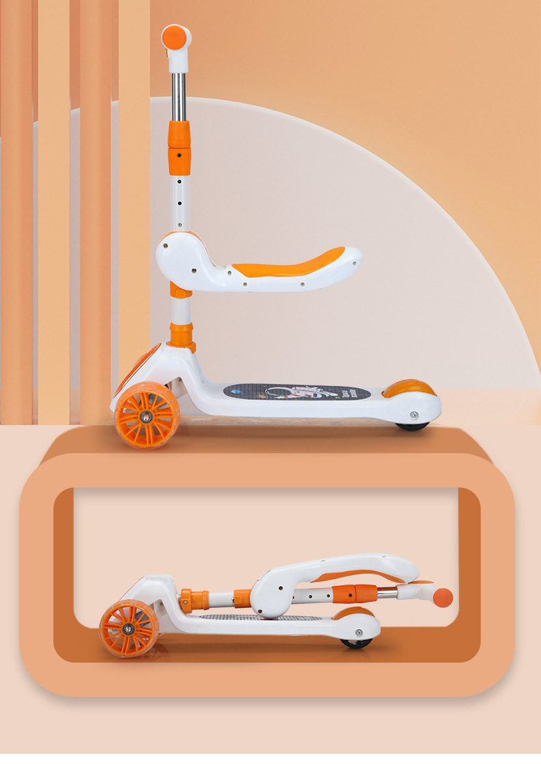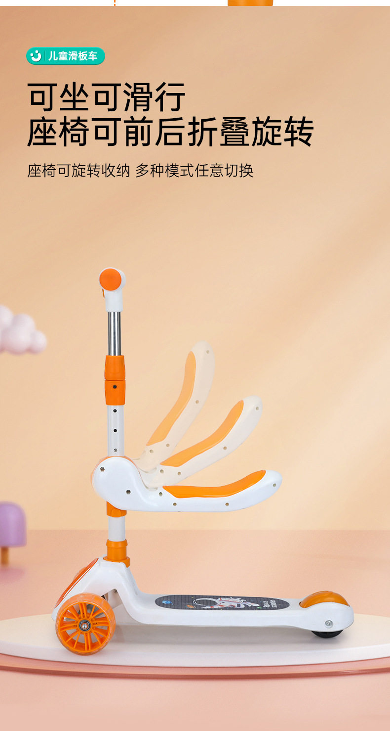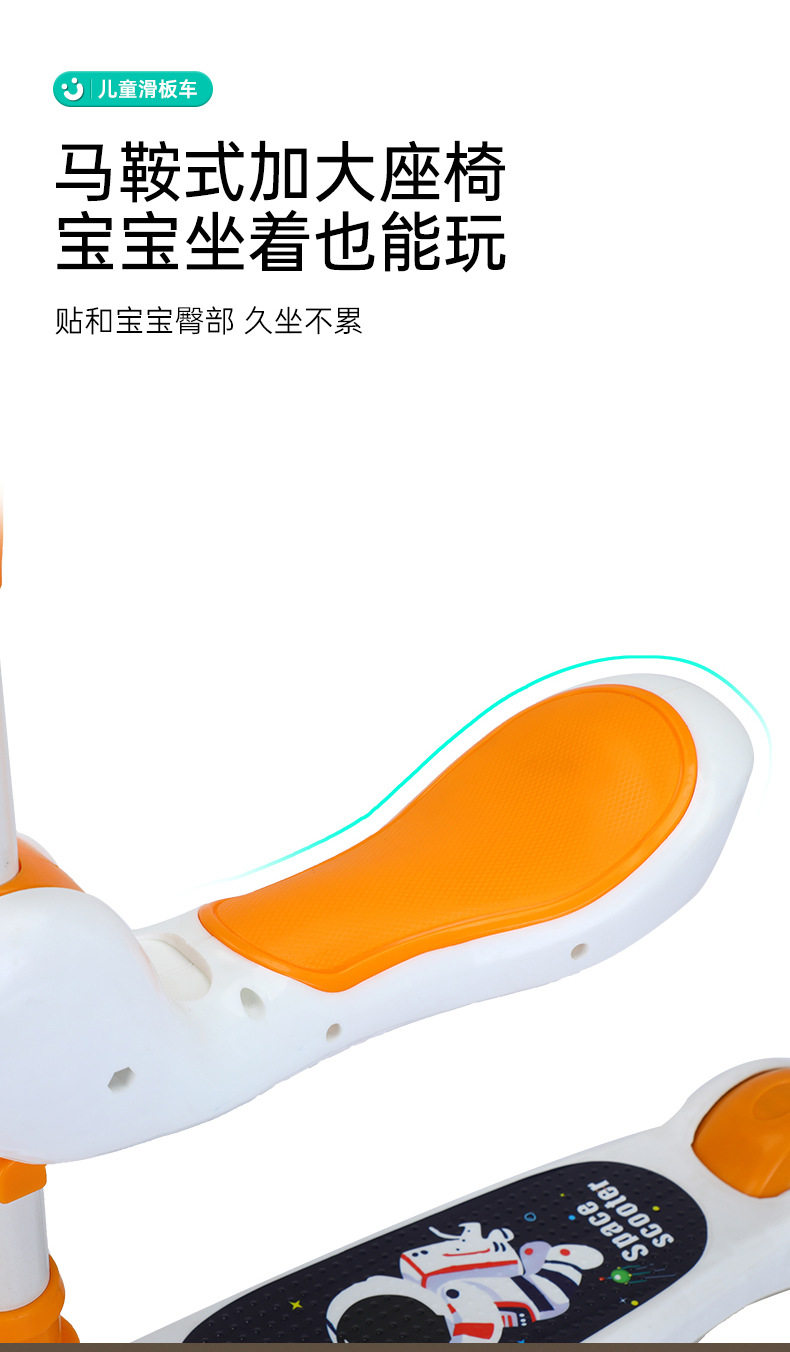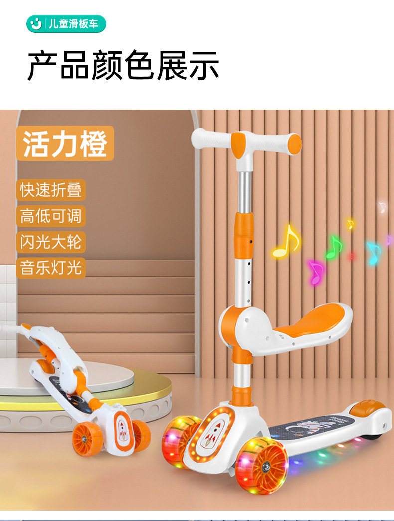 Children's Scooter for Ages 1-12, Baby Scooter with Music and Lights, Can Sit and Ride