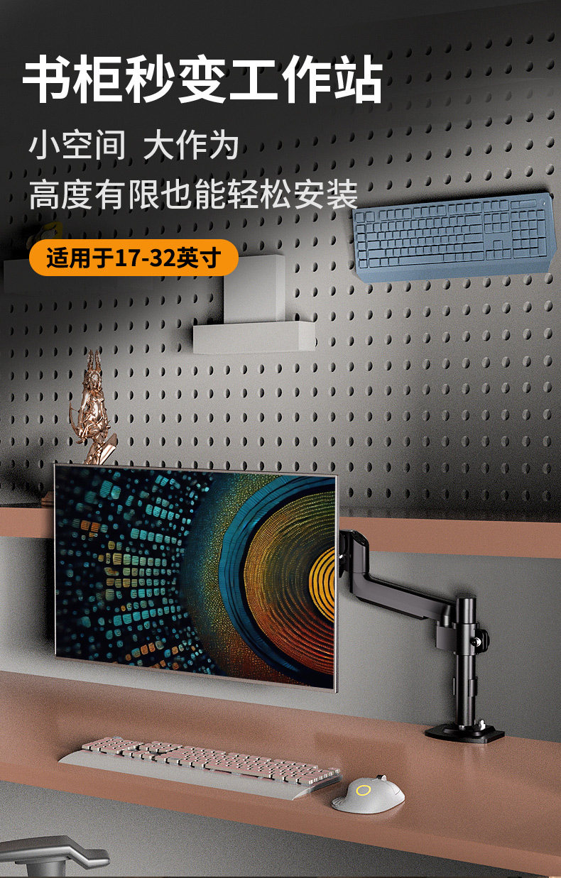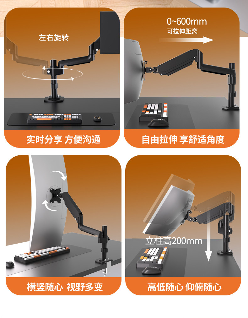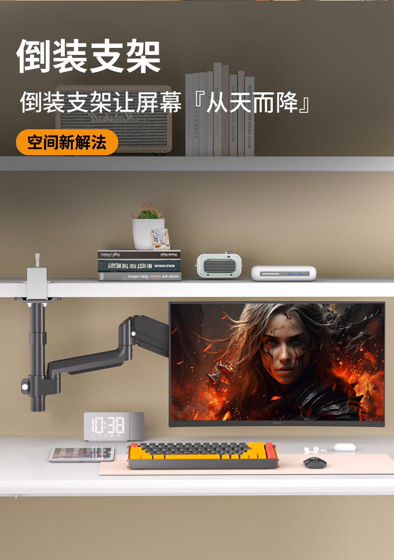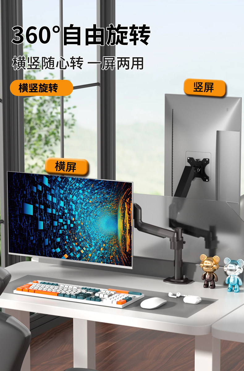 78cm Extra-Long Monitor Stand, Computer Screen Lift and Swivel, Desktop Screen Riser, Mechanical Arm, Can Be Inverted