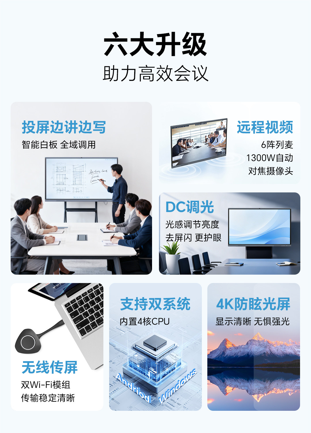 | Color Classification | [Ai Conference] 65inch + Writing Pen*2+ Wall Bracket,[Ai Conference] 65inch + Screen Projector + Smart Pen + Wall Mount,[Ai Conference] 65inch + Screen Projector + Smart Pen + Simple Stand,[Ai Conference] 65inch + Screen Projector + Smart Pen + Fashion Stand,[Ai Conference] 86inch + Writing Pen*2+ Wall Bracket,[Ai Conference] 86inch + Screen Projector + Smart Pen + Wall Mount,[Ai Conference] 86inch + Screen Projector + Smart Pen + Fashion Stand,[Ai Conference] 86inch + Screen Projector + Smart Pen + Business Stand,[Ai Conference] 65inch + Smart Pen + Screen Projector + Simple Stand,[Ai Conference] 65inch + Smart Pen + Screen Projector + Fashion Stand (White/Gray Optional),[Ai Conference] 65inch + Smart Pen + Screen Projector + Business Stand,[Ai Conference] 75inch + Writing Pen*2+ Wall Bracket,[Ai Conference] 75inch + Smart Pen + Screen Projector + Wall Mount,[Ai Conference] 75inch + Smart Pen + Screen Projector + Fashion Stand (White/Gray Optional),[Ai Conference] 75inch + Smart Pen + Screen Projector + Business Stand,[Ai Noise Reduction] 86inch + Writing Pen*2 + Wall Bracket,[Ai Noise Reduction] 86inch + Screen Projector + Smart Pen + Wall Mount,[Ai Noise Reduction] 86inch + Screen Projector + Smart Pen + Fashion Stand (White/Grey Optional),[Ai Noise Reduction] 86inch + Screen Projector + Smart Pen + Business Stand,[Ai Conference] 75inch + Smart Pen + Screen Projector + Fashion Stand (White/Gray Optional) [2 Sets] |