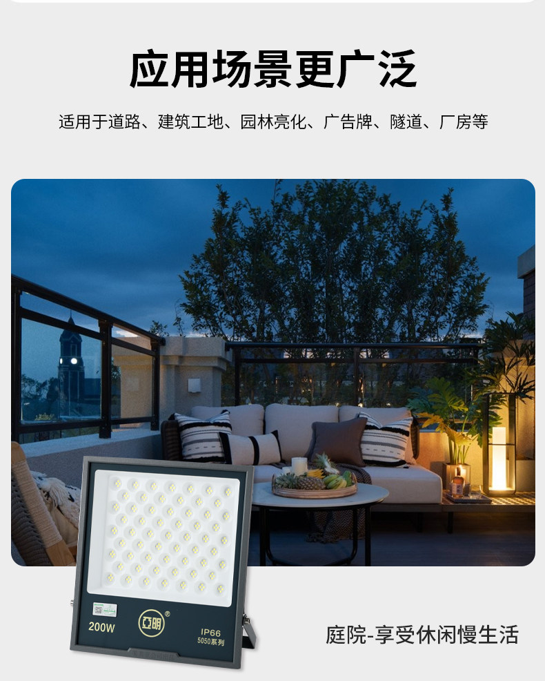 Yaming Led Spotlight Floodlight Waterproof Strong Light Construction Site Factory Workshop Lighting Outdoor Stadium Special Searchlight