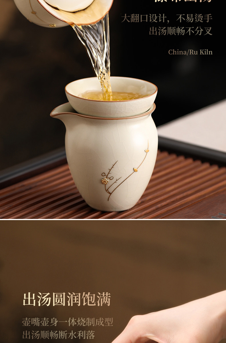 Ruyao Kung Fu Tea Set for Home Use in the Living Room, Light Luxury High-End Teapot and Teacups, New Chinese Style Tea Set for Tea Brewing