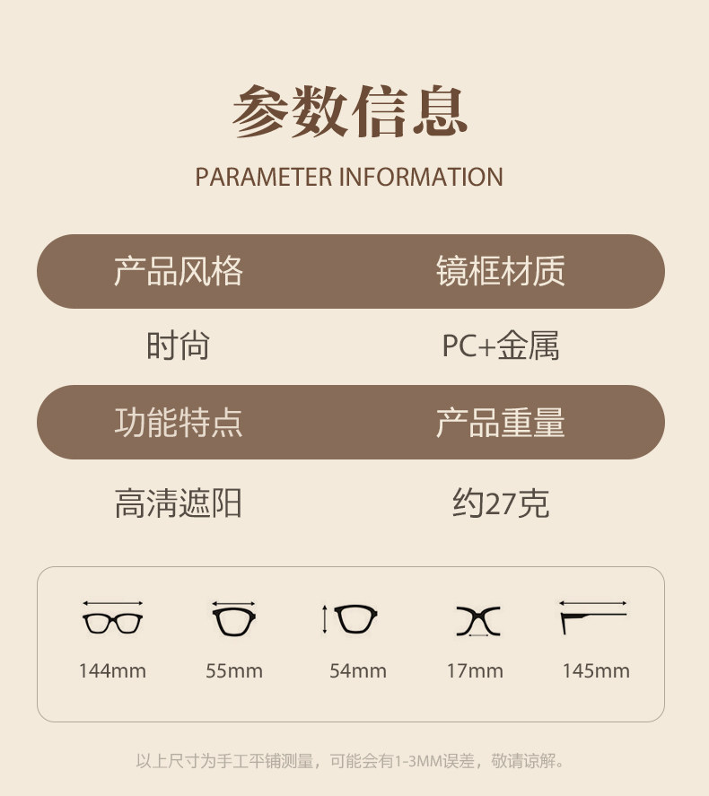 | Color Classification | Brightening Milk Tea Color[Polarized Lenses + Uv400 Protection],Black Frame Gradient Gray Film[Polarized Lenses + Uv400 Protection],Fashionable Jade White[Polarized Lenses + Uv400 Protection],Black Frame Purple Pink Lens[Polarized Lenses + Uv400 Protection],Korean Tortoiseshell Color[Polarized Lenses + Uv400 Protection],50-600 Degrees with Myopia, Please Leave a Message with the Degree: Whitening Milk Tea Color,50-600 Degrees with Myopia Message Degree: Black Frame Gradually Gray Film,50-600 Degrees with Myopia Message Degree: Black Frame Purple Pink Film,50-600 Degrees with Myopia Message Degree: Fashionable Jade White,50-600 Degrees with Myopia Message Degree: Korean Tortoise Color,Frame+[Thinner]1.56 Custom Lenses[Suitable for Astigmatism 0-200 Degrees],Frame+[Ultra-Thin]1.61 Custom Lenses[Suitable for 0-500 Degrees],Frame+[Thinnest]1.67 Custom Lenses[Suitable for 0-800 Degrees] |