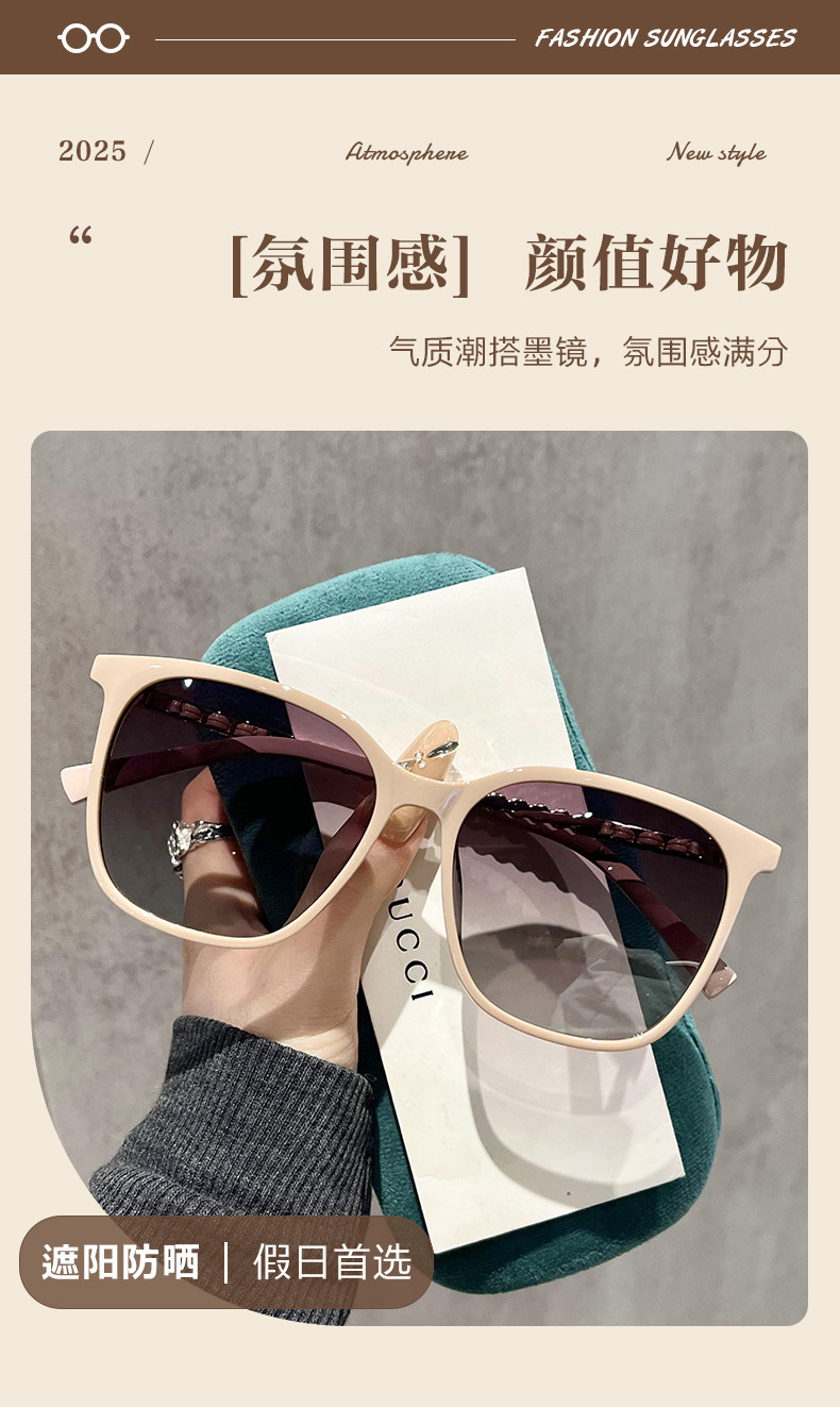 Tweed Style 2025 New Sunglasses for Women with Square and Round Faces, High-End, Anti-Uv, Polarized, Sun Protection, Sunglasses for Myopia