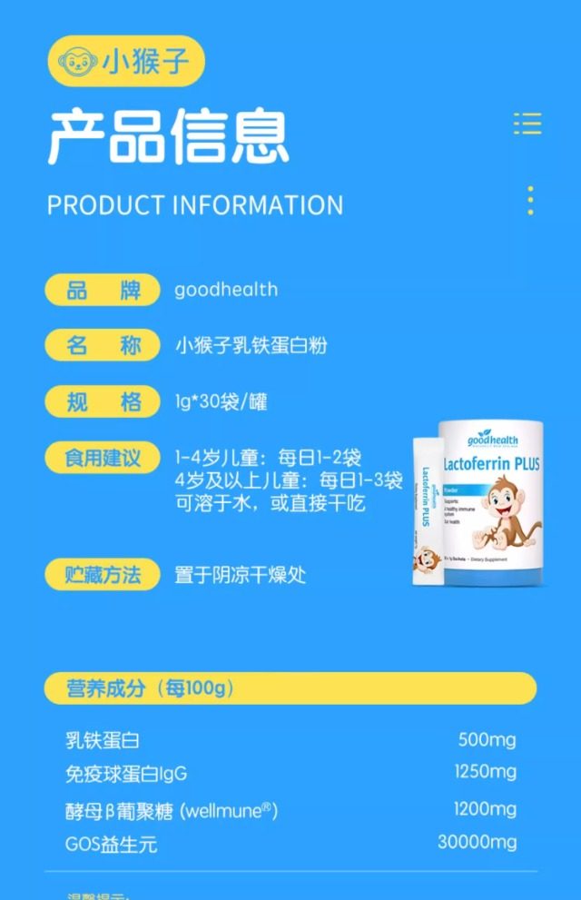 Goodhealth Good Health Little Monkey Lactoferrin Infant and Young Kidsren Immune Globulin Nutrition Official Authentic Product