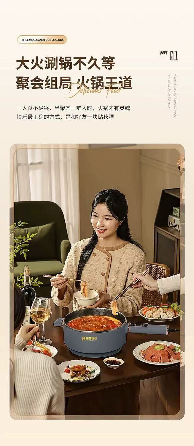 Mette Defei Electric Wok, Stainless Steel, Non-Stick, No Coating, Multi-Functional Steaming, Cooking, Stir-Frying All-In-One Pot, New Model
