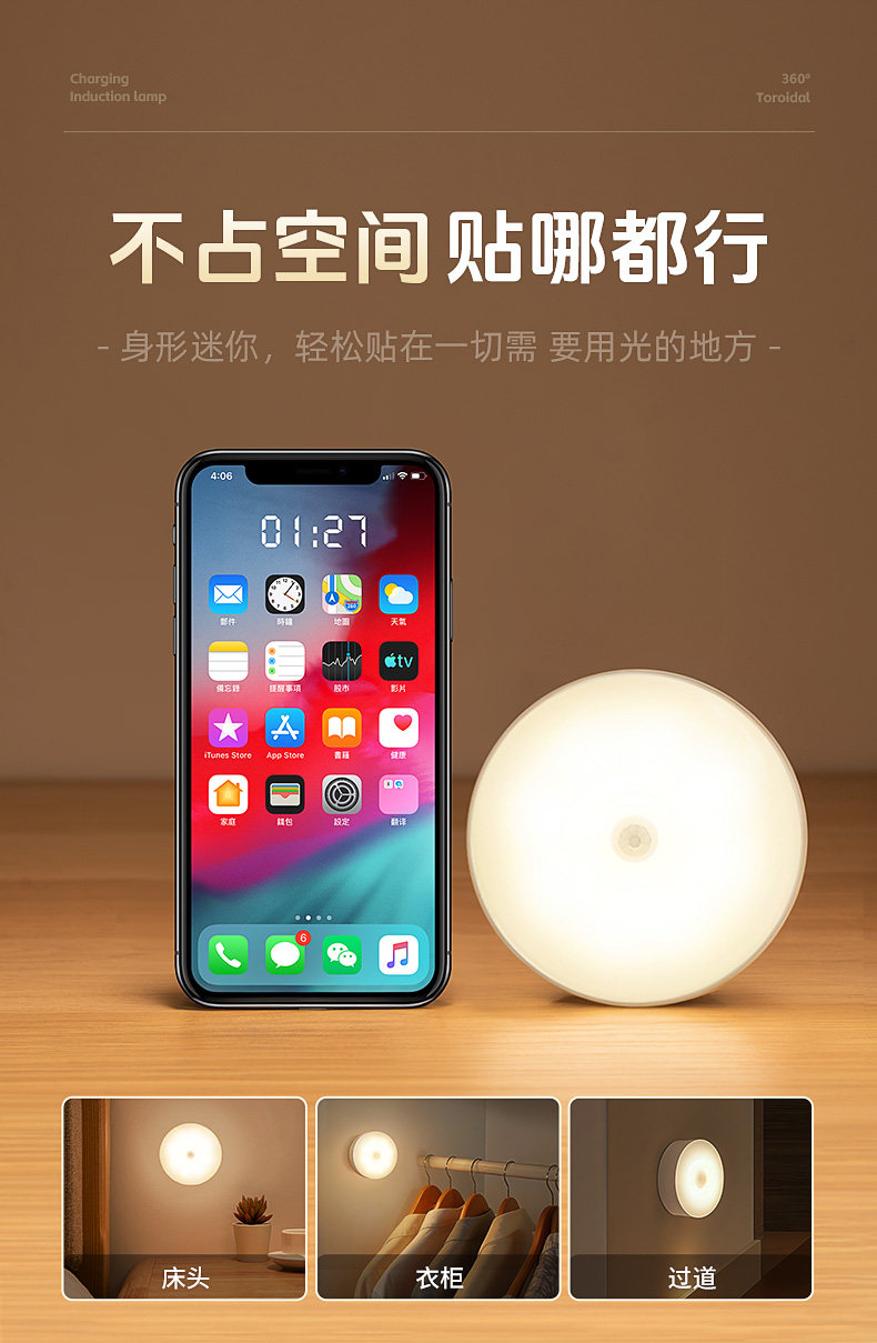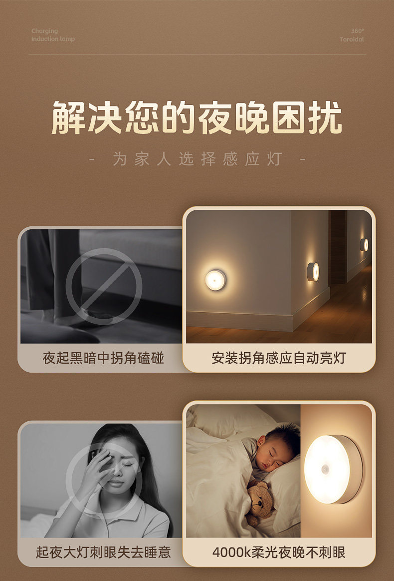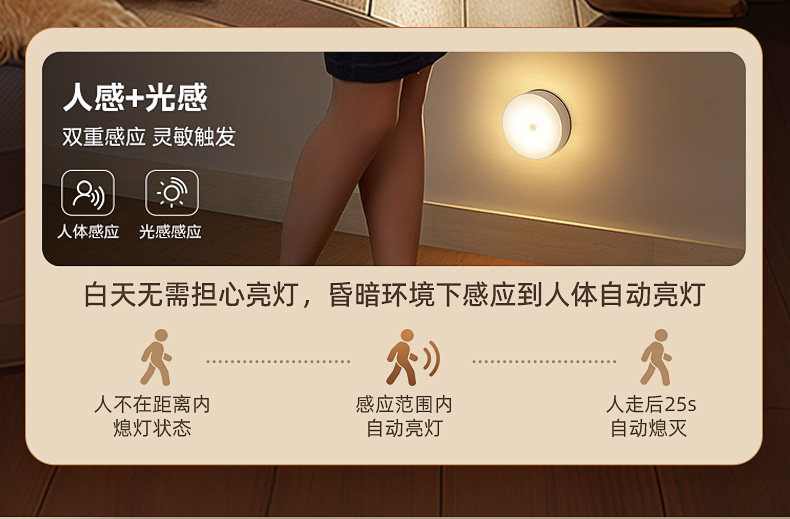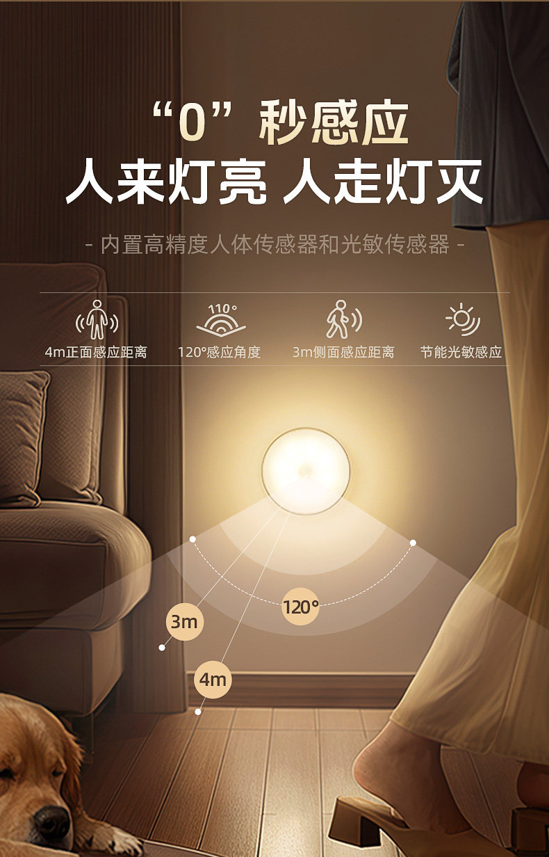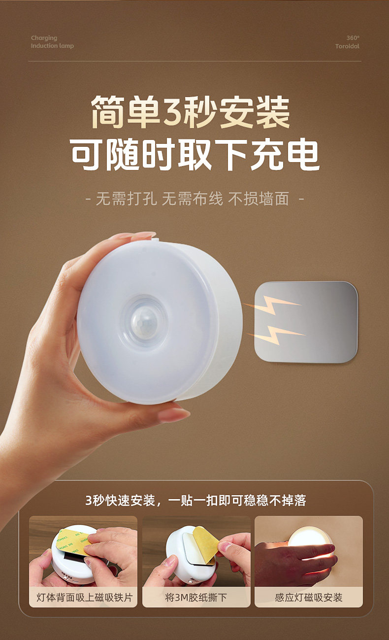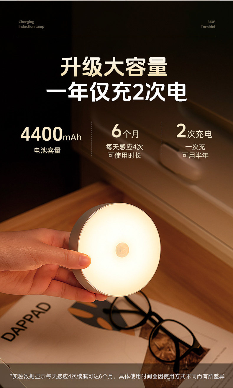 Intelligent Human Body Automatic Sensing Night Light, Magnetic Charging, Large Capacity, Lights up When Someone Gets up at Night, and Turns Off When Someone Leaves