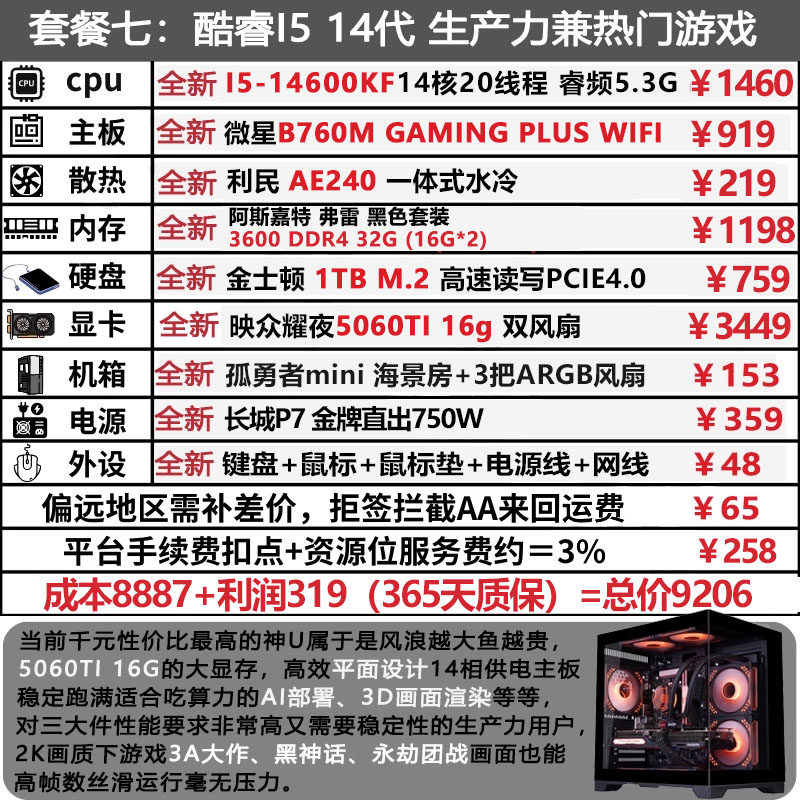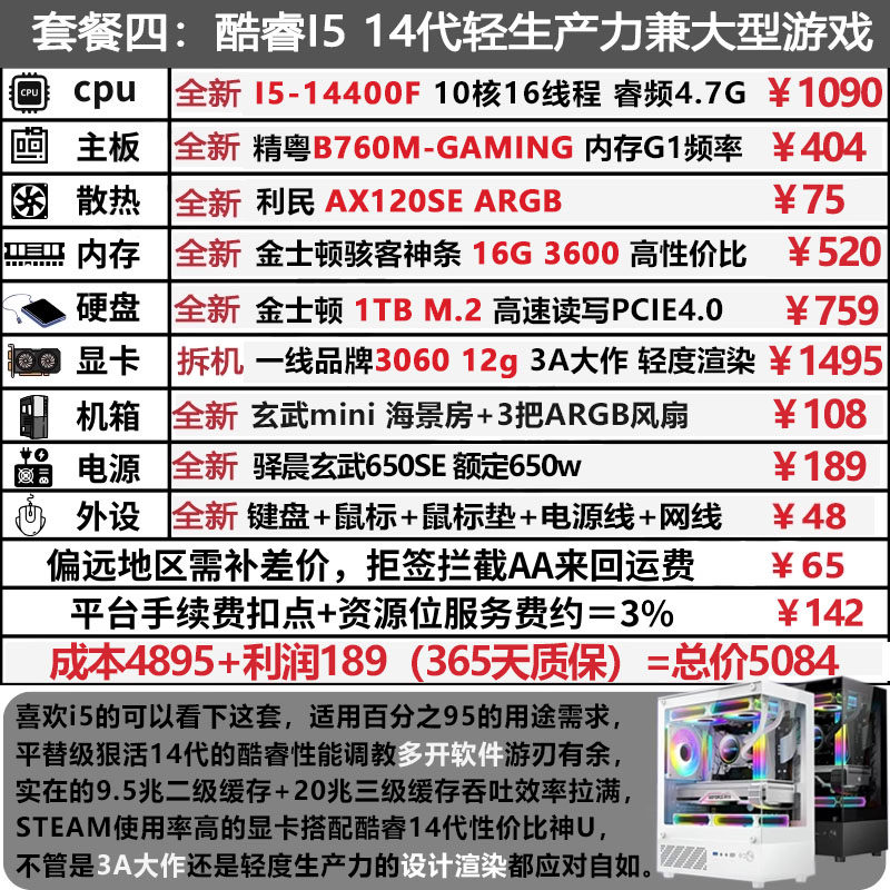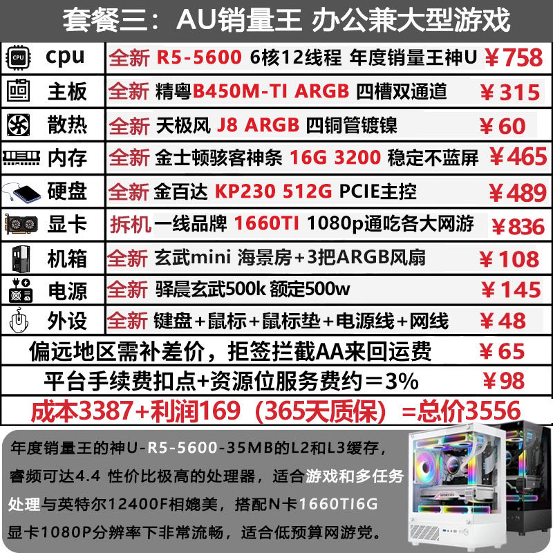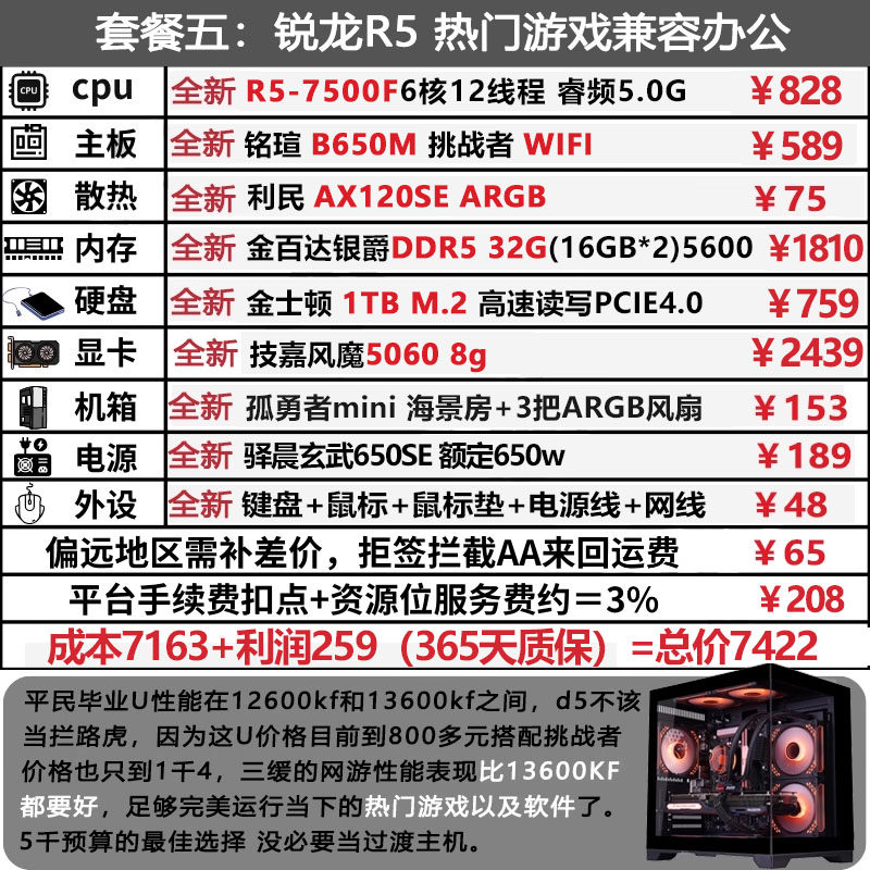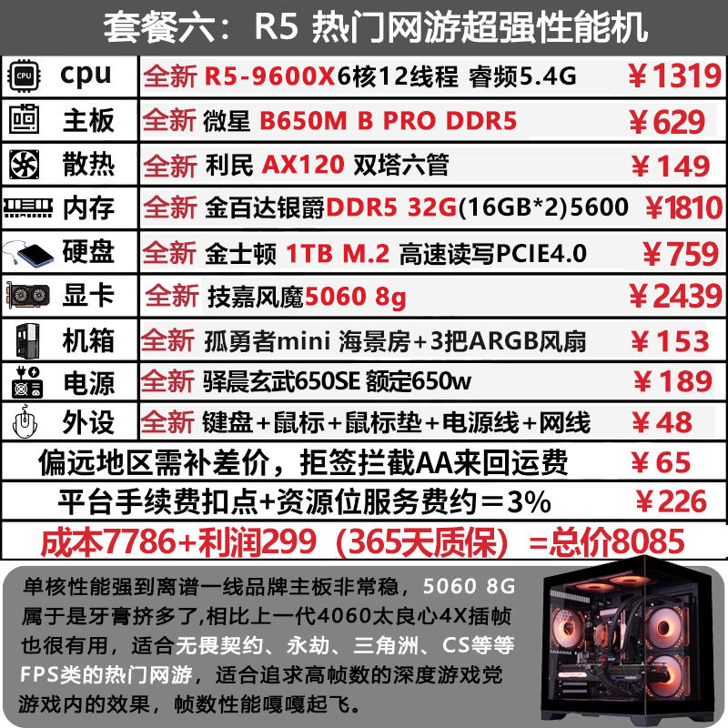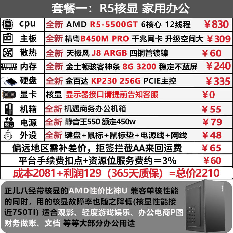 DIY Desktop Assembled Computer with Core Amd, Full Setup for 3A Games, Ai, Office Work, Rendering, and Design