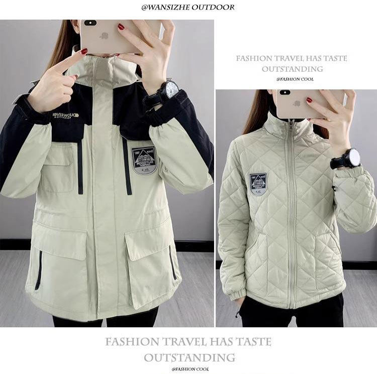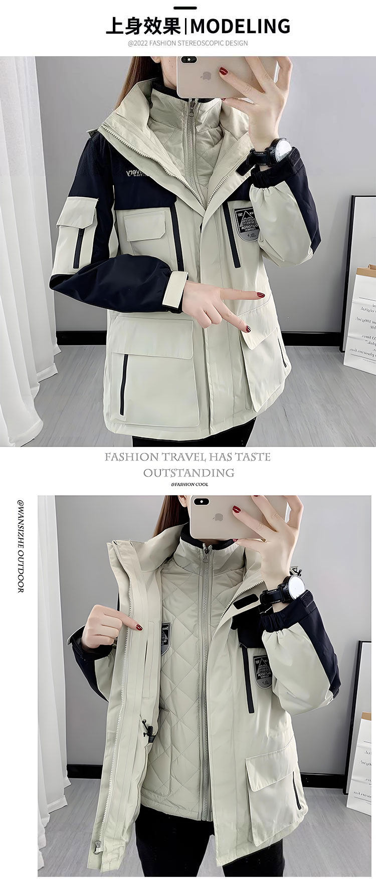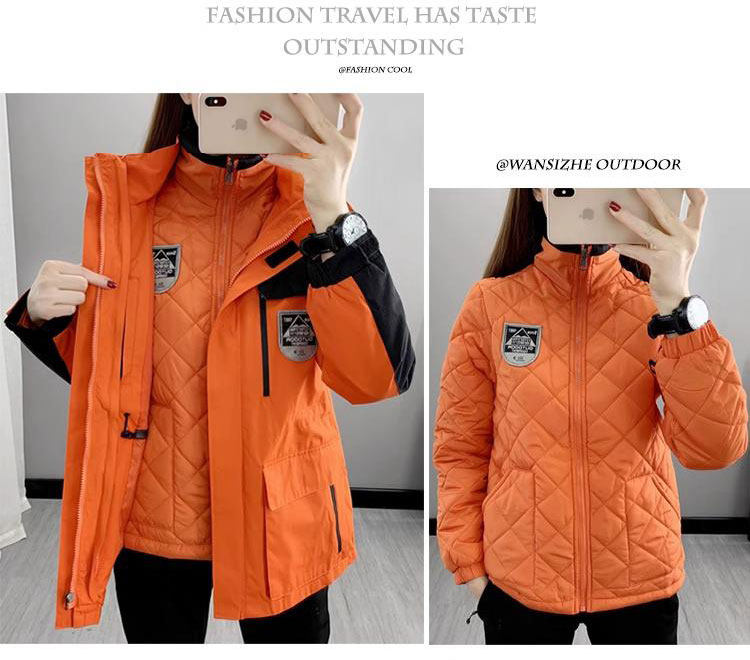 2025 New Style Fleece-Lined and Thickened Women's Three-In-One Detachable Mountaineering Jacket, Waterproof and Windproof Ski Jacket
